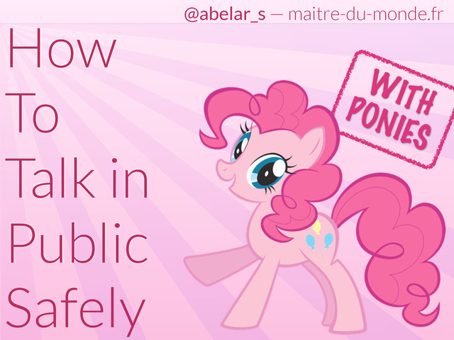 developers http://zachholman.com/posts/slide-design-for-developers/ ! Jan Lenhardt - how to give the killer tech talk http://writing.jan.io/2013/05/10/how-to-give-the-killer-tech- talk---a-pamphlet.html Eric Feng + SlideComet - world-class presenter http://fr.slideshare.net/slidecomet/the-presenter-manifesto-8- distinctions-of-a-world-class-presenter ! Florian Mueck - short videos http://www.florianmueck.com
