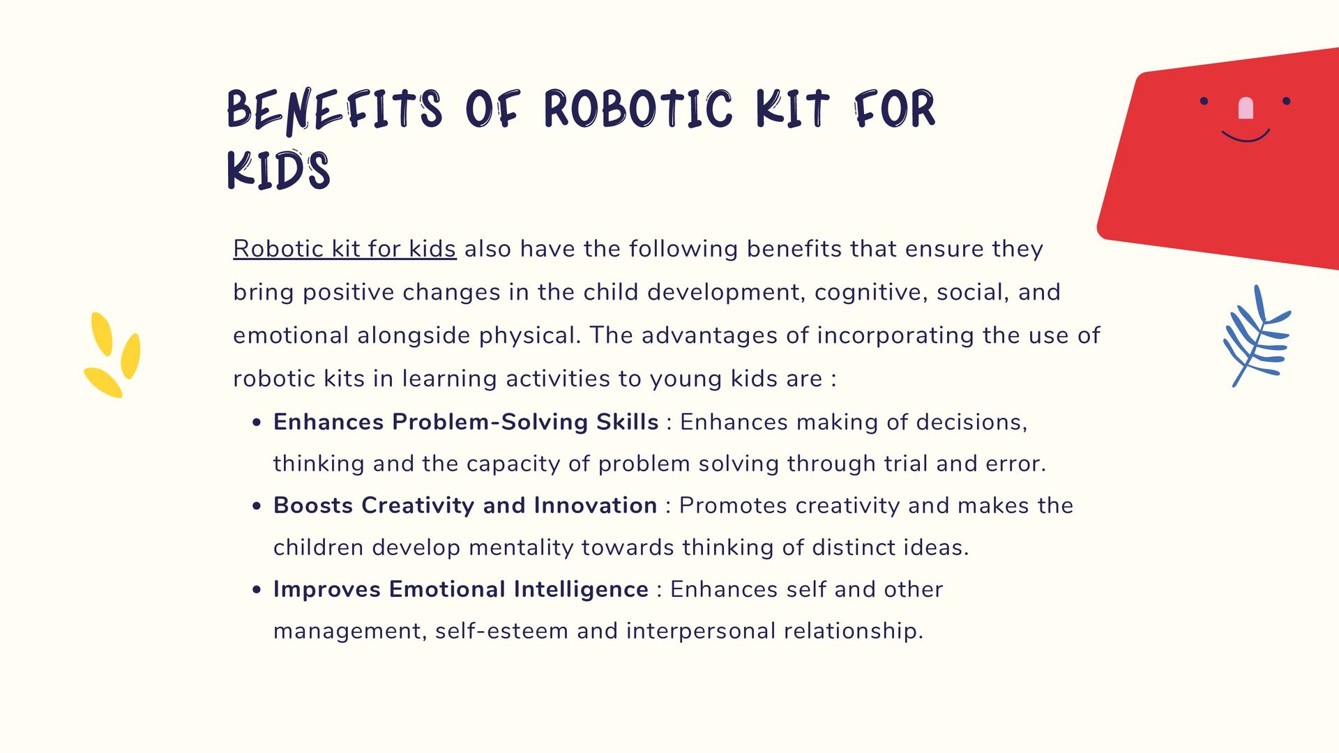 robotic kits for kids are good for their cognitive and emotional development. Such tools also give memory, logical, and speed work and stimulate the child’s emotional intelligence. Kids’ working on robotic projects we find enhanced homework completion rates, changes towards better frustration tolerance, and in ability to work in groups and hence better emotional regulation skills. In this regards, we shall explain how robotic kits cultivate a growth mentality for children to tackle issues proactively but also how they strengthen STEM content.