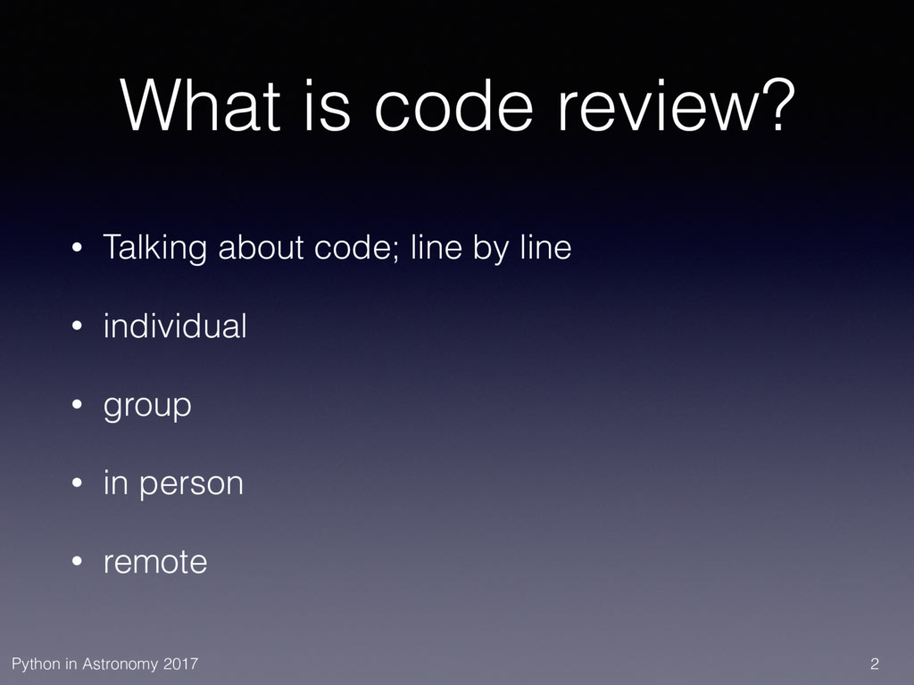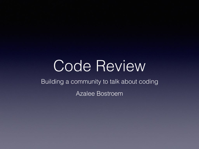 This slide deck discusses different types of code review and contains useful information on how to start a group and things to think about when reviewing code