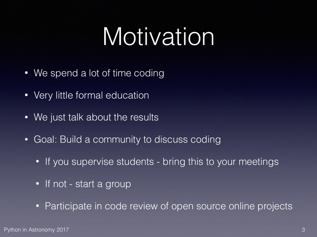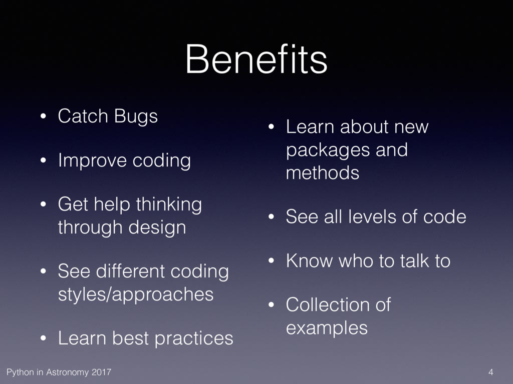 of time coding • Very little formal education • We just talk about the results • Goal: Build a community to discuss coding • If you supervise students - bring this to your meetings • If not - start a group • Participate in code review of open source online projects 3