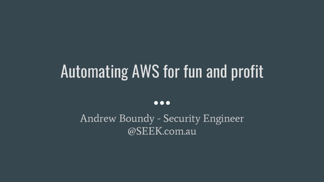 Now days most people find themselves running multiple AWS accounts, supporting their development and operations. With our explosive growth to over 100 plus AWS accounts, there have been new challenges;