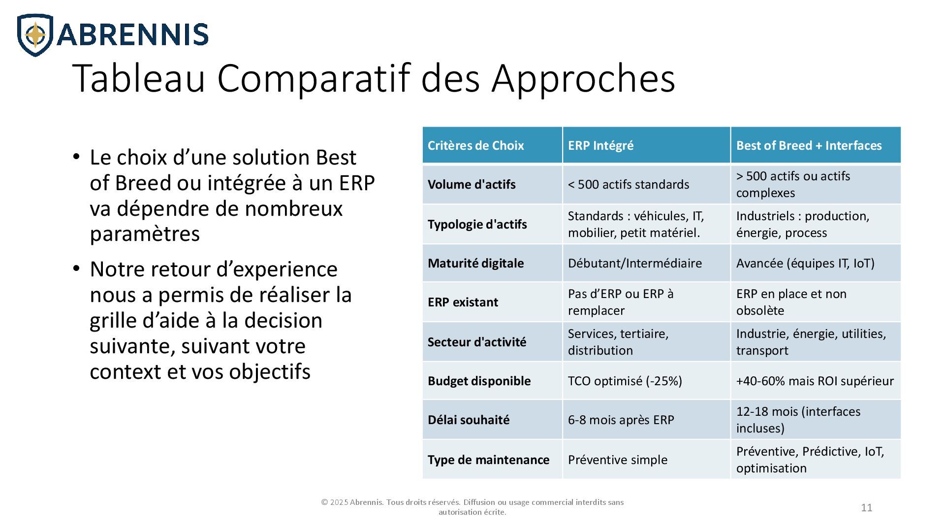 – Méthodologie de sélection EAM/ERP et critères de choix (cloud, intégration, mobilité)