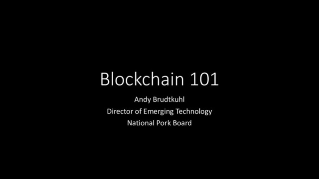 Blockchain 101 Andy Brudtkuhl Director of Emerging Technology National Pork