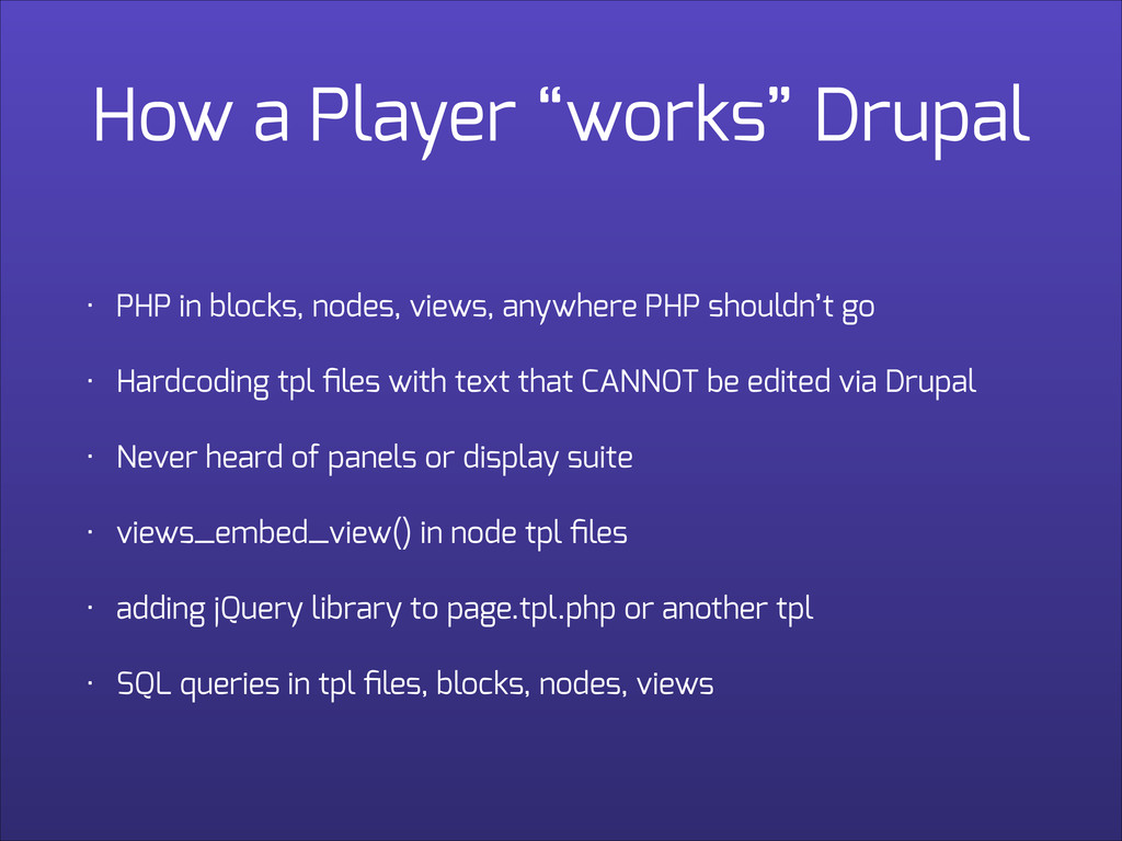 This session will run into what you need to do in order to succeed, what skills you need for the project, planning, development, testing and deployment. When working on a big Drupal project you need the right people in order to succeed, have they been working on Drupal before or are they claiming to have, what proof do they have to show this?