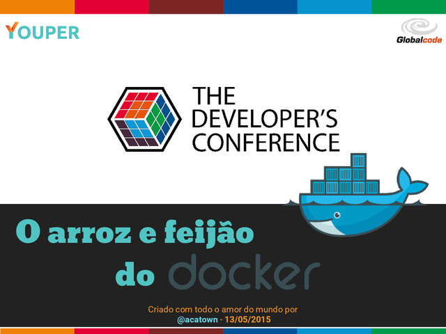 "TDC 2015 version" - Docker é um projeto open source para empacotar e executar qualquer aplicação dentro de um comtainer. Os Containers do Docker são independentes do hardware e independente da plataforma. Isso significa que eles podem ser executados em qualquer lugar (no teu laptop ou na maior instância do EC2) e não exigem que você use uma linguagem, ou framework ou ferramenta de build em particular...
