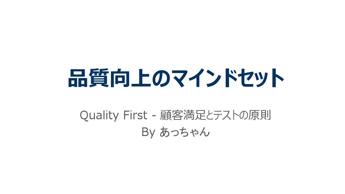 品質向上のマインドセット Quality First - 顧客満足とテストの原則 By あっちゃん