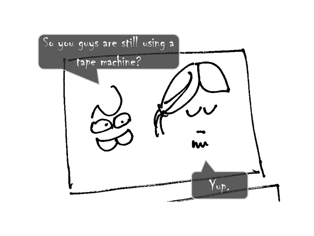 So you guys are still using a tape machine? Yup.