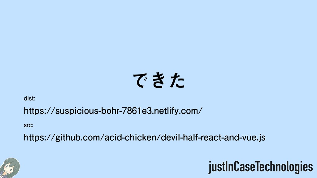dist: https://suspicious-bohr-7861e3.netlify.com/ src: https://github.com/acid-chicken/devil-half-react-and-vue.js