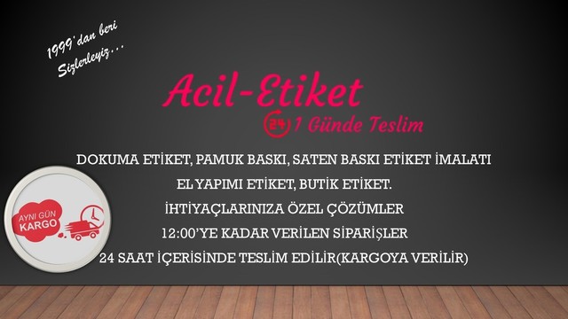 1999'dan beri sizler için çalışıyoruz. Dokuma Etiket, Baskı Etiket, Pamuk Baskı, Saten Baskı, Yıkama Talimatı imalatı yapıyoruz.