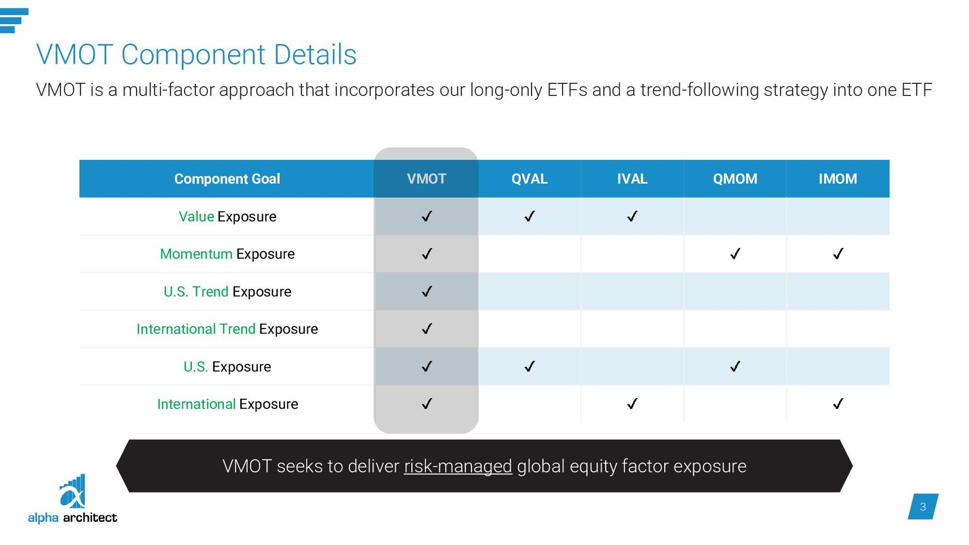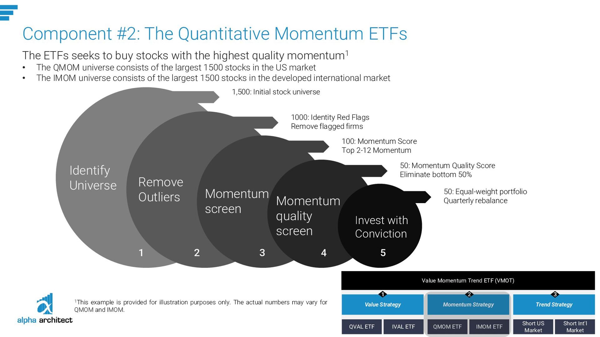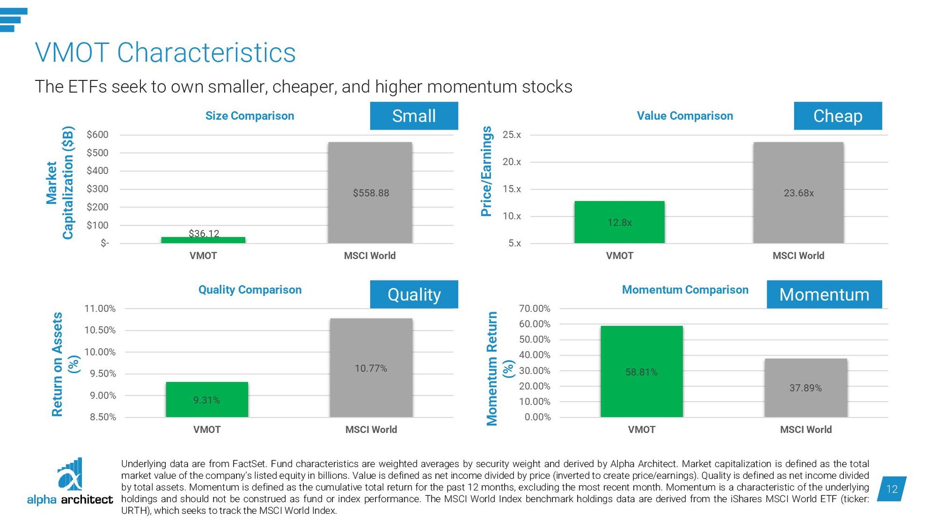 is possible. Redemptions are limited and often commissions are charged on each trade. Unlike mutual funds, ETFs may trade at a premium or discount to their net asset value. The Securities and Exchange Commission (SEC) does not approve or disapprove of any investment. This material has been distributed for informational purposes only and should not be considered as investment advice or a recommendation of any particular security, strategy or investment product. Information contained herein has been obtained from sources believed to be reliable, but not guaranteed. No part of this material may be reproduced in any form, or referred to in any other publication, without express written permission. References to other funds should not to be interpreted as an offer of these securities. The Funds are distributed by Quasar Distributors, LLC. The Fund investment advisor is Empowered Funds, LLC, which is doing business as Alpha Architect. Value investing is subject to the risk that intrinsic values of investments may not be recognized by the broad market or that their prices may decline. Investments utilizing quantitative methods may perform differently than the market as a result of characteristics and data used and changes in trends. Investments in foreign securities involve political, economic and currency risks, greater volatility and differences in accounting methods. These risks are magnified in emerging markets. Momentum investing is investing in or having exposure to securities with positive momentum entails investing in securities that have had above-average recent returns. These securities may be more volatile than a broad cross-section of securities. Returns on securities that have previously exhibited momentum may be less than returns on other styles of investing or the overall stock market. Momentum can turn quickly and cause significant variation from other types of investments, and stocks that previously exhibited high momentum may not experience continued positive momentum. In addition, there may be periods when the momentum style is out of favor, and during which the investment performance of the Fund using a momentum strategy may suffer. As of January 31, 2022, each Fund is now actively managed by its investment adviser, Empowered Funds, LLC. Performance after January 31, 2022 reflects the fund's current objective reflected in this material and current prospectus. Maintaining investments regardless of market conditions or the performance of an individual investment could cause the Funds' returns to be lower than if the Funds employed an active strategy. The performance of the Funds and their Indices may differ due to tracking error. Because it invests primarily in other funds, the Value Momentum Trend Fund’s investment performance largely depends on the investment performance of those underlying Alpha Architect ETFs. An investor will indirectly bear the principal risks and its share of the fees and expenses of the underlying funds. Derivatives can be volatile and involve various types and degrees of risks including hedging risk. The use of derivatives in connection with the Alpha Architect Value Momentum Trend Index’s hedging strategies may expose the Index (and therefore the Value Momentum Trend Fund) to losses (some of which may be sudden) that it would not have otherwise been exposed to if it had only invested directly in equity securities. The Funds' investment objectives, risks, charges and expenses must be considered carefully before investing. The statutory and summary prospectus contains this and other important information about the investment company. Click here for the VMOT Prospectus and SAI. All fund documents can be found at https://etfsite.alphaarchitect.com/documents/. A free hardcopy of any prospectus may be obtained by calling +1.215.882.9983. Read carefully before investing.