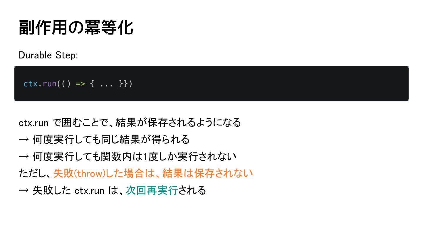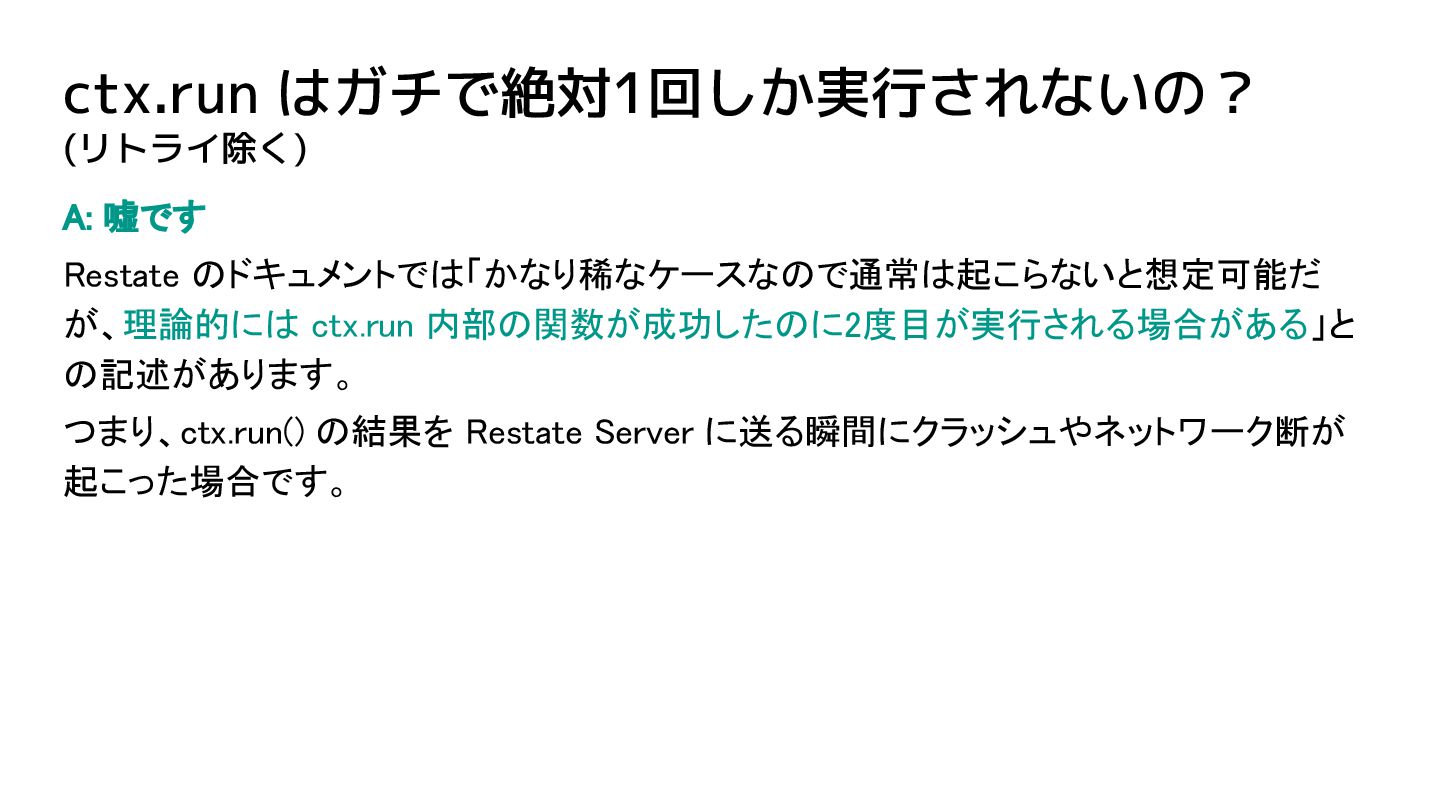 のようにするより、read / write を別の ctx.run にすることで、2つ目だけリトライされても同じ値で上 書きされるようになります。