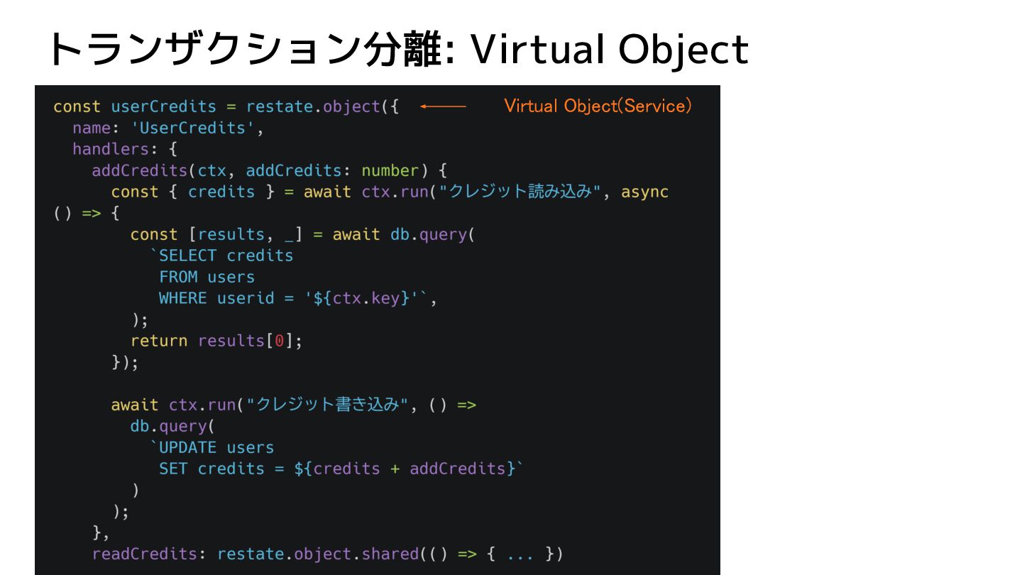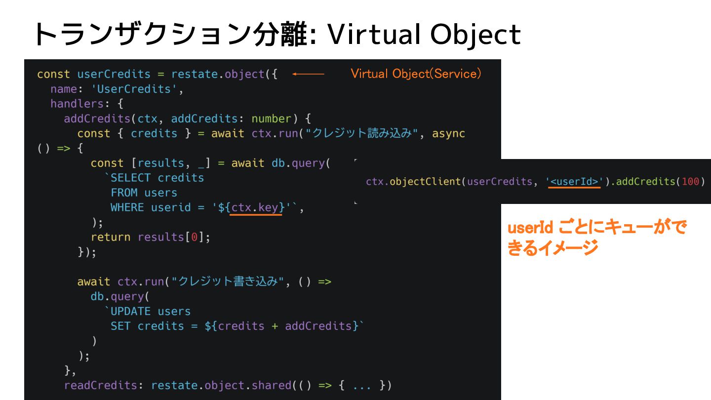 また Isolation によって、その Virtual Object からのみ credits を触っている限り、不整合は起こりま せん