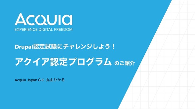 DrupalೝఆࢼݧʹνϟϨϯδ͠Α͏ʂ ΞΫΠΞೝఆϓϩάϥϜ ͷ͝հ Acquia Japan G.K. ؙࢁͻ͔Δ