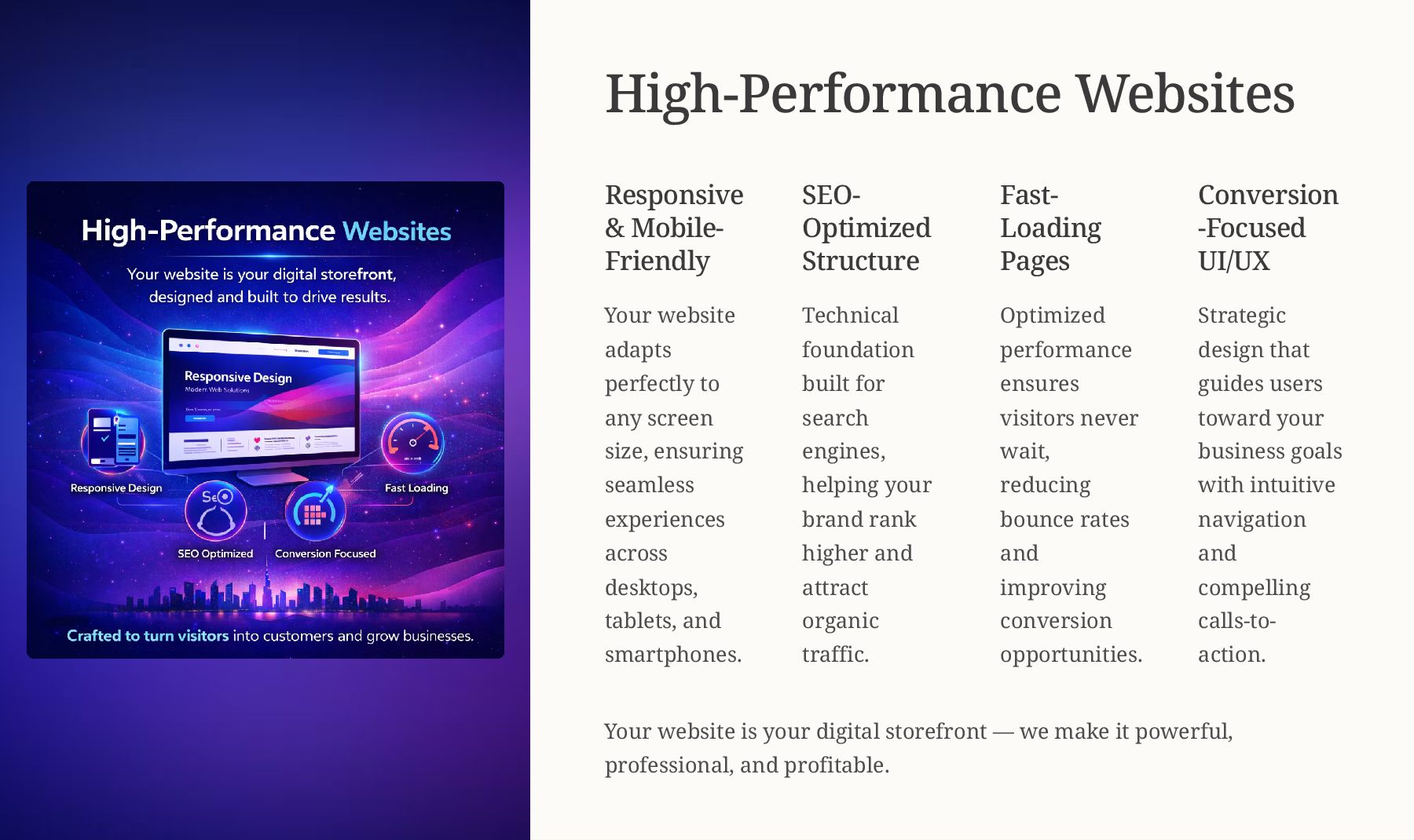 • Web Development (Responsive & SEO-Optimized Websites)