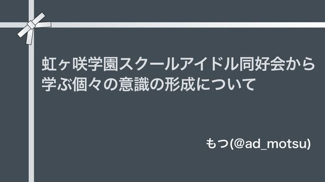 ϲֶ࡙ԂεΫʔϧΞΠυϧಉձ͔Β ֶͿݸʑͷҙࣝͷܗʹ͍ͭͯ ͭ !BE@NPUTV