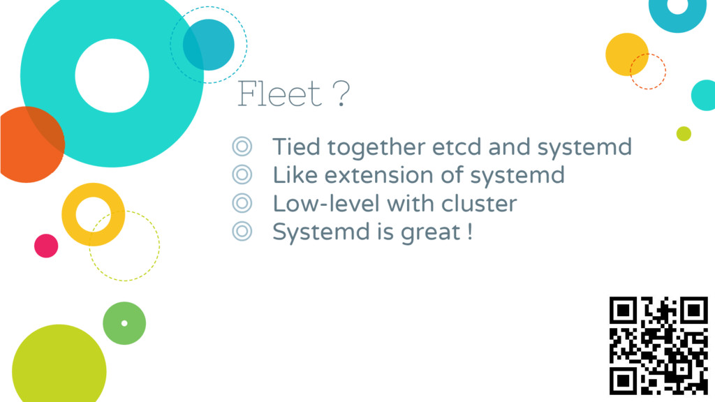 systemd ◎ Low-level with cluster ◎ Systemd is great ! Fleet ?