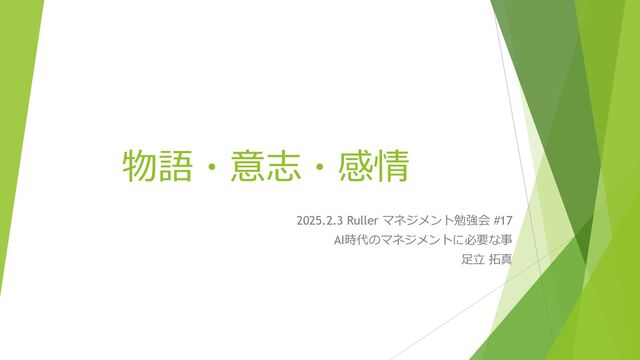 物語・意志・感情 2025.2.3 Ruller マネジメント勉強会 #17 AI時代のマネジメントに必要な事 足立 拓真