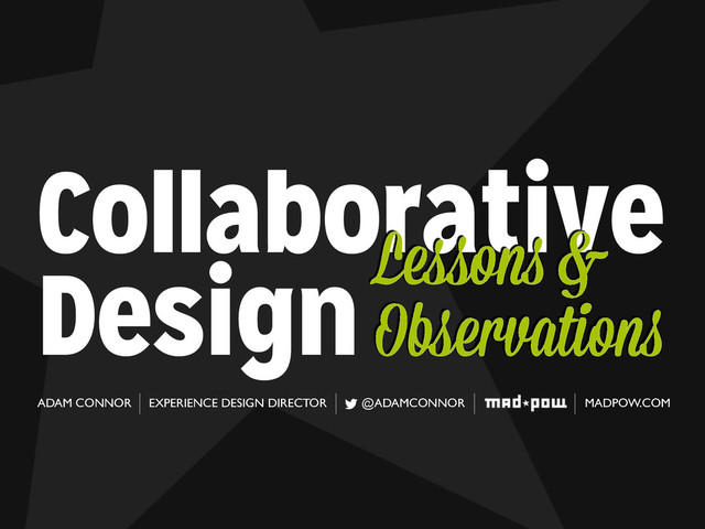 the creative process as carried out by the artists and makers we all so admire, you can see the weak points in collaboration as it is carried out in many organizations... ...and fix them.