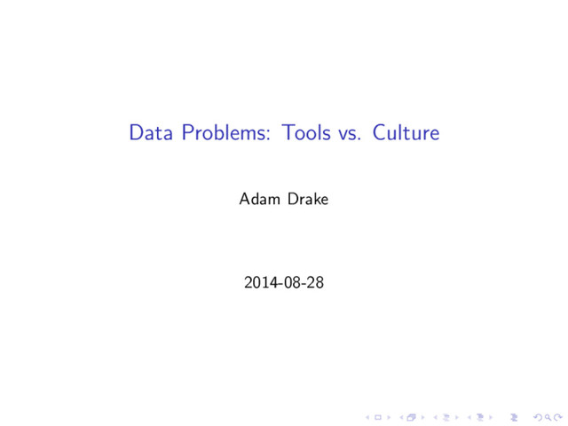 Data Problems: Tools vs. Culture Adam Drake 2014-08-28