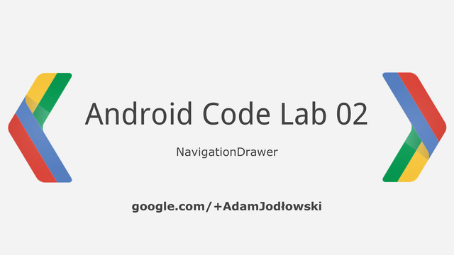 i pokazywaniem swojej zawartości. Do zadań programisty należy: 1. Dostarczenie odpowiedniego layoutu aktywności z użyciem widoku DrawerLayout 2. Obsługa interakcji użytkownika z opcjami wyświetlanymi w drawerze 3. Ewentualne pokazywanie i ukrywanie drawera programowo, w reakcji na inne zdarzenia niż swipe po ekranie Dobrą praktyką jest podpięcie NavigationDrawera do ikonki aplikacji w ActionBarze, z uwagi na nieoczywistość zastosowania tego rodzaju nawigacji w aplikacji. Aby skorzystać z komponentu, należy mieć dołączoną i skonfigurowaną bibliotekę Support Library (v4), jest ona dołączana automatycznie do nowotworzonych projektów. Część prezentacji zakłada przypadek pisania aplikacji dla wersji API 11+ z uwagi na wykorzystanie ActionBara. Aby przystosować kod do starszych wersji platformy, wystarczy skorzystać z ActionBarCompat zgodnie z Code Lab 01.