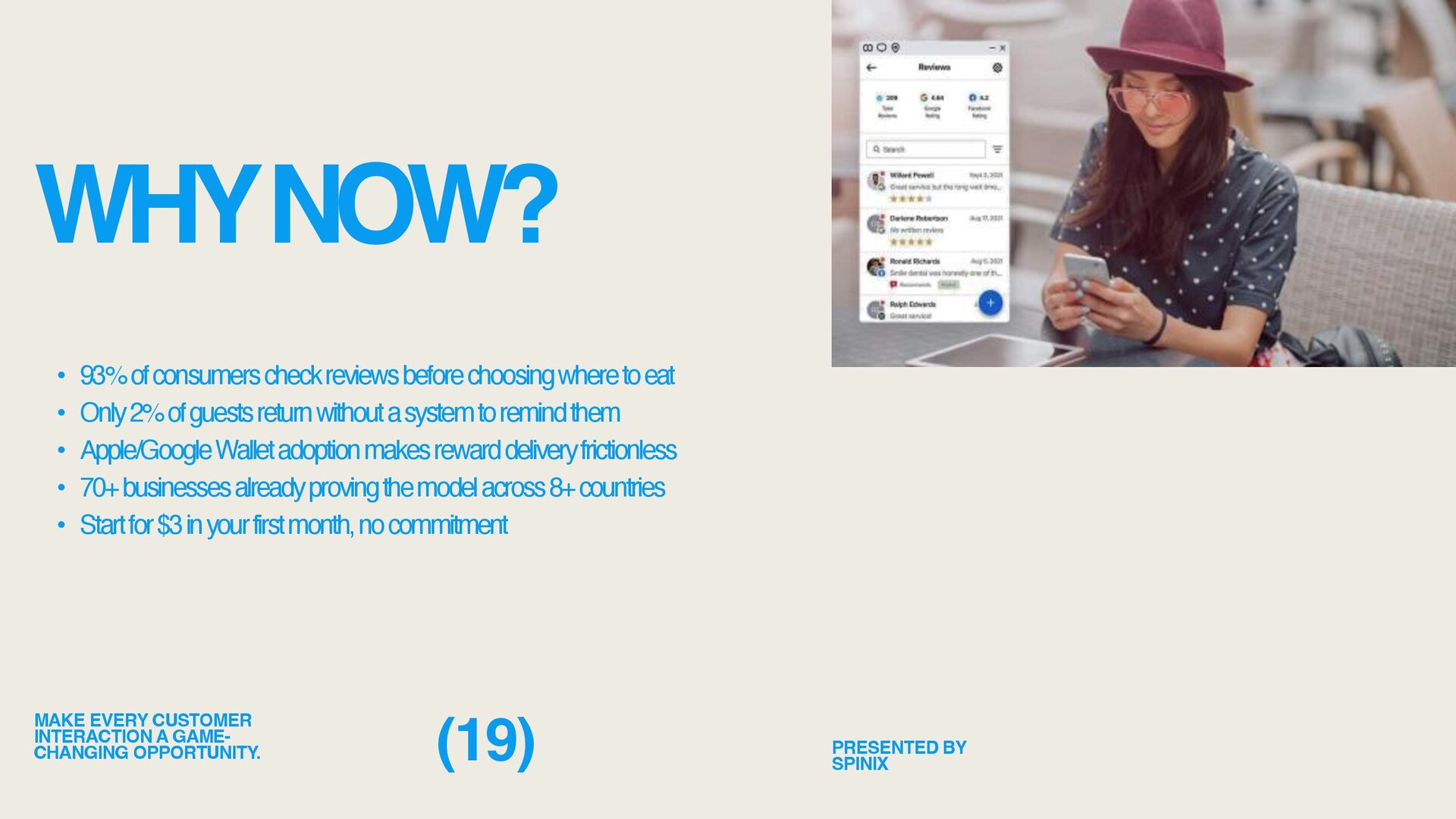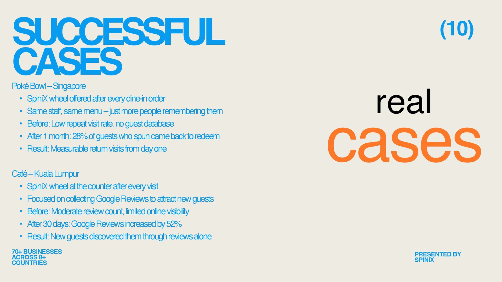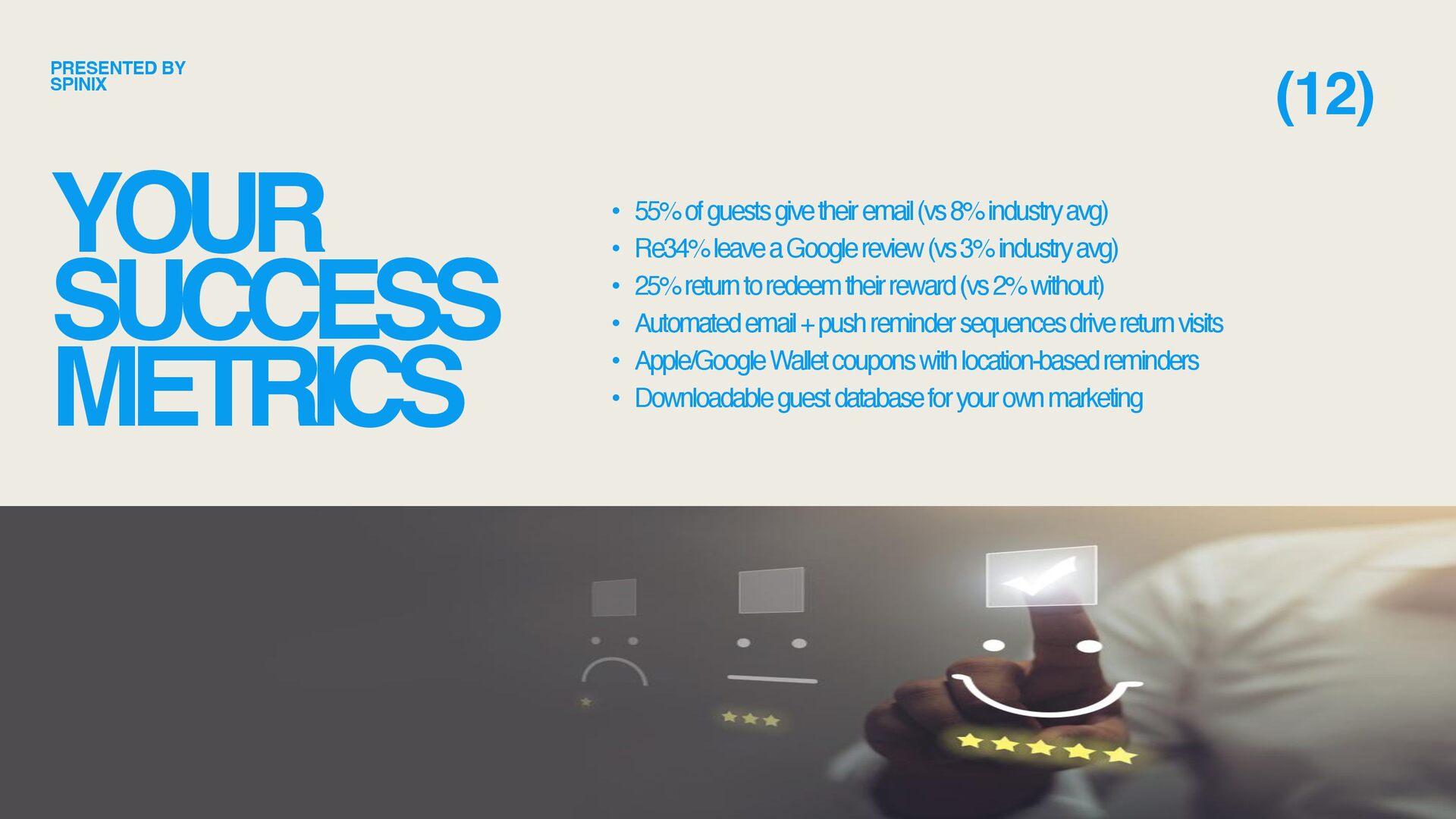 SpiniX helps restaurants and hospitality businesses turn first-time guests into regulars using gamified rewards, automated Google review collection, and Apple Wallet integration. Guests scan a QR code, spin a prize wheel, win a reward saved to their phone, and get automated reminders to return. Results from 70+ active businesses across 8+ countries: 55% email capture rate (7x industry average), 34% Google review rate (10x normal), and 25% of guests return to redeem. Pricing starts at $3 for the first month. No app needed, 15-minute setup, works on any smartphone. Built bootstrapped and profitable without external funding.