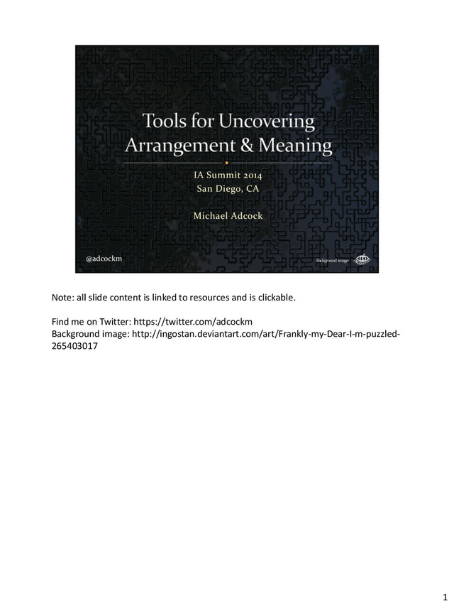 Finding useful tools can be difficult, and they can be found in unlikely places. We’ll look at several uncommon tools that have been valuable in my own work, including Gephi, Google Refine, and Tiddlywiki. I’ll share my successes and failures and discuss how I’ve learned to evaluate these tools. If they are unfamiliar, I’ll show you enough to get started using them immediately. After brief overviews and basic examples, you’ll be armed with ways to improve your own work, and new directions to explore!