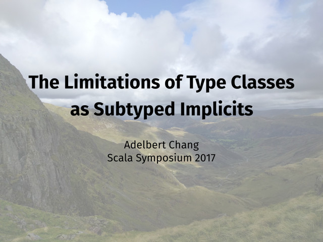 Type classes enable a powerful form of ad-hoc polymorphism which provide solutions to many programming design problems. Inspired by this, Scala programmers have striven to emulate them in the design of libraries like Scalaz and Cats.