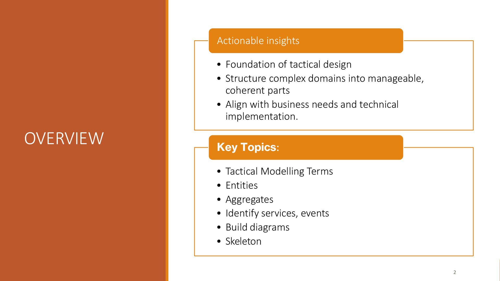 In this session, we’ll take a deep dive into Tactical Domain Driven Design and explore how to apply it in practice. Starting from a high-level architecture, we’ll zoom in on a specific Bounded Context to examine its tactical design in depth. We’ll identify candidates for key tactical patterns: aggregates, entities, value objects, services and policies.