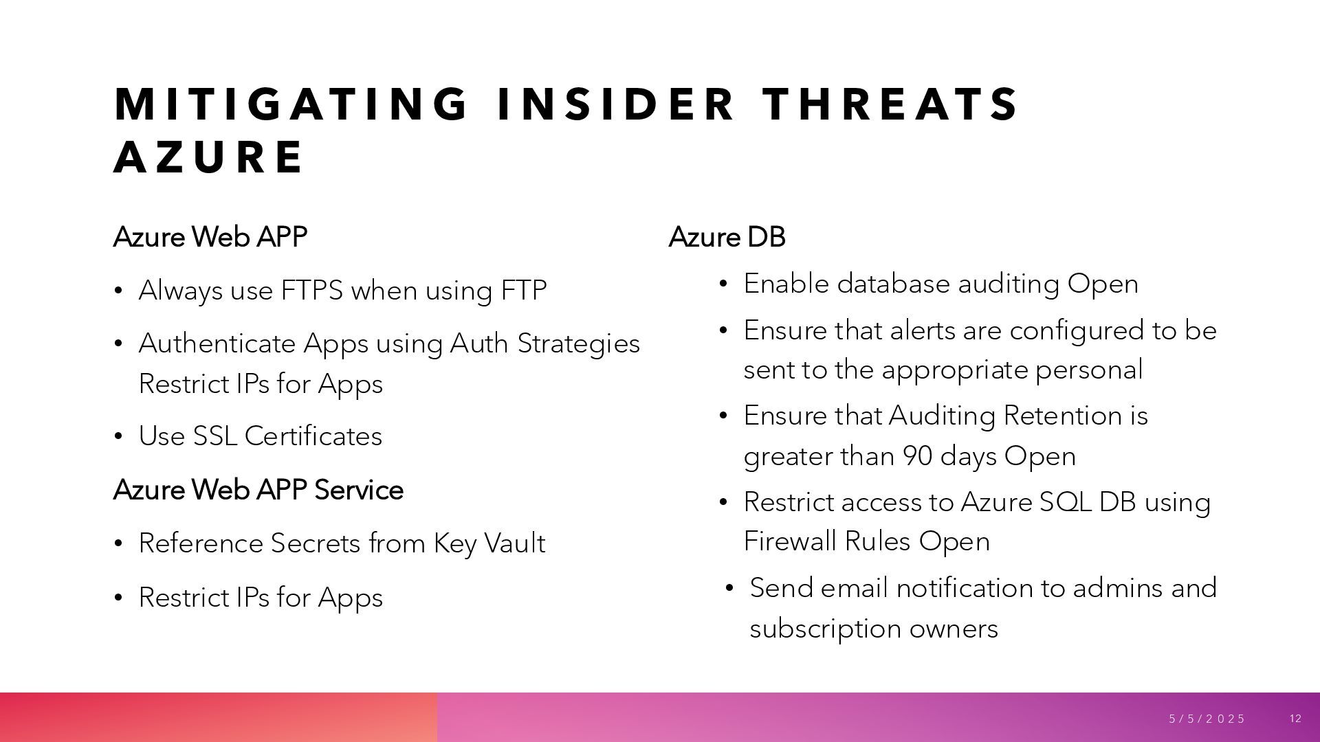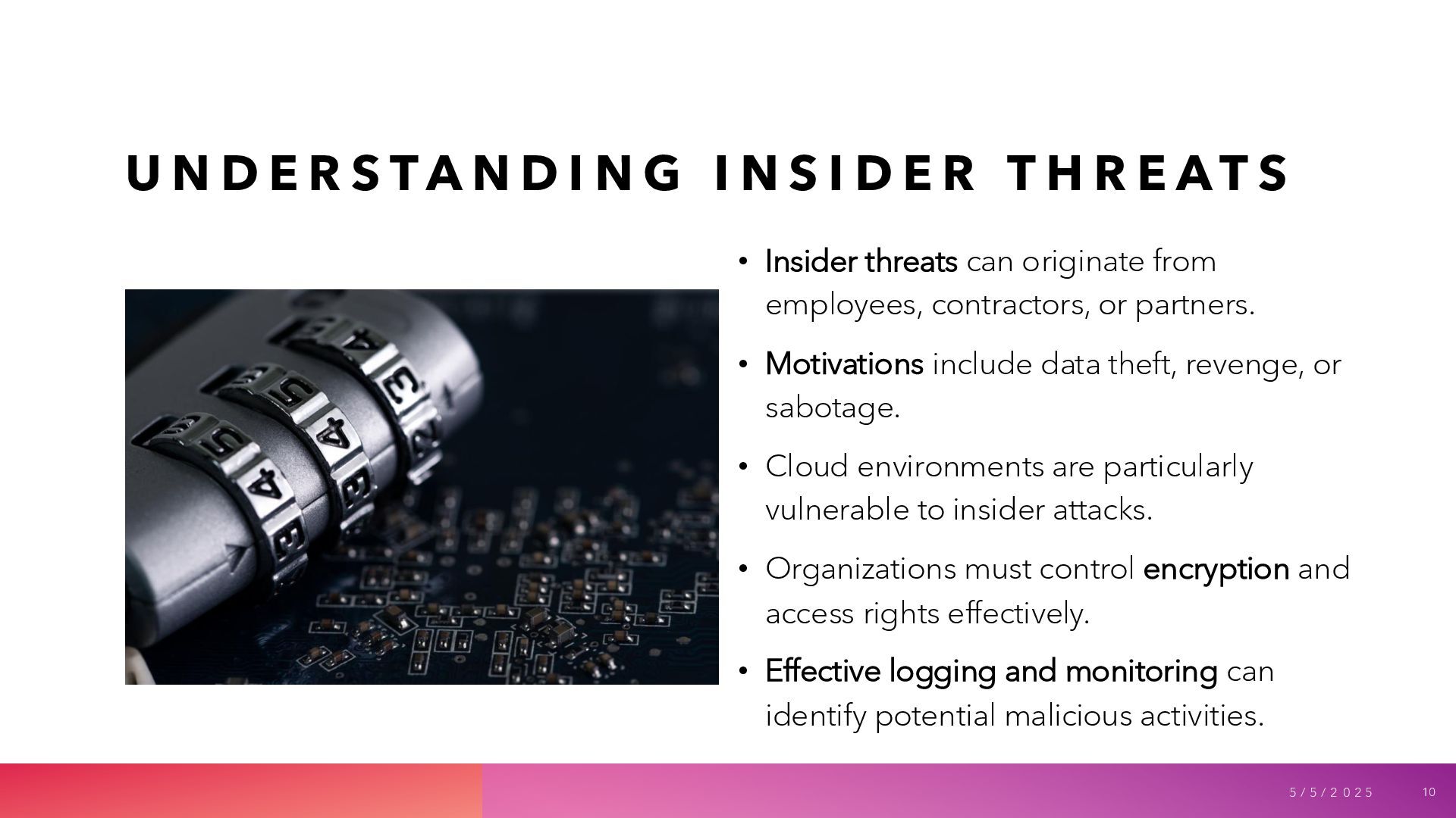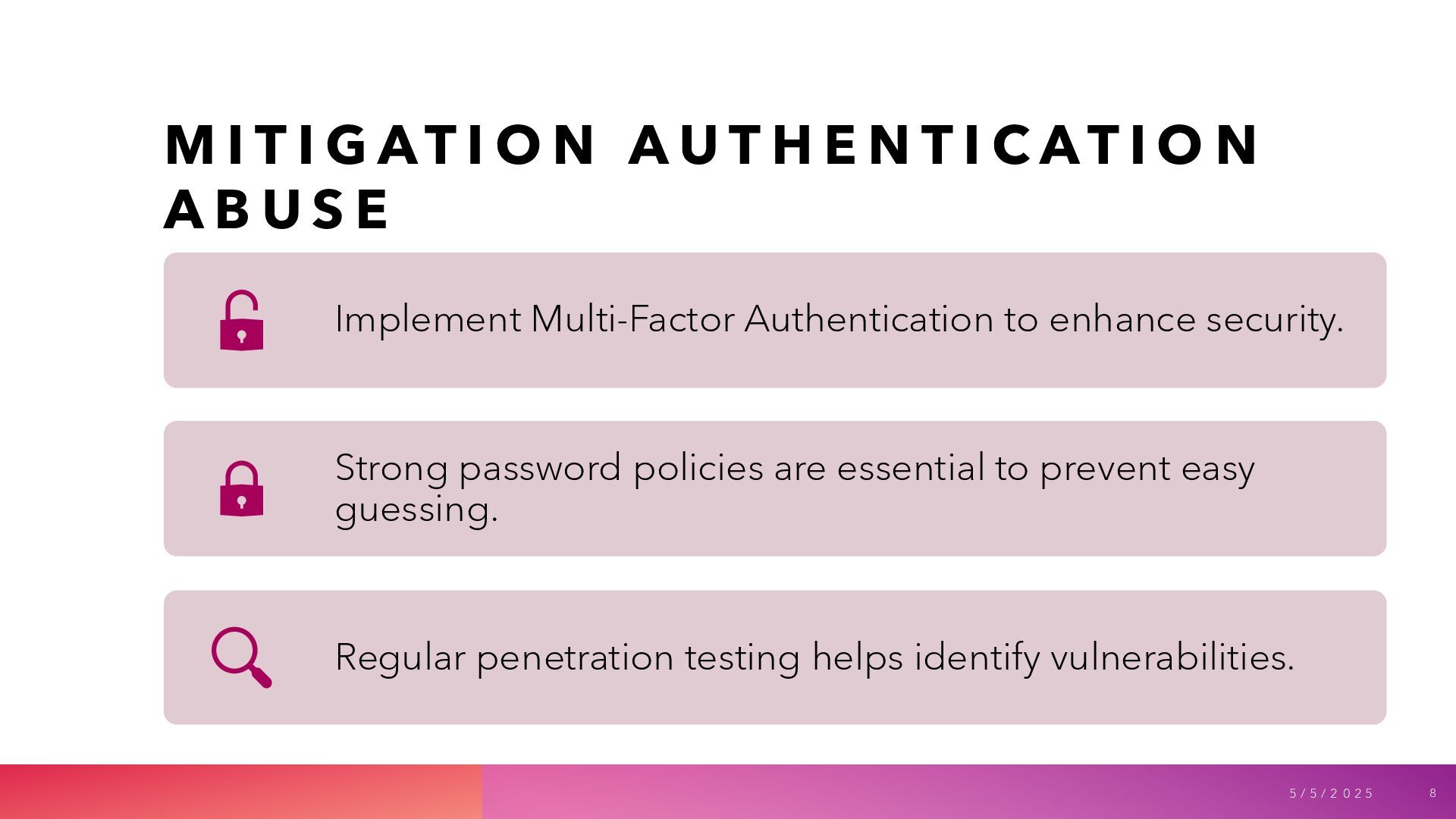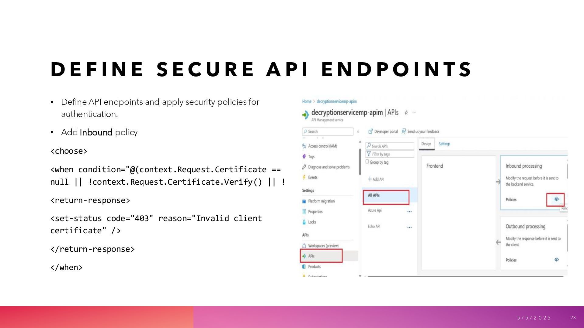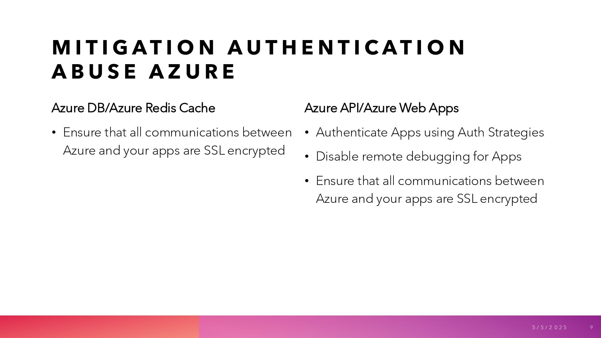 / 2 0 2 5 5 The security and dependability of cloud services depend on safeguarding the API. Weak interfaces and API security issues can threaten confidentiality, integrity, availability, and accountability. APIs are often the most vulnerable part of the system, usually accessible through the public Internet. Threat modelling for applications and systems is vital in the Software Development Life Cycle (SDLC). Conduct security-oriented code reviews, security scans, and penetration testing.