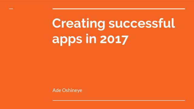 2017’s successful apps are transformative front-ends to services that seamlessly use machine learning. In this talk at Google's Developer Day for Agencies ( #gdda2016 ) I explore some ideas that agencies will have to understand in order to be successful app developers in the years to come.