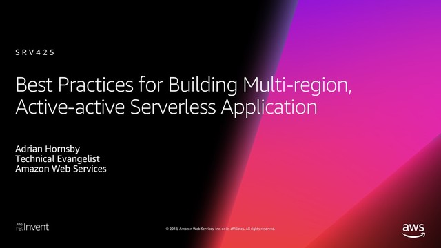 In this session, we walk through building and deploying a global-scale, multi-region, active-active serverless backend using Amazon Route 53 to route the traffic among AWS Regions, Amazon API Gateway, and AWS Lambda for the backend, and Amazon DynamoDB global tables for handling data storage at a global scale. We provide a demo and a hands-on coding opportunity.