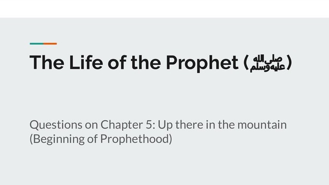 Questions on Chapter 5 of Adil Salahi's book 'Muhammad – Man and Prophet' published by Islamic Foundation. The title of the chapter is "Up there in the mountain" and it covers the beginning of Prophethood.
