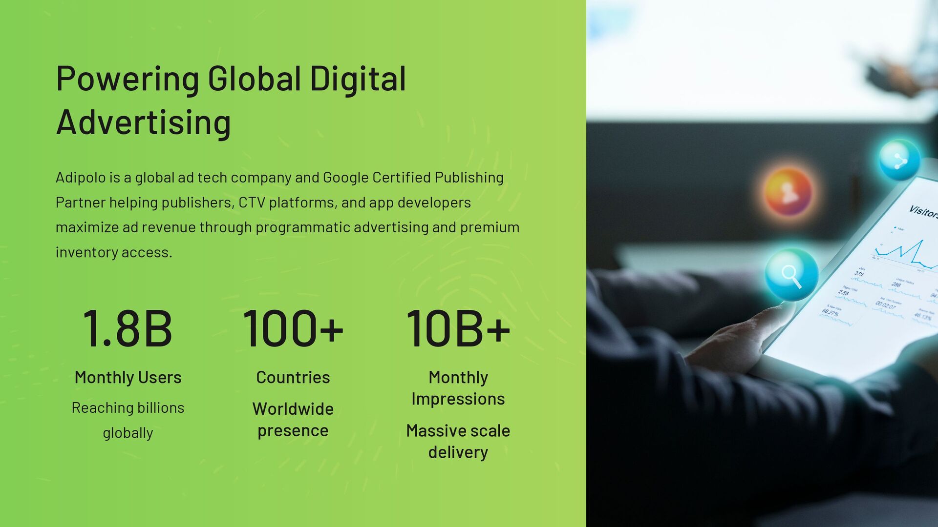 Monetization for Websites & Apps Adipolo offers effortless integration tools for web, app and CTV publishers; you submit your inventory once and the system optimizes demand, fills ads from multiple sources and enables you to focus on content while they handle monetization