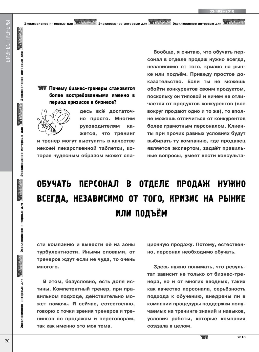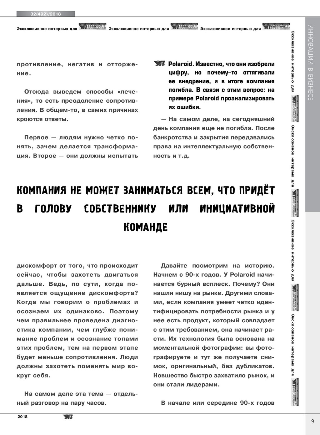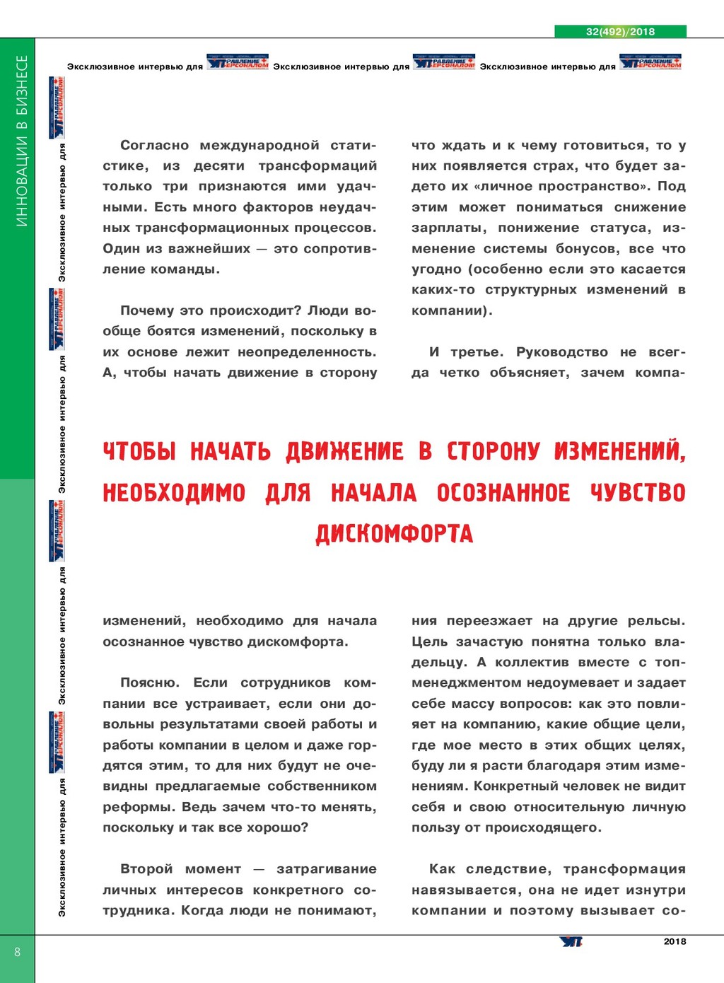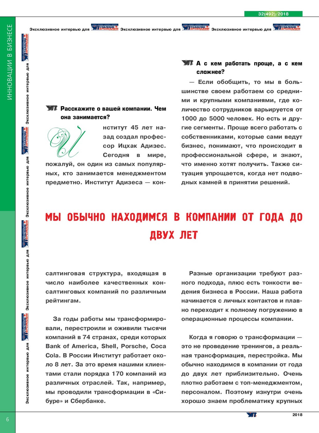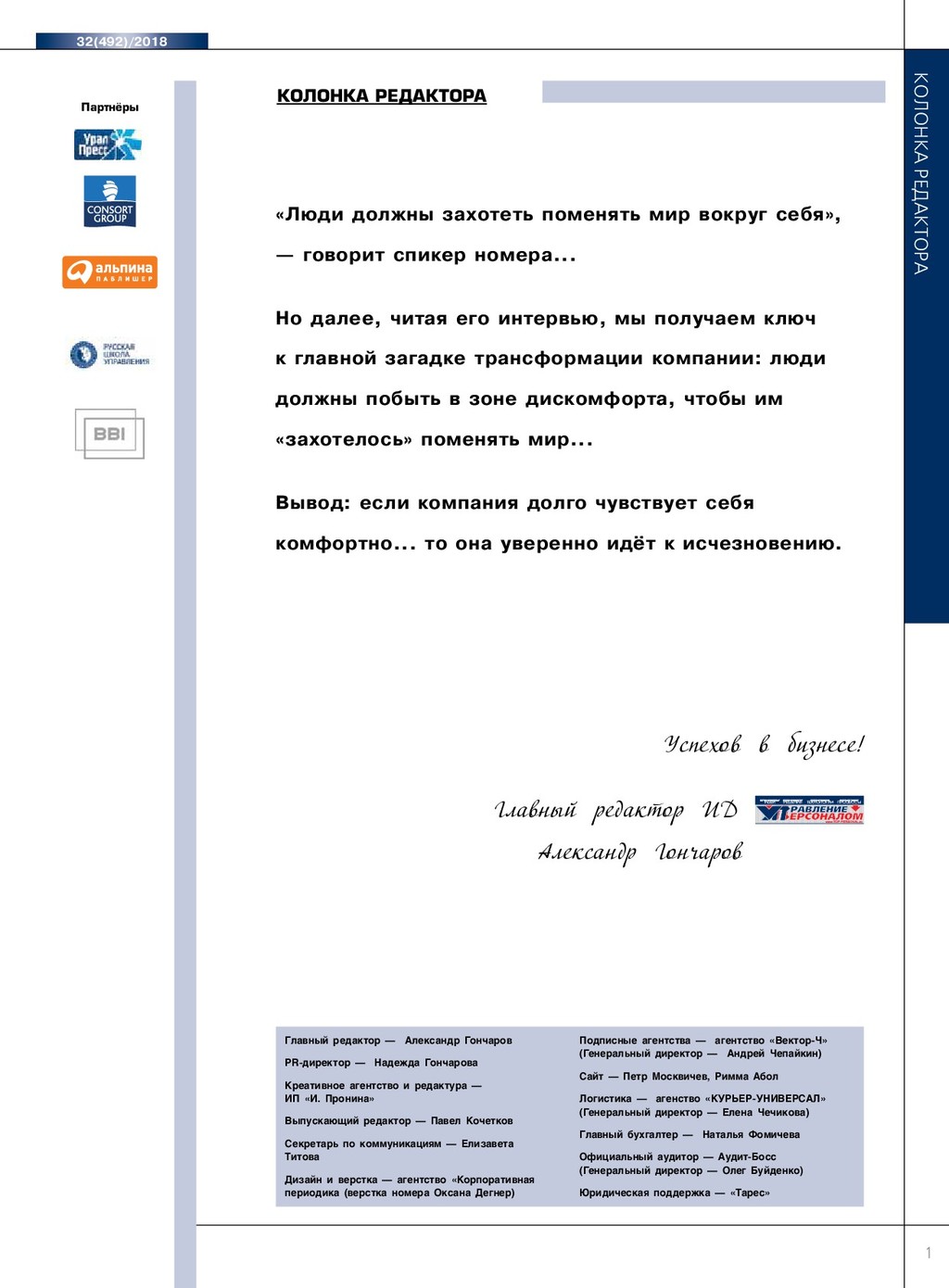 [email protected] Руководитель проекта «Национальная Деловая премия Капитаны Российского Бизнеса»: Левина Т. ИД рекомендует: Курьерская служба: Аудиторская поддержка: Контент-менеджер web-сайта: Москвичев П. Юридическая поддержка Заслуженный юрист РФ — Бродский И. Дизайн-бюро: Издательская Студия «Корпоративная Периодика» Объединенная редакция ИД ISBN 5-95630-007-7 № 32 (492) Подписано в печать 31.08.2018 г. Формат 60х90 1/8. Печать офсетная. Тираж 10 000 экз. Печ. л. 8. Заказ № Отпечатано в полном соответствии с качеством предоставленного электронного оригинал-макета в АО «ИПК «Чувашия» 428019, г. Чебоксары, пр. И. Яковлева, 13 Приглашаем авторов к сотрудничеству: