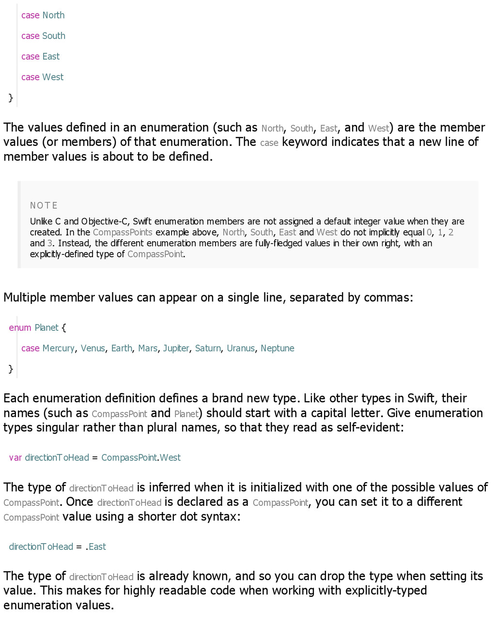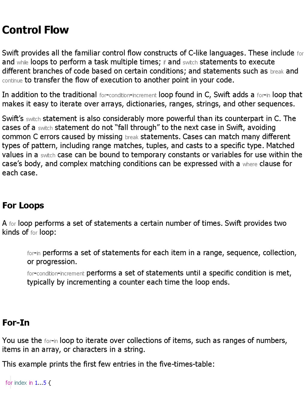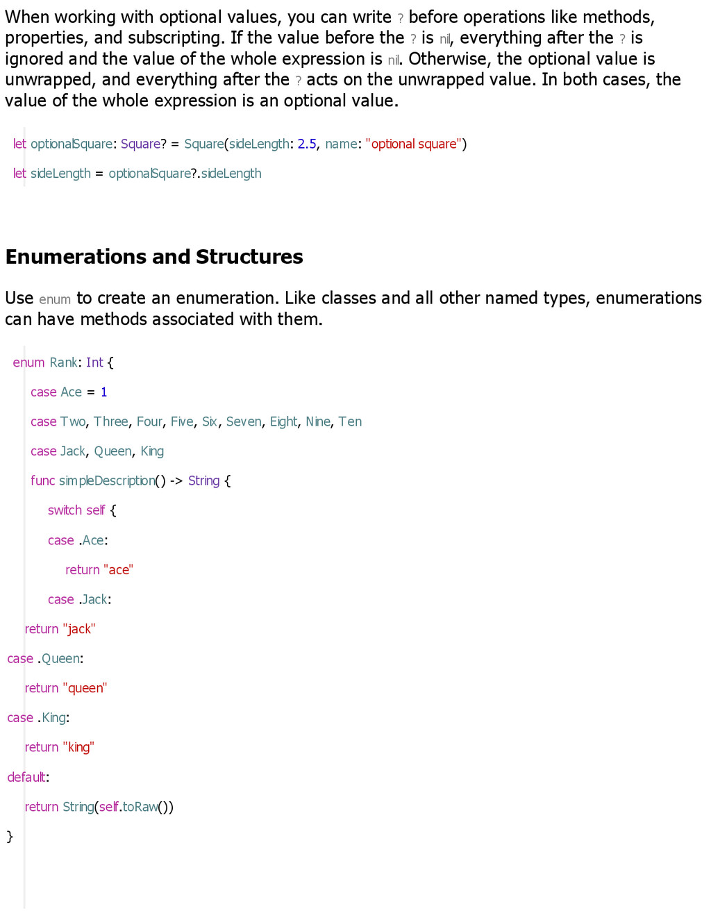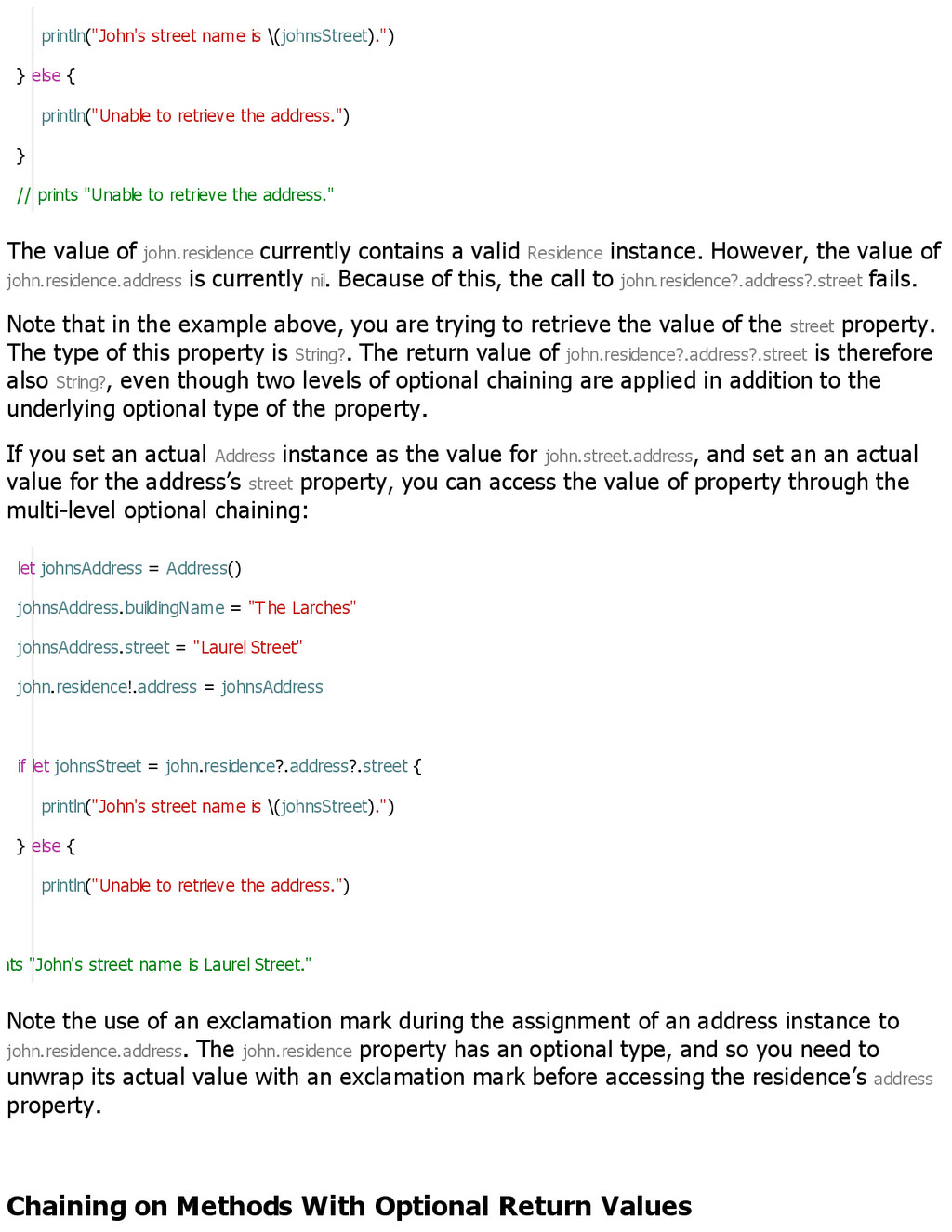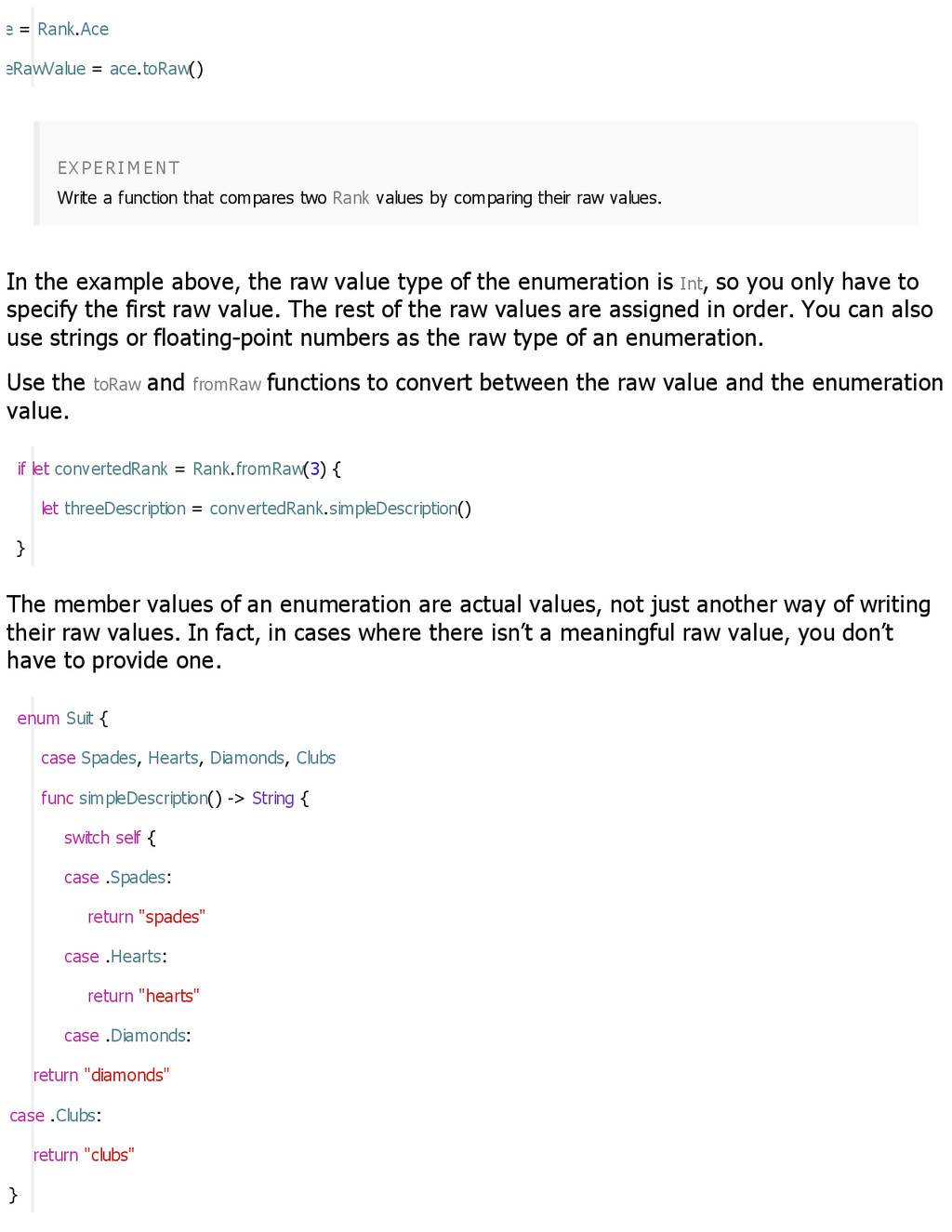 it will return a value must always do so. A function with a defined return type cannot allow control to fall out of the bottom of the function without returning a value, and attempting to do so will result in a compile-time error. Functions with Multiple Return Values You can use a tuple type as the return type for a function to return multiple values as part of one compound return value. The example below defines a function called count, which counts the number of vowels, consonants, and other characters in a string, based on the standard set of vowels and consonants used in American English: func count(string: String) -> (vowels: Int, consonants: Int, others: Int) { var vowels = 0, consonants = 0, others = 0 for character in string { switch String(character).lowercaseString { case "a", "e", "i", "o", "u": ++vowels case "b", "c", "d", "f", "g", "h", "j", "k", "l", "m", "n", "p", "q", "r", "s", "t", "v", "w", "x", "y", "z": ++consonants default: ++others } eturn (vowels, consonants, others) You can use this count function to count the characters in an arbitrary string, and to retrieve the counted totals as a tuple of three named Int values: let total = count("some arbitrary string!") println("\(total.vowels) vowels and \(total.consonants) consonants")