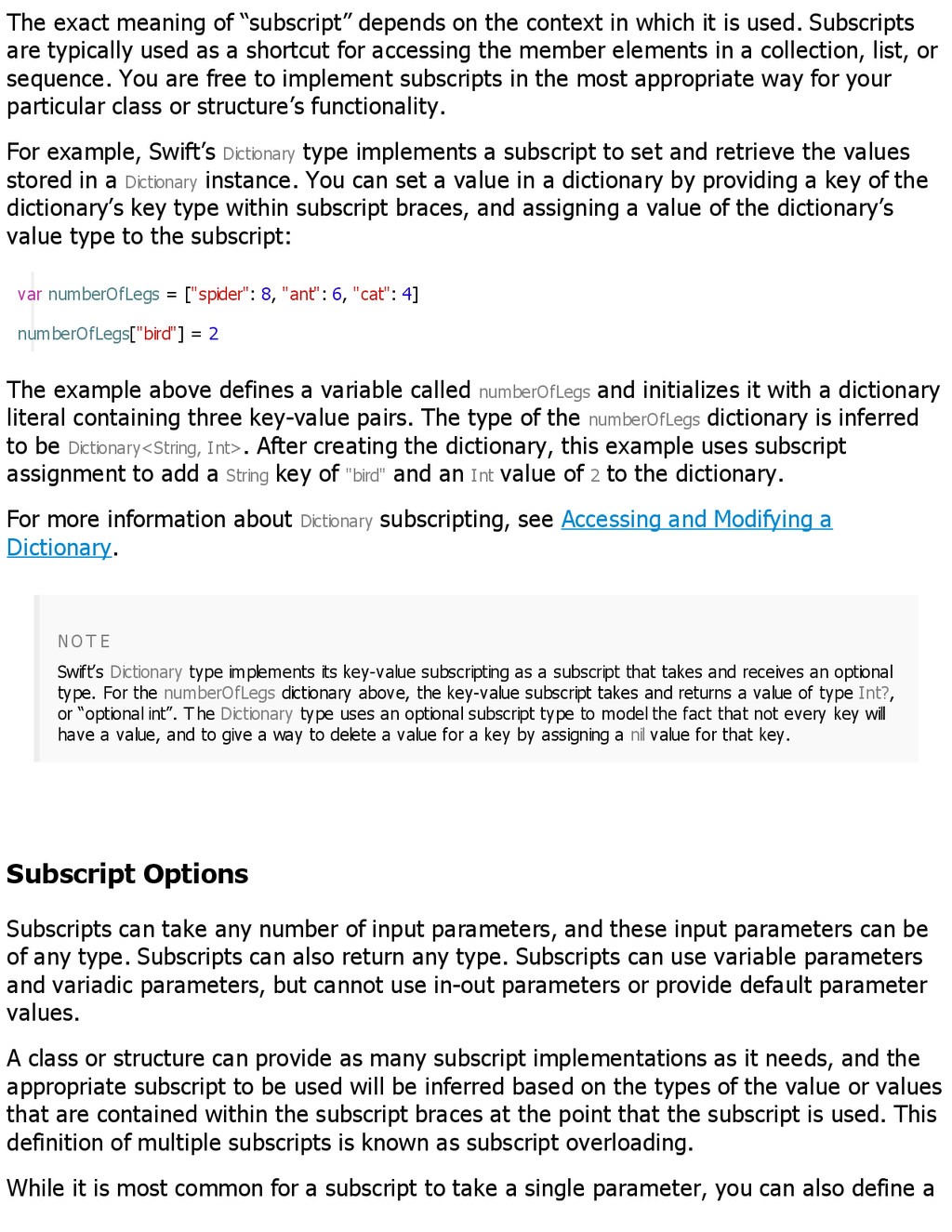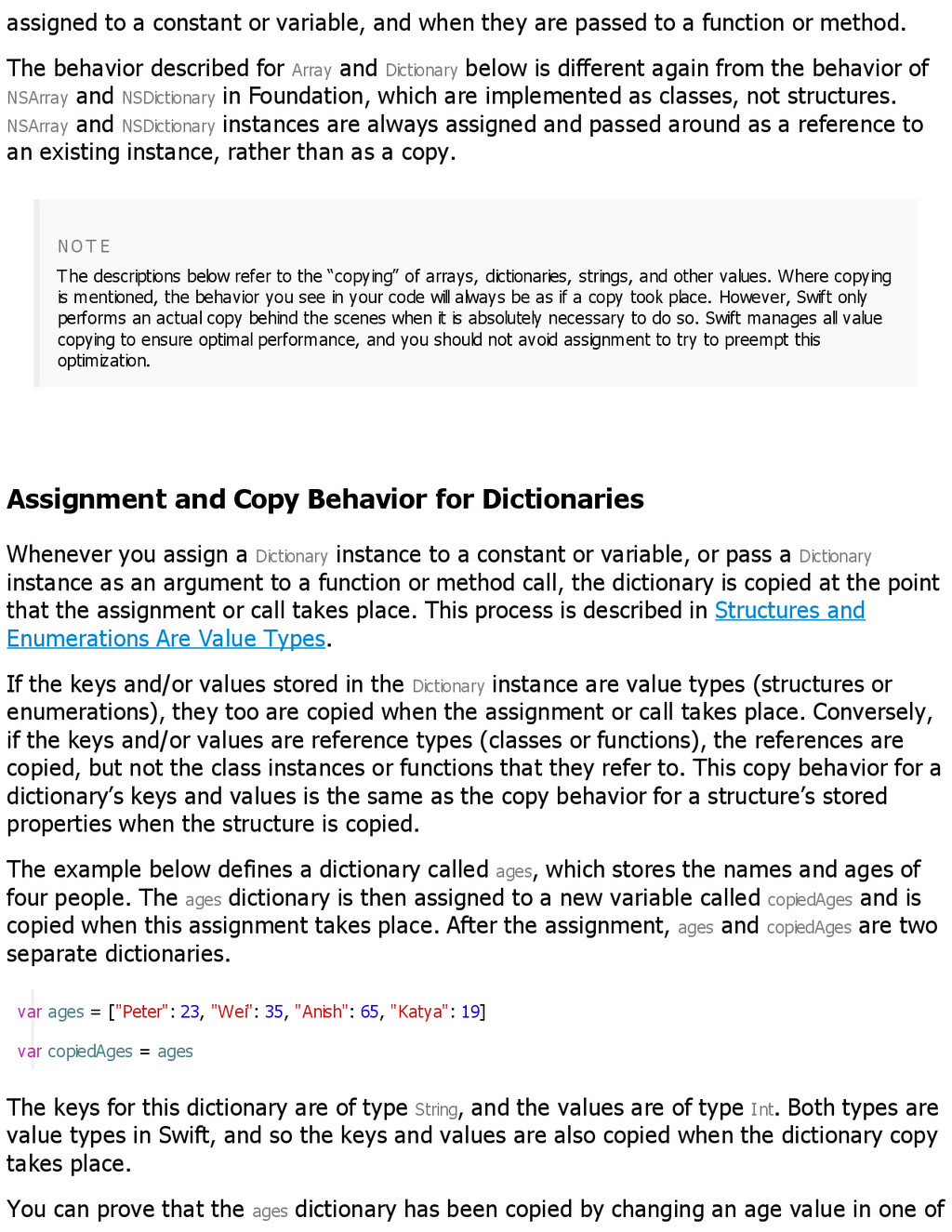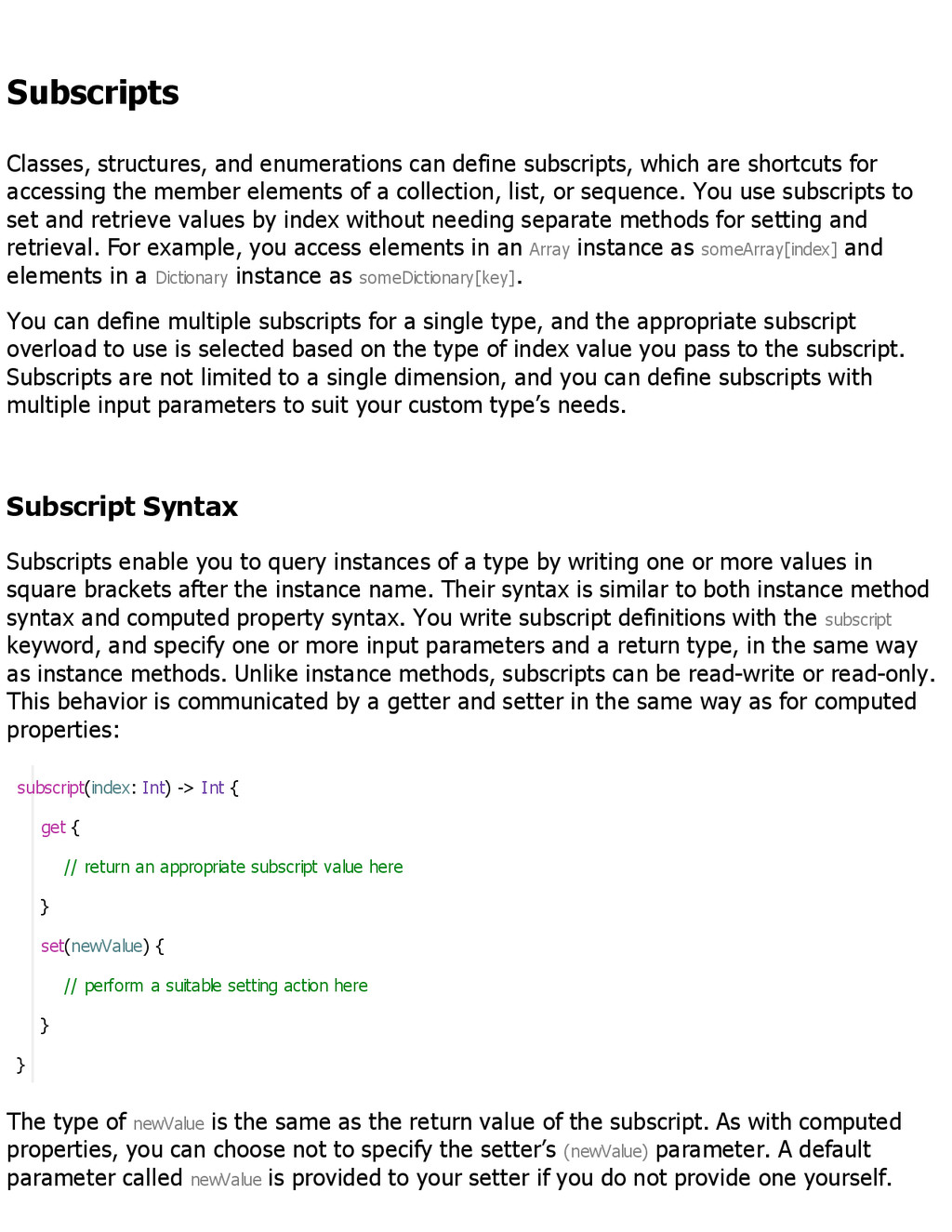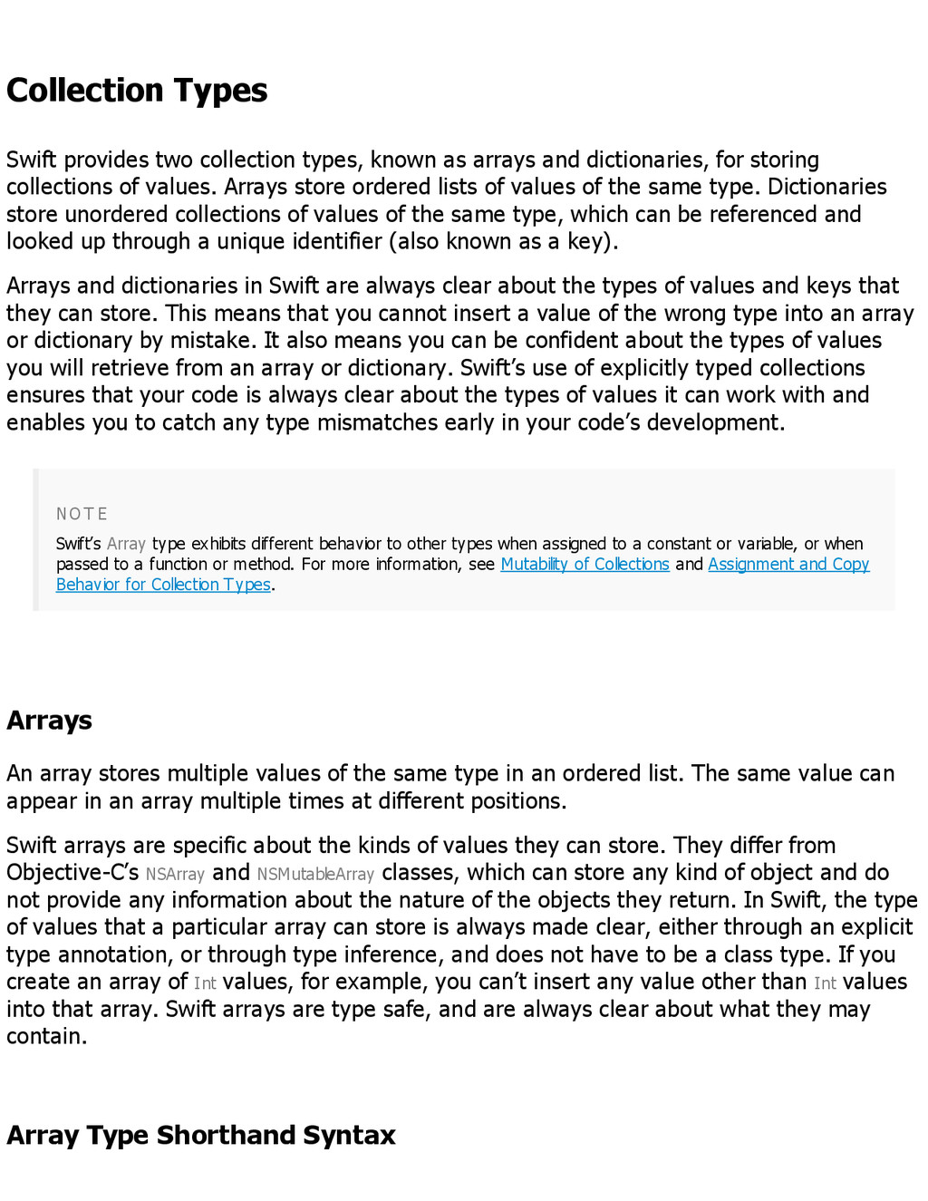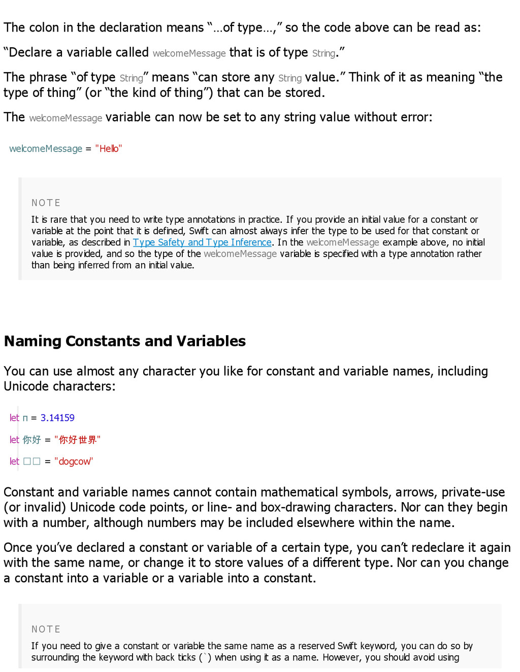 it will return a value must always do so. A function with a defined return type cannot allow control to fall out of the bottom of the function without returning a value, and attempting to do so will result in a compile-time error. Functions with Multiple Return Values You can use a tuple type as the return type for a function to return multiple values as part of one compound return value. The example below defines a function called count, which counts the number of vowels, consonants, and other characters in a string, based on the standard set of vowels and consonants used in American English: func count(string: String) -> (vowels: Int, consonants: Int, others: Int) { var vowels = 0, consonants = 0, others = 0 for character in string { switch String(character).lowercaseString { case "a", "e", "i", "o", "u": ++vowels case "b", "c", "d", "f", "g", "h", "j", "k", "l", "m", "n", "p", "q", "r", "s", "t", "v", "w", "x", "y", "z": ++consonants default: ++others } eturn (vowels, consonants, others) You can use this count function to count the characters in an arbitrary string, and to retrieve the counted totals as a tuple of three named Int values: let total = count("some arbitrary string!") println("\(total.vowels) vowels and \(total.consonants) consonants")