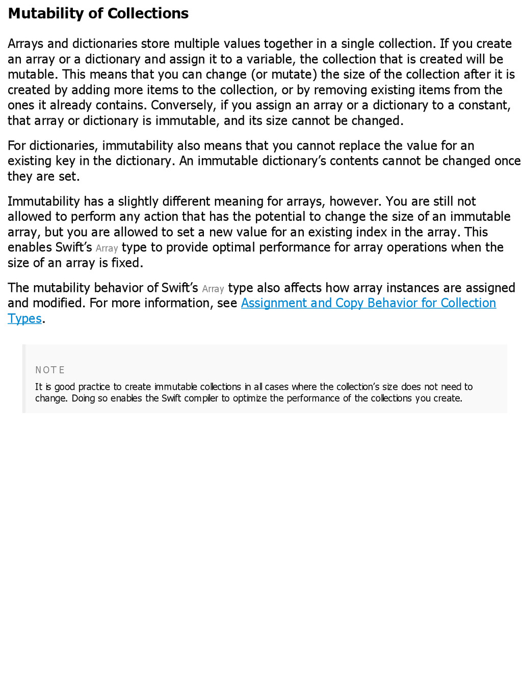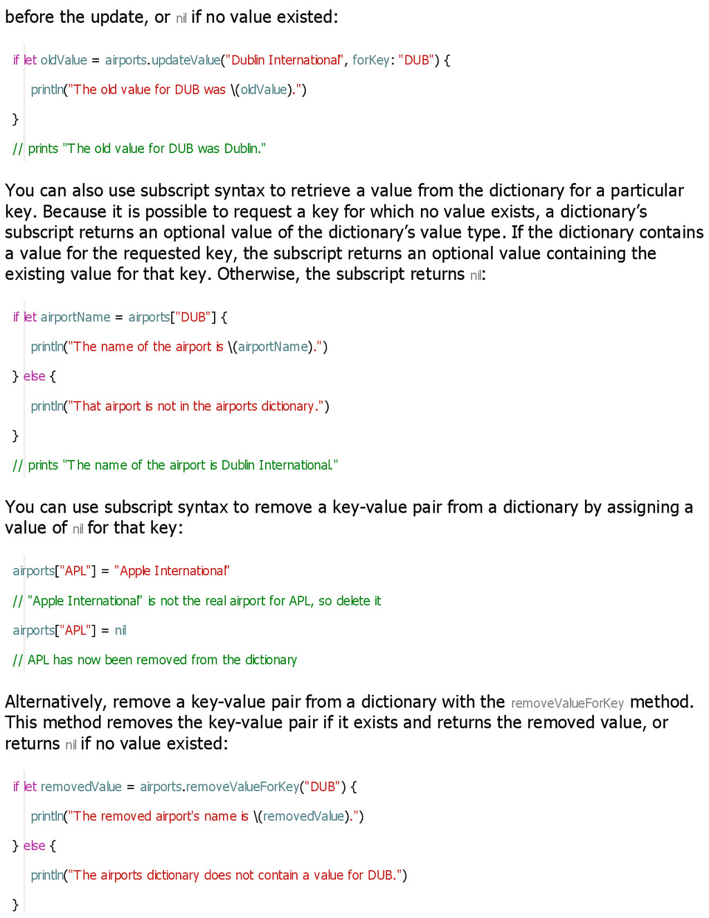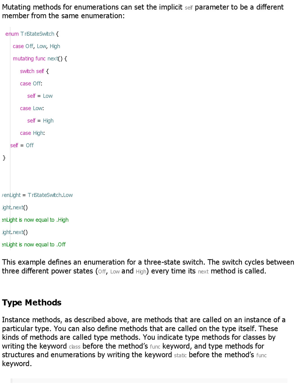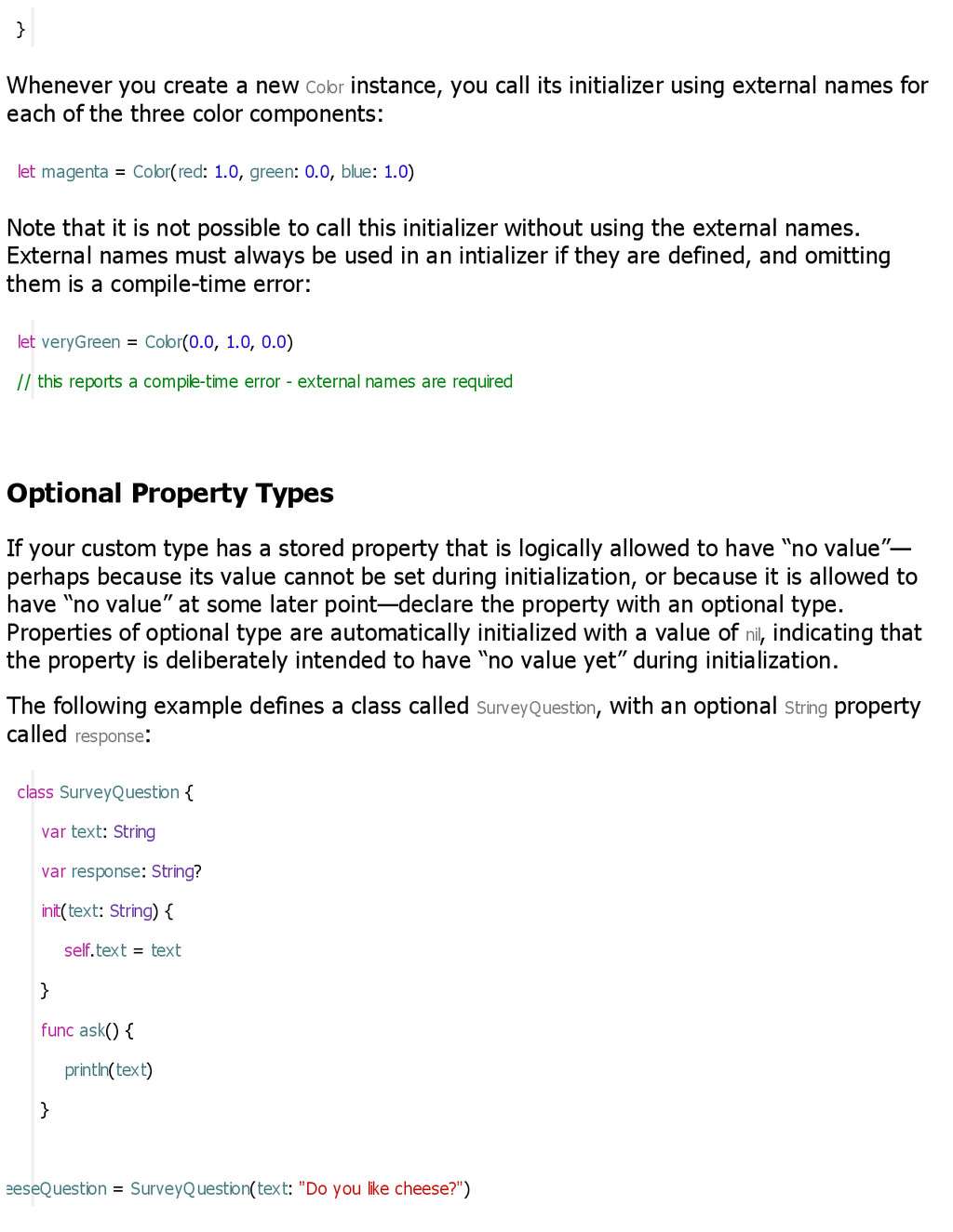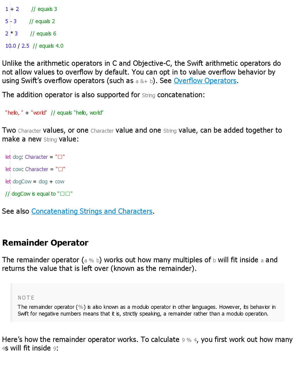 it will return a value must always do so. A function with a defined return type cannot allow control to fall out of the bottom of the function without returning a value, and attempting to do so will result in a compile-time error. Functions with Multiple Return Values You can use a tuple type as the return type for a function to return multiple values as part of one compound return value. The example below defines a function called count, which counts the number of vowels, consonants, and other characters in a string, based on the standard set of vowels and consonants used in American English: func count(string: String) -> (vowels: Int, consonants: Int, others: Int) { var vowels = 0, consonants = 0, others = 0 for character in string { switch String(character).lowercaseString { case "a", "e", "i", "o", "u": ++vowels case "b", "c", "d", "f", "g", "h", "j", "k", "l", "m", "n", "p", "q", "r", "s", "t", "v", "w", "x", "y", "z": ++consonants default: ++others } eturn (vowels, consonants, others) You can use this count function to count the characters in an arbitrary string, and to retrieve the counted totals as a tuple of three named Int values: let total = count("some arbitrary string!") println("\(total.vowels) vowels and \(total.consonants) consonants")