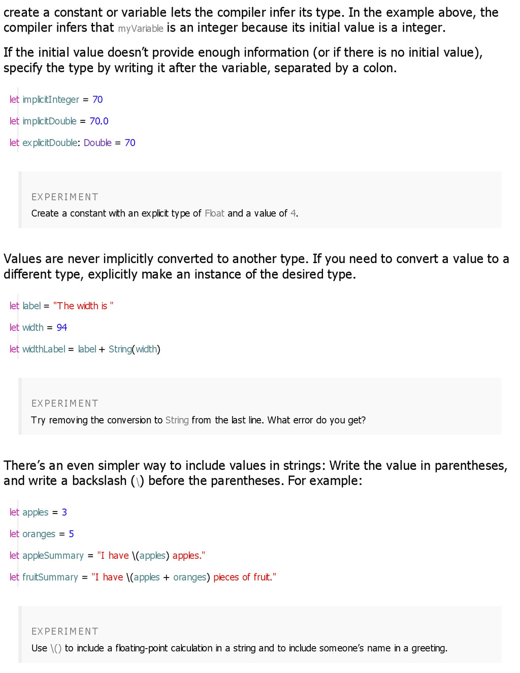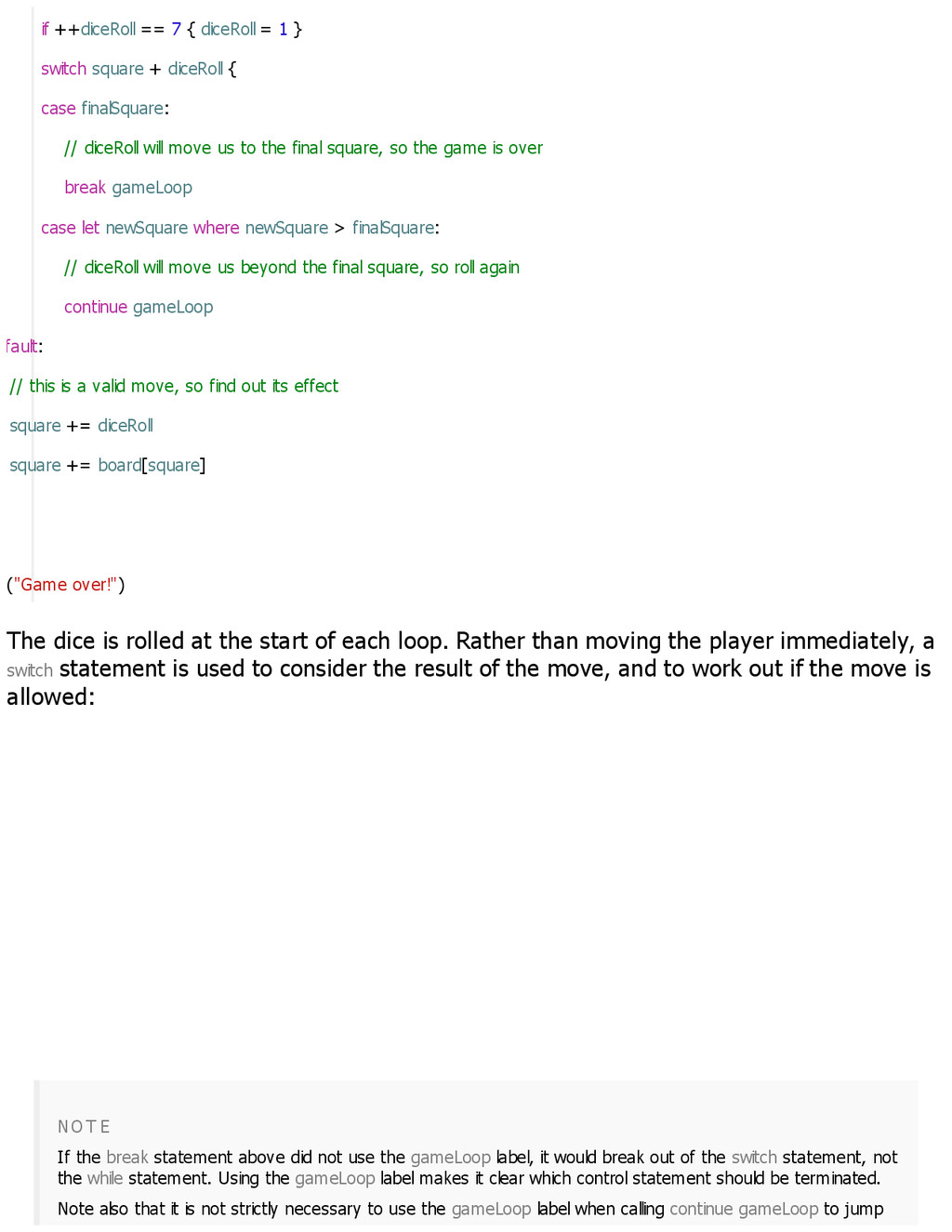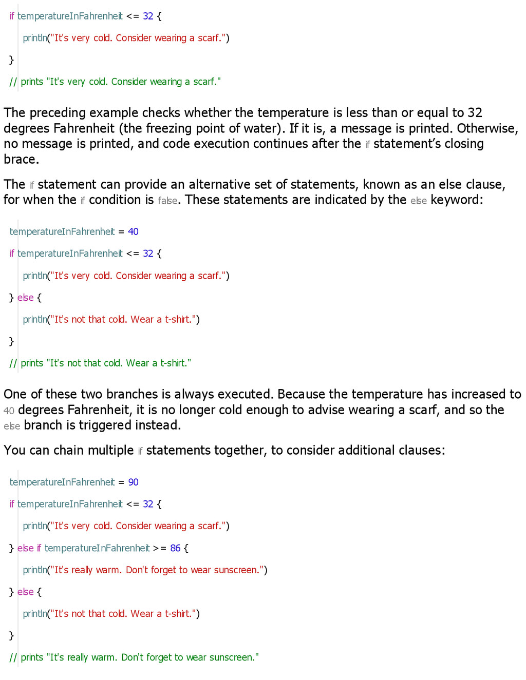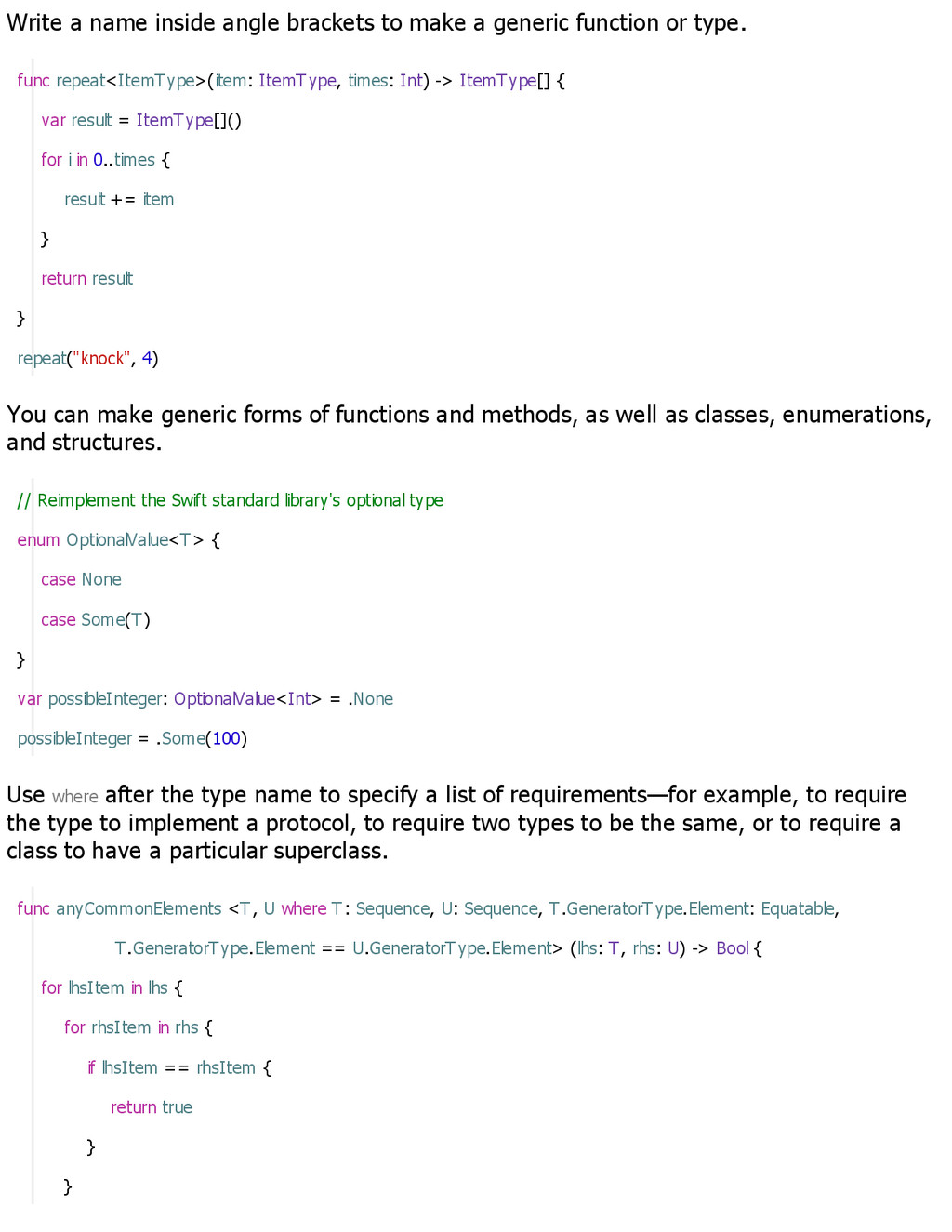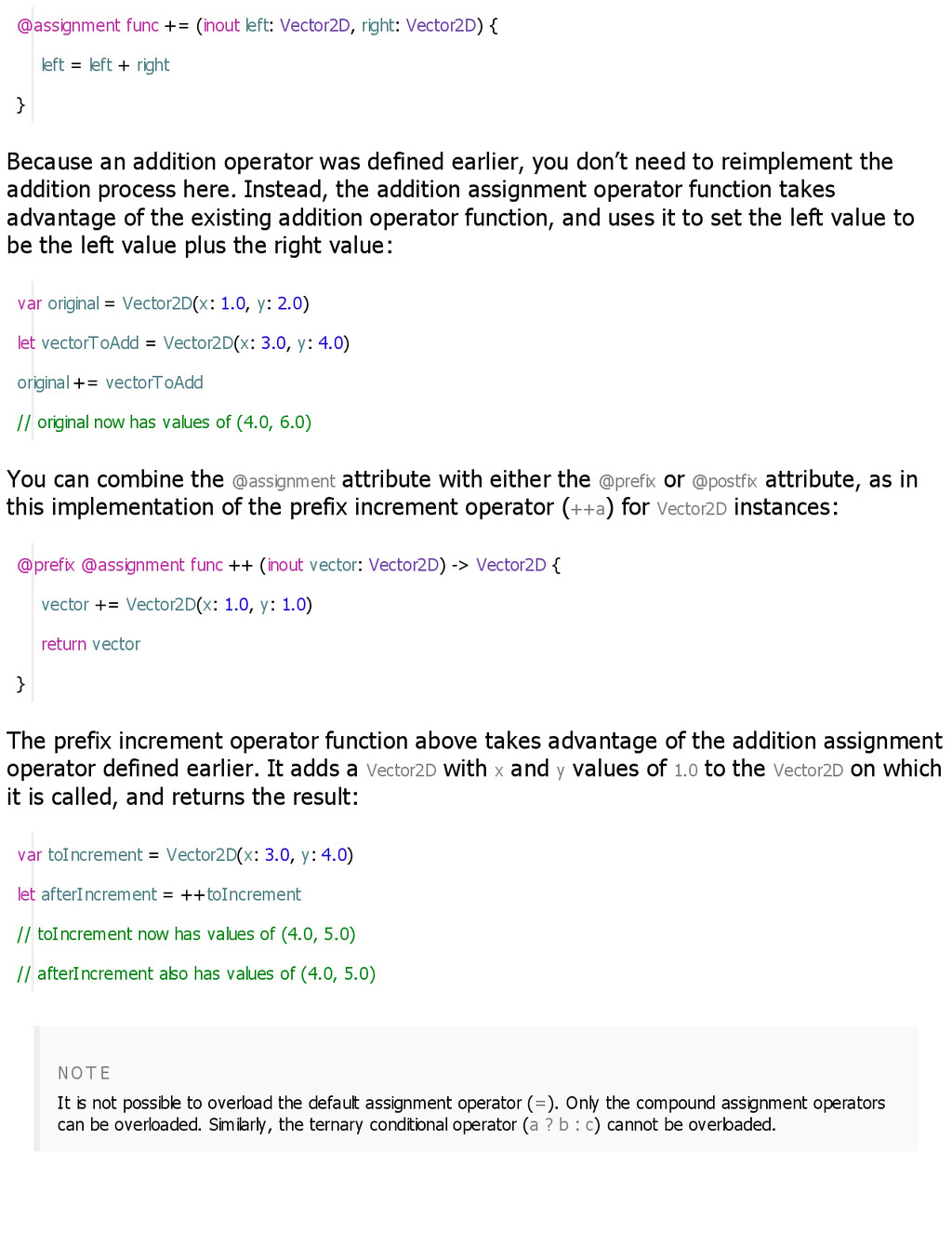 it will return a value must always do so. A function with a defined return type cannot allow control to fall out of the bottom of the function without returning a value, and attempting to do so will result in a compile-time error. Functions with Multiple Return Values You can use a tuple type as the return type for a function to return multiple values as part of one compound return value. The example below defines a function called count, which counts the number of vowels, consonants, and other characters in a string, based on the standard set of vowels and consonants used in American English: func count(string: String) -> (vowels: Int, consonants: Int, others: Int) { var vowels = 0, consonants = 0, others = 0 for character in string { switch String(character).lowercaseString { case "a", "e", "i", "o", "u": ++vowels case "b", "c", "d", "f", "g", "h", "j", "k", "l", "m", "n", "p", "q", "r", "s", "t", "v", "w", "x", "y", "z": ++consonants default: ++others } eturn (vowels, consonants, others) You can use this count function to count the characters in an arbitrary string, and to retrieve the counted totals as a tuple of three named Int values: let total = count("some arbitrary string!") println("\(total.vowels) vowels and \(total.consonants) consonants")