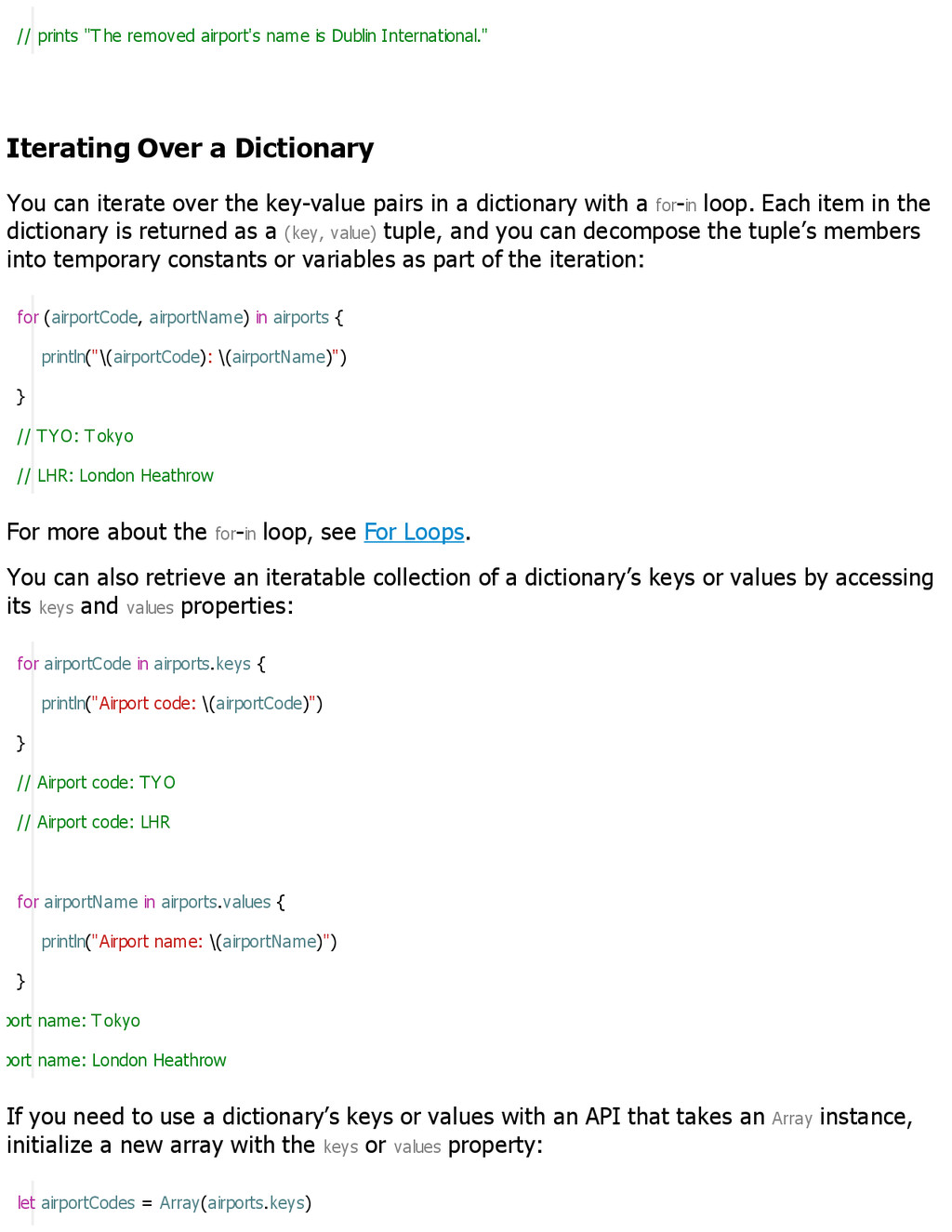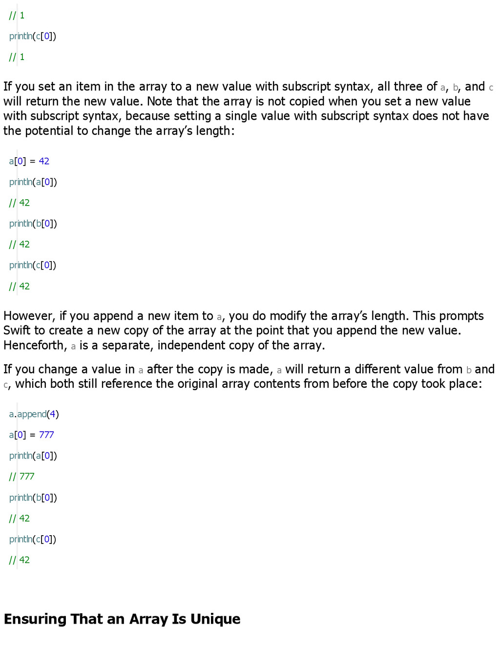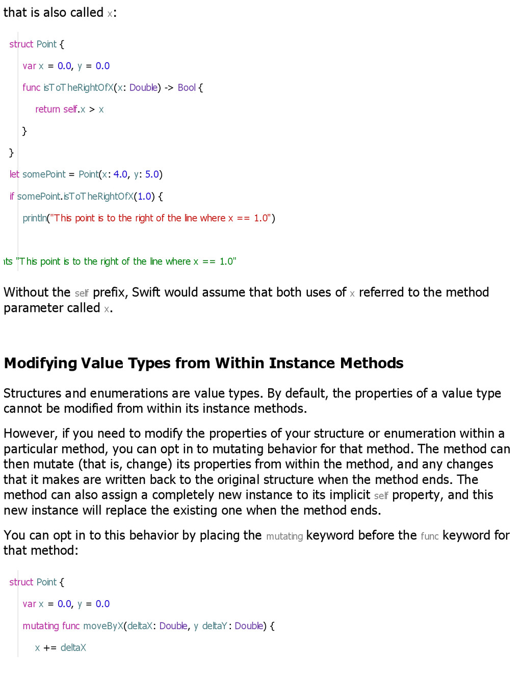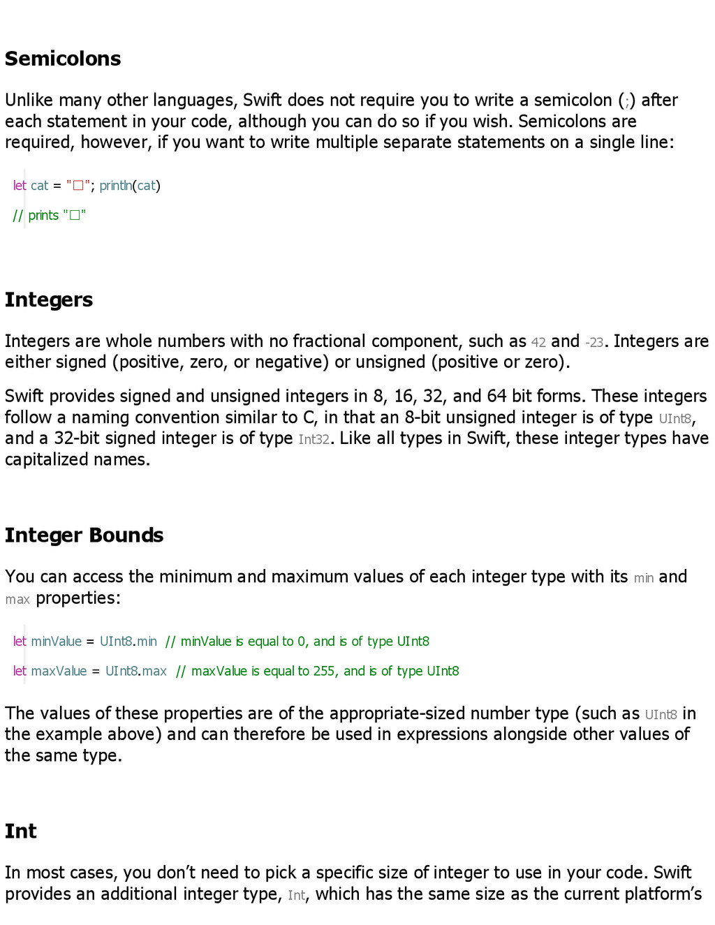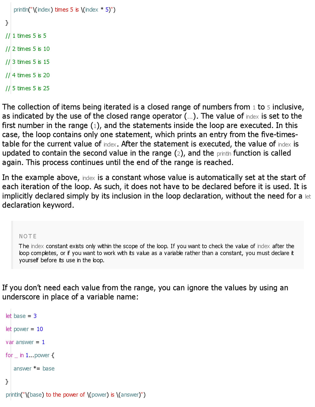 it will return a value must always do so. A function with a defined return type cannot allow control to fall out of the bottom of the function without returning a value, and attempting to do so will result in a compile-time error. Functions with Multiple Return Values You can use a tuple type as the return type for a function to return multiple values as part of one compound return value. The example below defines a function called count, which counts the number of vowels, consonants, and other characters in a string, based on the standard set of vowels and consonants used in American English: func count(string: String) -> (vowels: Int, consonants: Int, others: Int) { var vowels = 0, consonants = 0, others = 0 for character in string { switch String(character).lowercaseString { case "a", "e", "i", "o", "u": ++vowels case "b", "c", "d", "f", "g", "h", "j", "k", "l", "m", "n", "p", "q", "r", "s", "t", "v", "w", "x", "y", "z": ++consonants default: ++others } eturn (vowels, consonants, others) You can use this count function to count the characters in an arbitrary string, and to retrieve the counted totals as a tuple of three named Int values: let total = count("some arbitrary string!") println("\(total.vowels) vowels and \(total.consonants) consonants")