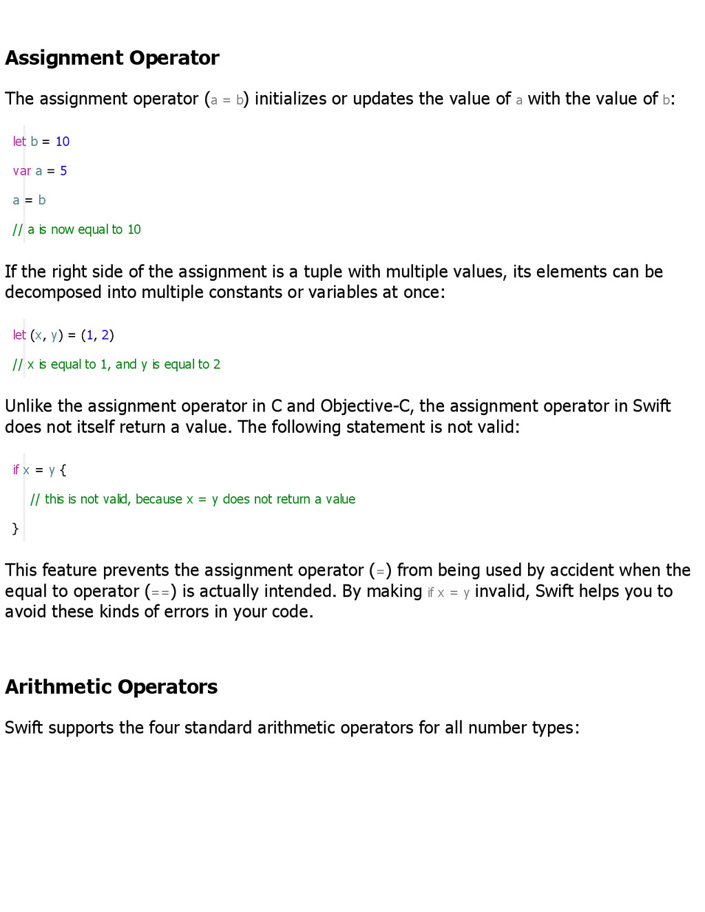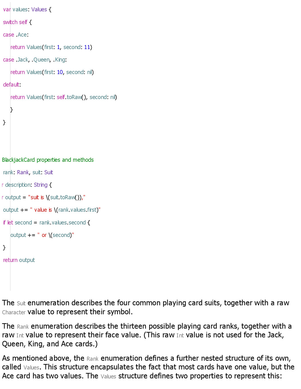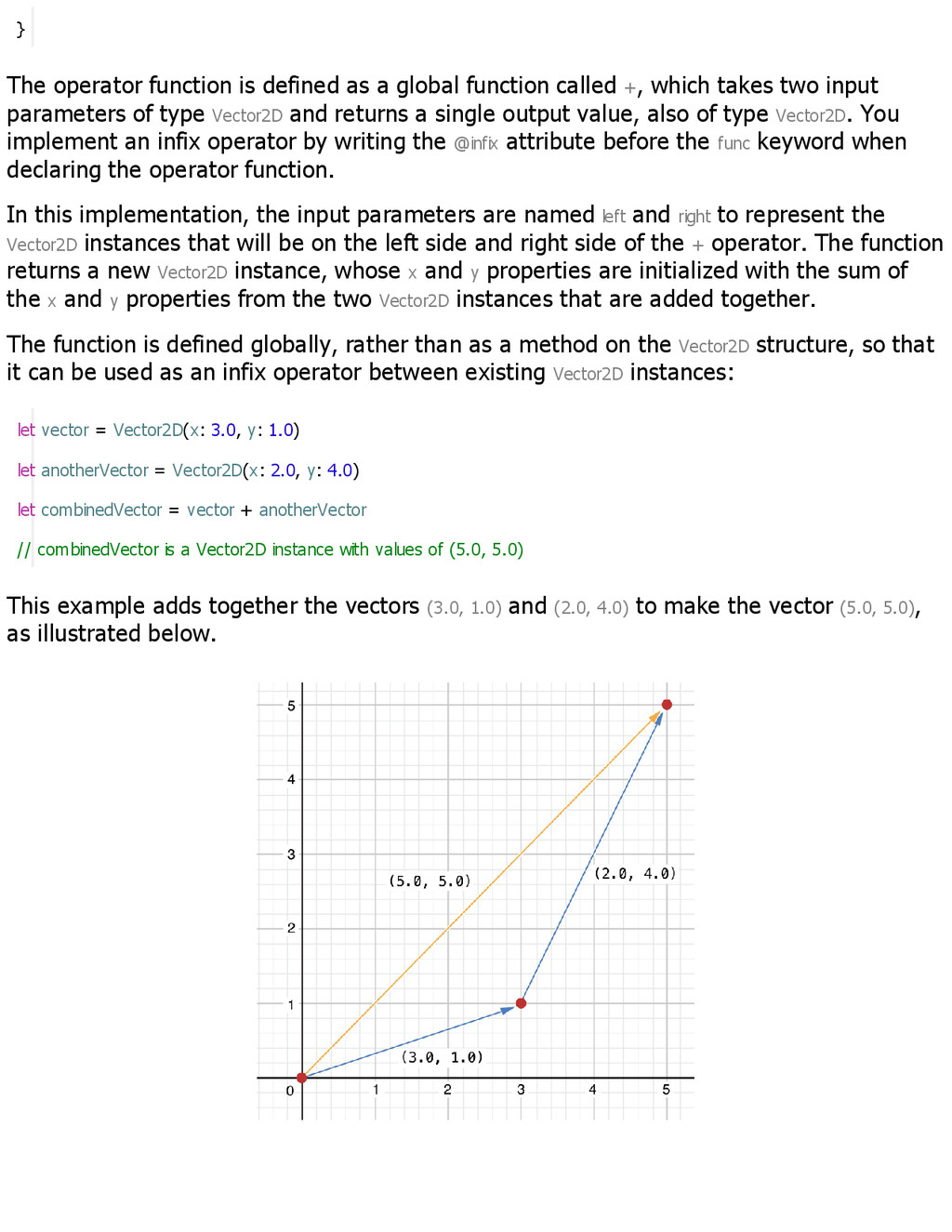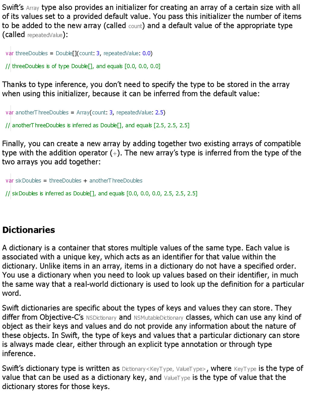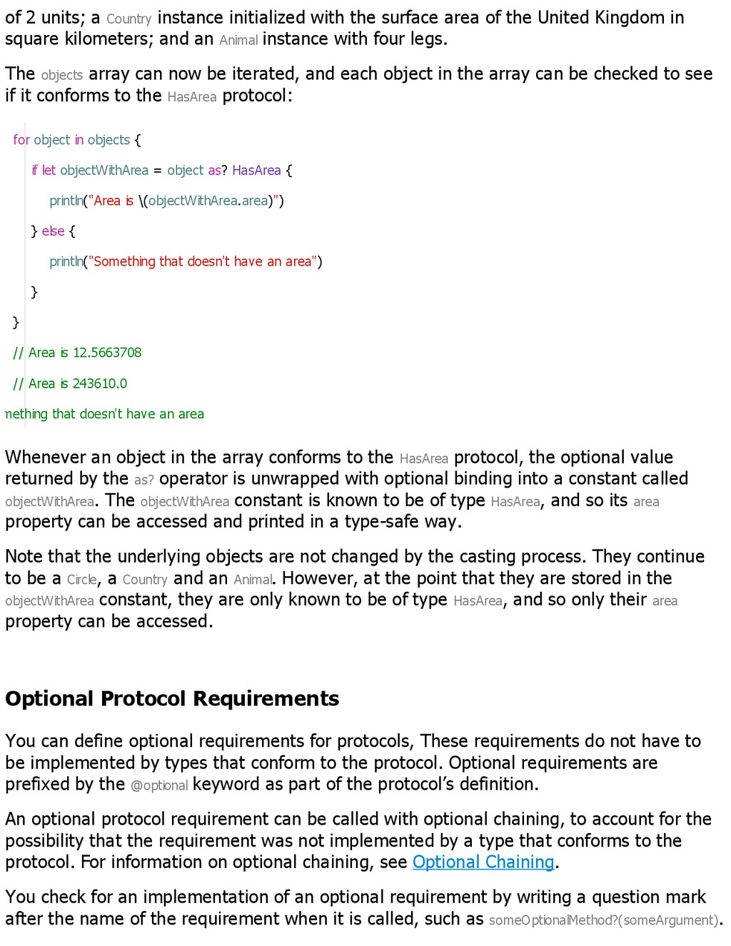 it will return a value must always do so. A function with a defined return type cannot allow control to fall out of the bottom of the function without returning a value, and attempting to do so will result in a compile-time error. Functions with Multiple Return Values You can use a tuple type as the return type for a function to return multiple values as part of one compound return value. The example below defines a function called count, which counts the number of vowels, consonants, and other characters in a string, based on the standard set of vowels and consonants used in American English: func count(string: String) -> (vowels: Int, consonants: Int, others: Int) { var vowels = 0, consonants = 0, others = 0 for character in string { switch String(character).lowercaseString { case "a", "e", "i", "o", "u": ++vowels case "b", "c", "d", "f", "g", "h", "j", "k", "l", "m", "n", "p", "q", "r", "s", "t", "v", "w", "x", "y", "z": ++consonants default: ++others } eturn (vowels, consonants, others) You can use this count function to count the characters in an arbitrary string, and to retrieve the counted totals as a tuple of three named Int values: let total = count("some arbitrary string!") println("\(total.vowels) vowels and \(total.consonants) consonants")