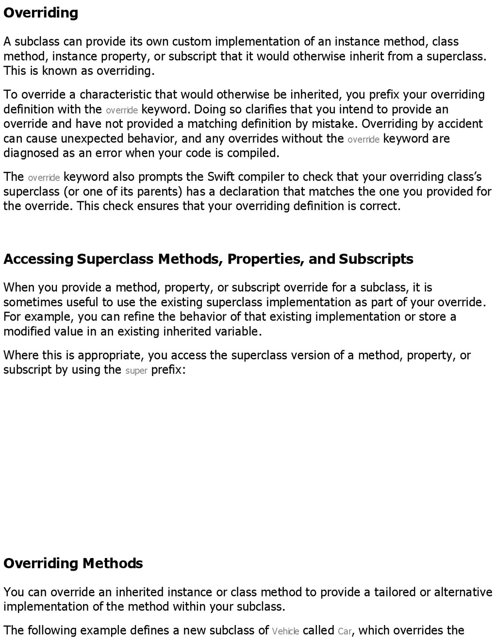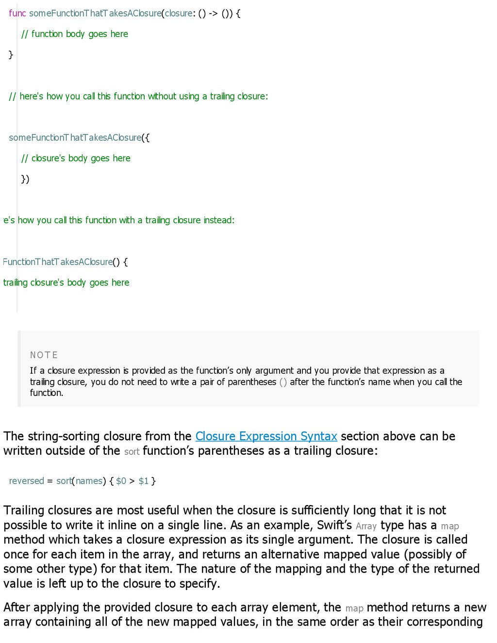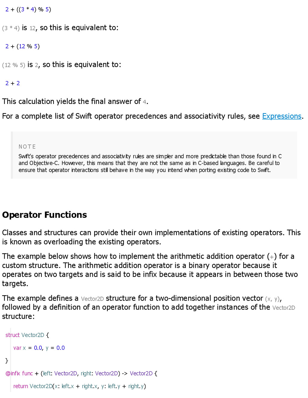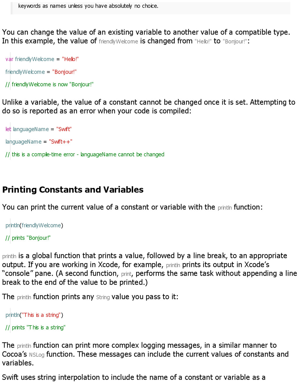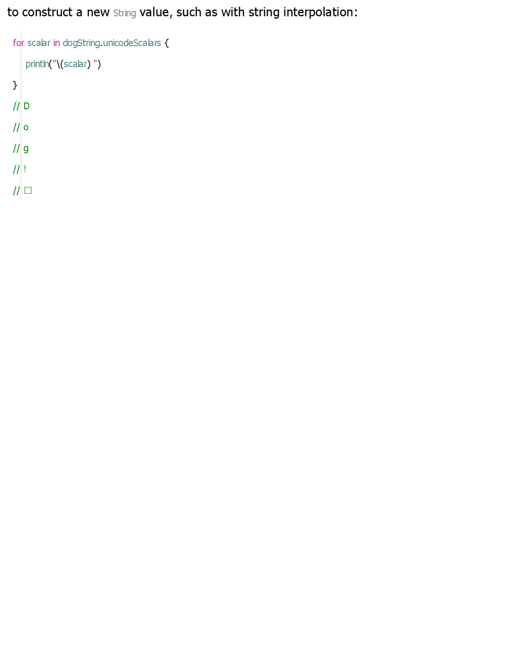 it will return a value must always do so. A function with a defined return type cannot allow control to fall out of the bottom of the function without returning a value, and attempting to do so will result in a compile-time error. Functions with Multiple Return Values You can use a tuple type as the return type for a function to return multiple values as part of one compound return value. The example below defines a function called count, which counts the number of vowels, consonants, and other characters in a string, based on the standard set of vowels and consonants used in American English: func count(string: String) -> (vowels: Int, consonants: Int, others: Int) { var vowels = 0, consonants = 0, others = 0 for character in string { switch String(character).lowercaseString { case "a", "e", "i", "o", "u": ++vowels case "b", "c", "d", "f", "g", "h", "j", "k", "l", "m", "n", "p", "q", "r", "s", "t", "v", "w", "x", "y", "z": ++consonants default: ++others } eturn (vowels, consonants, others) You can use this count function to count the characters in an arbitrary string, and to retrieve the counted totals as a tuple of three named Int values: let total = count("some arbitrary string!") println("\(total.vowels) vowels and \(total.consonants) consonants")