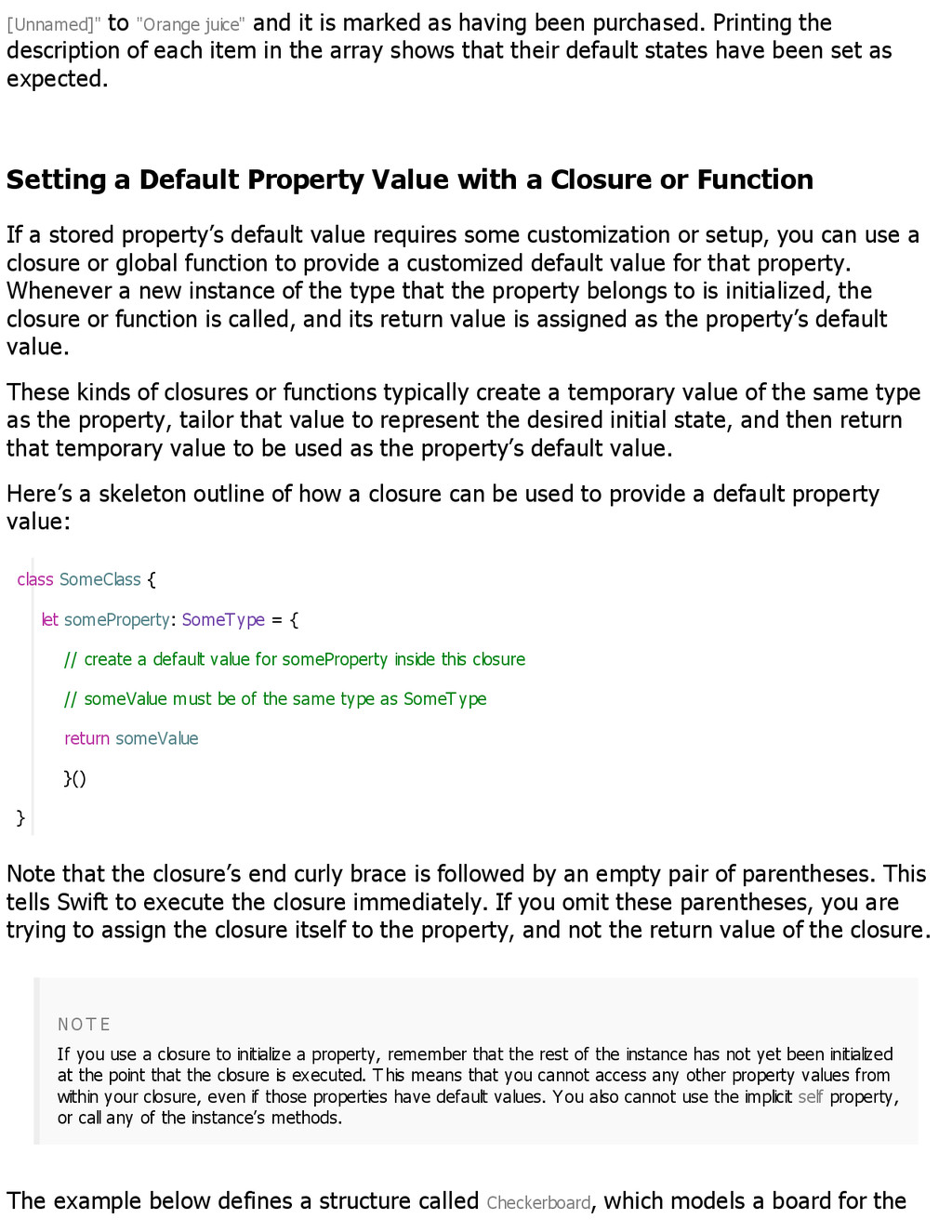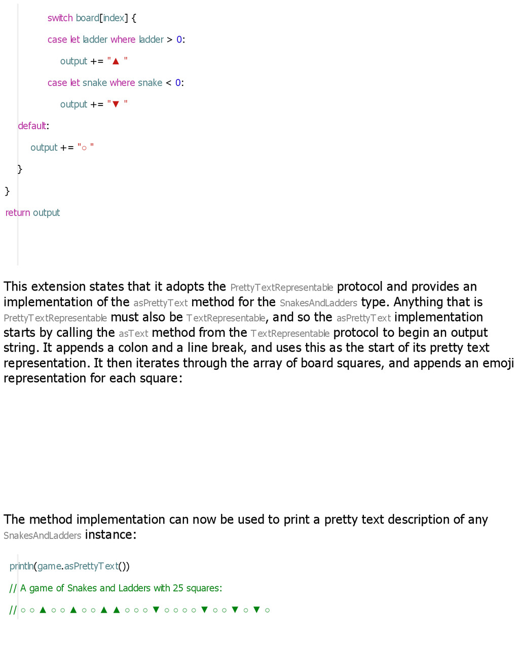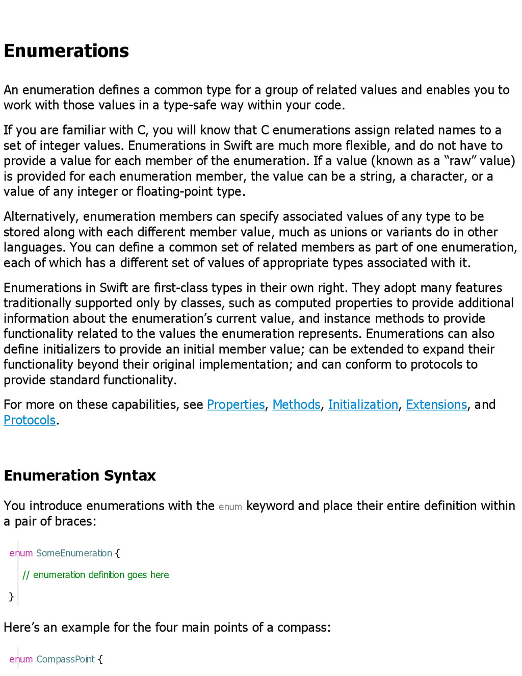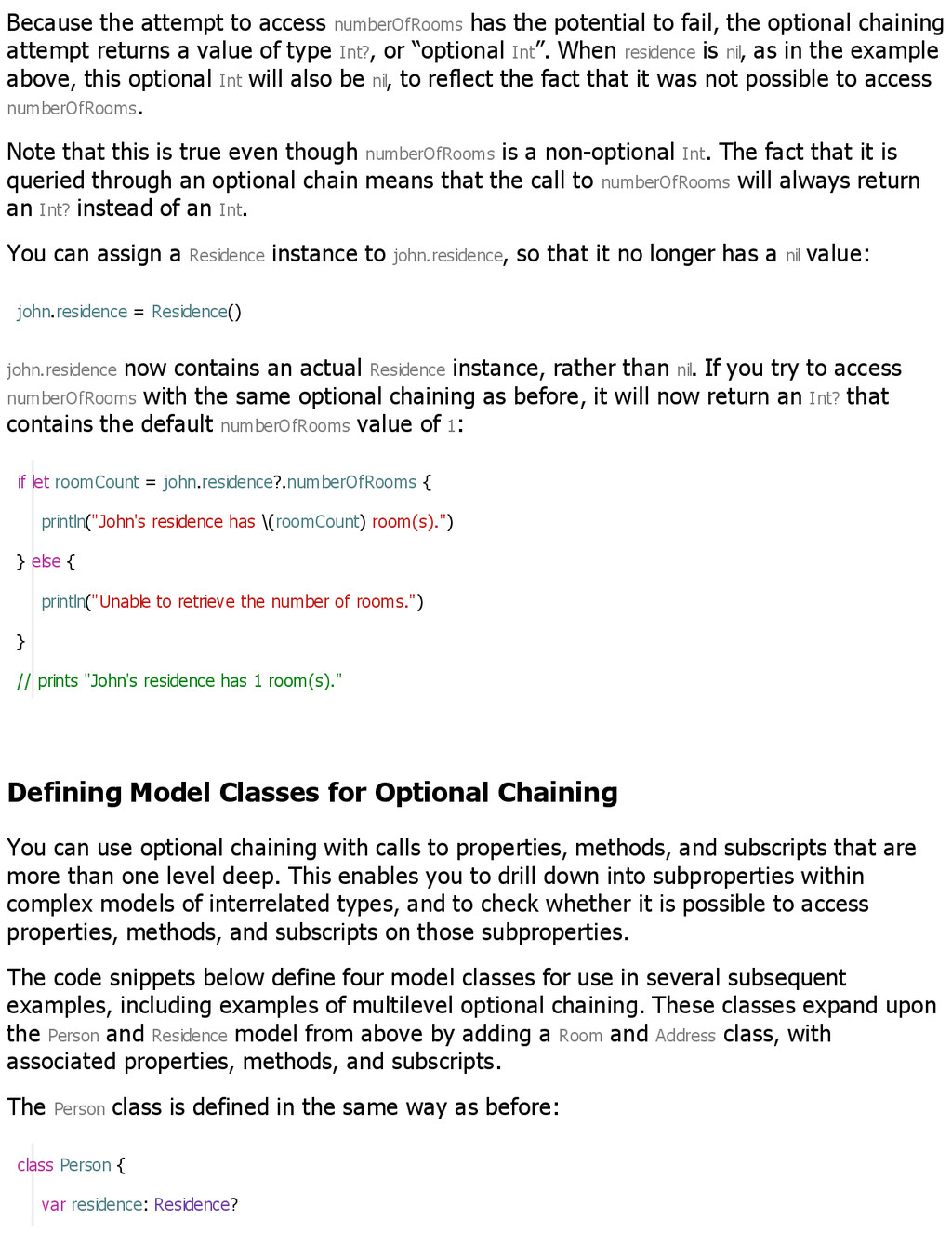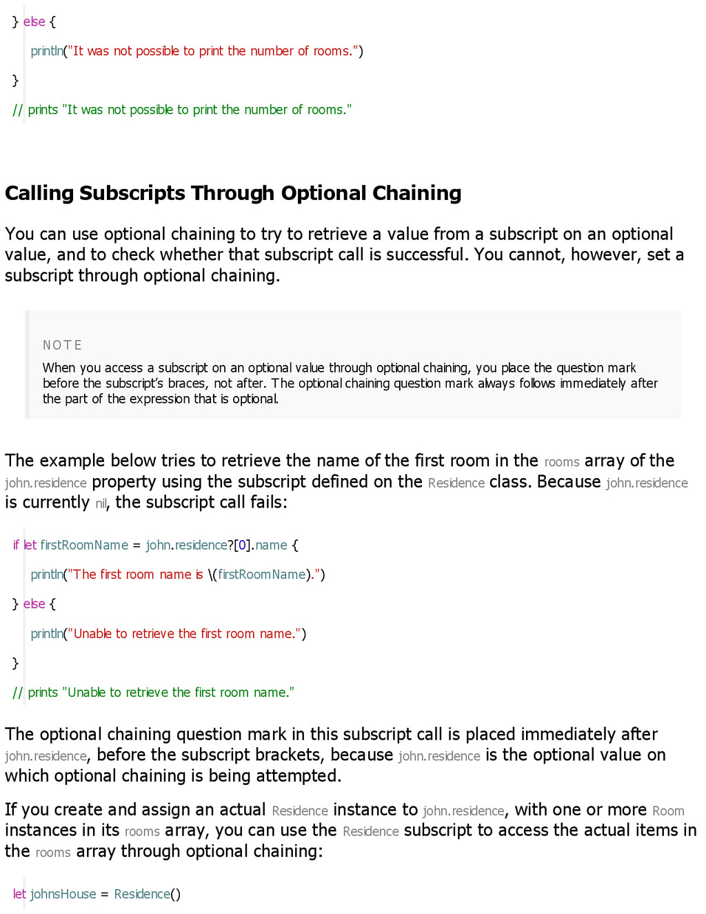it will return a value must always do so. A function with a defined return type cannot allow control to fall out of the bottom of the function without returning a value, and attempting to do so will result in a compile-time error. Functions with Multiple Return Values You can use a tuple type as the return type for a function to return multiple values as part of one compound return value. The example below defines a function called count, which counts the number of vowels, consonants, and other characters in a string, based on the standard set of vowels and consonants used in American English: func count(string: String) -> (vowels: Int, consonants: Int, others: Int) { var vowels = 0, consonants = 0, others = 0 for character in string { switch String(character).lowercaseString { case "a", "e", "i", "o", "u": ++vowels case "b", "c", "d", "f", "g", "h", "j", "k", "l", "m", "n", "p", "q", "r", "s", "t", "v", "w", "x", "y", "z": ++consonants default: ++others } eturn (vowels, consonants, others) You can use this count function to count the characters in an arbitrary string, and to retrieve the counted totals as a tuple of three named Int values: let total = count("some arbitrary string!") println("\(total.vowels) vowels and \(total.consonants) consonants")