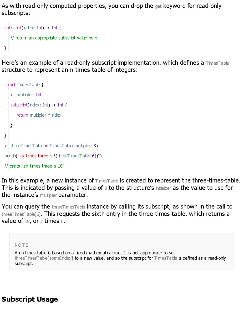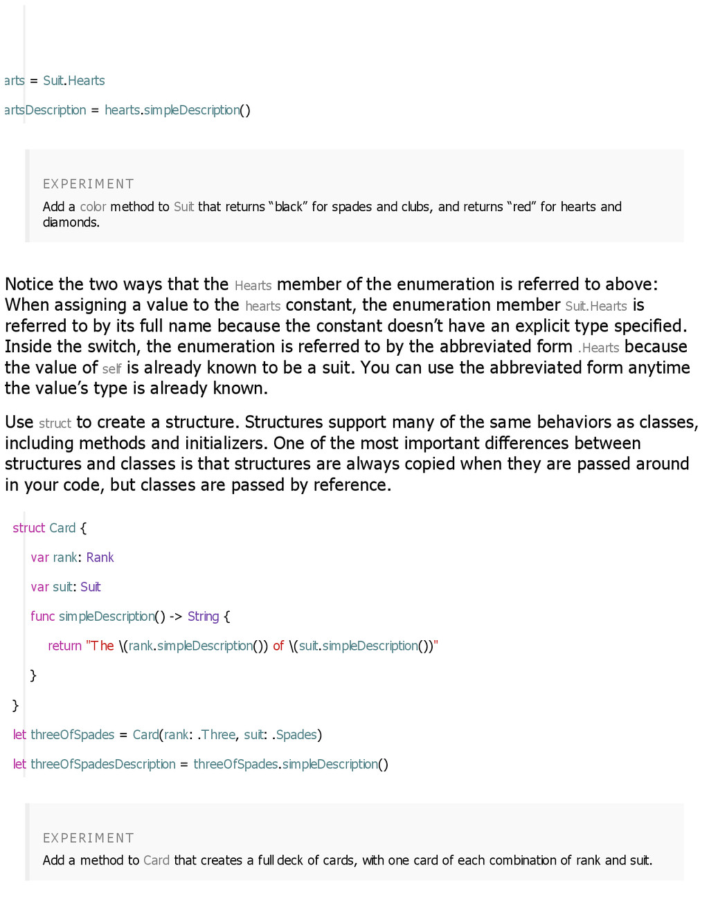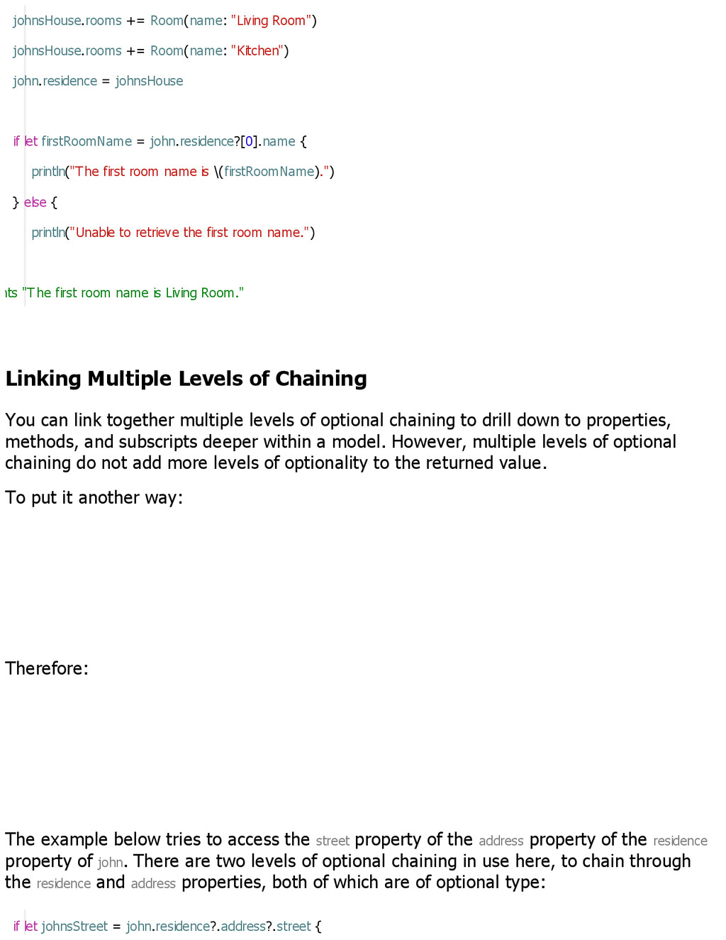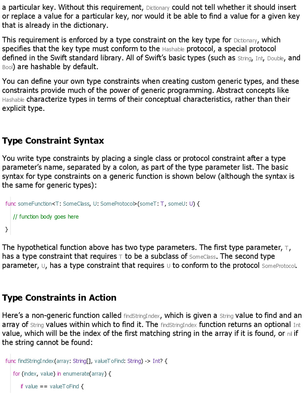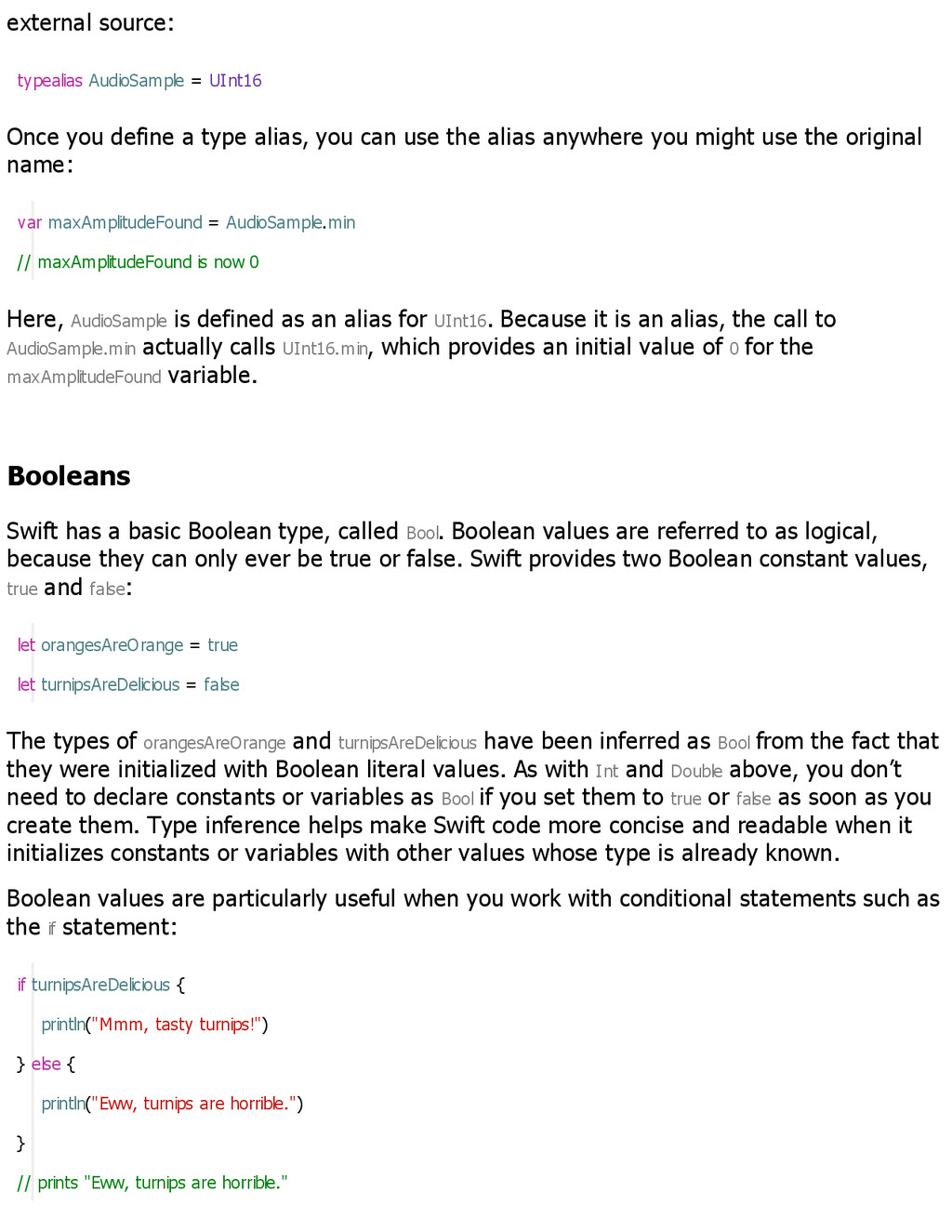 it will return a value must always do so. A function with a defined return type cannot allow control to fall out of the bottom of the function without returning a value, and attempting to do so will result in a compile-time error. Functions with Multiple Return Values You can use a tuple type as the return type for a function to return multiple values as part of one compound return value. The example below defines a function called count, which counts the number of vowels, consonants, and other characters in a string, based on the standard set of vowels and consonants used in American English: func count(string: String) -> (vowels: Int, consonants: Int, others: Int) { var vowels = 0, consonants = 0, others = 0 for character in string { switch String(character).lowercaseString { case "a", "e", "i", "o", "u": ++vowels case "b", "c", "d", "f", "g", "h", "j", "k", "l", "m", "n", "p", "q", "r", "s", "t", "v", "w", "x", "y", "z": ++consonants default: ++others } eturn (vowels, consonants, others) You can use this count function to count the characters in an arbitrary string, and to retrieve the counted totals as a tuple of three named Int values: let total = count("some arbitrary string!") println("\(total.vowels) vowels and \(total.consonants) consonants")