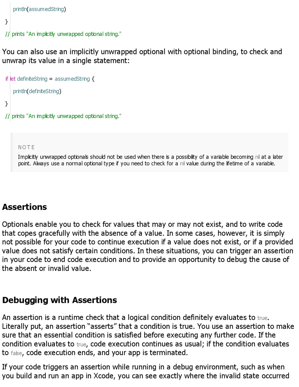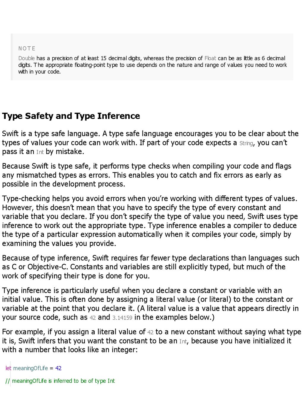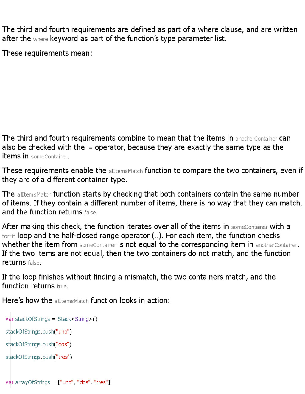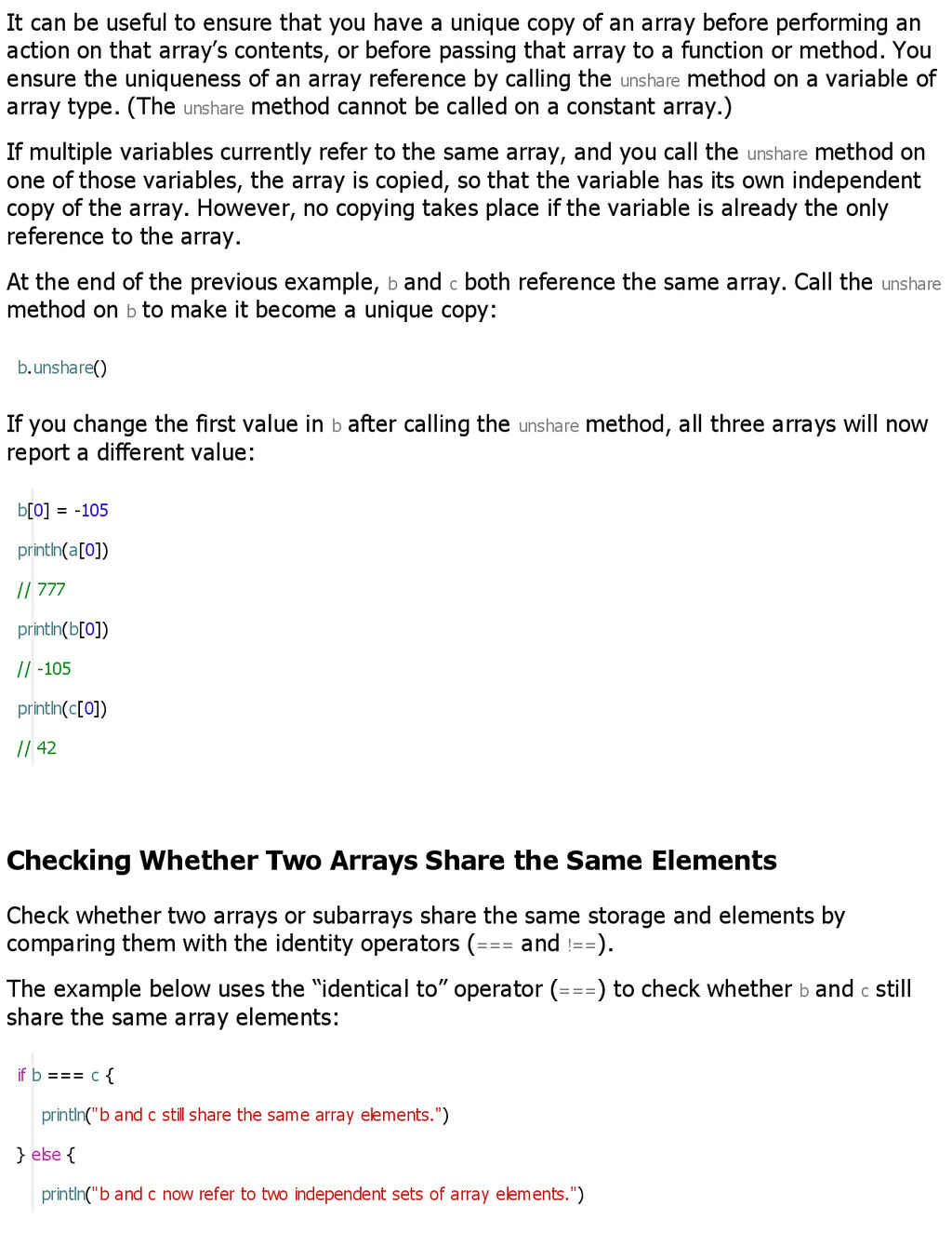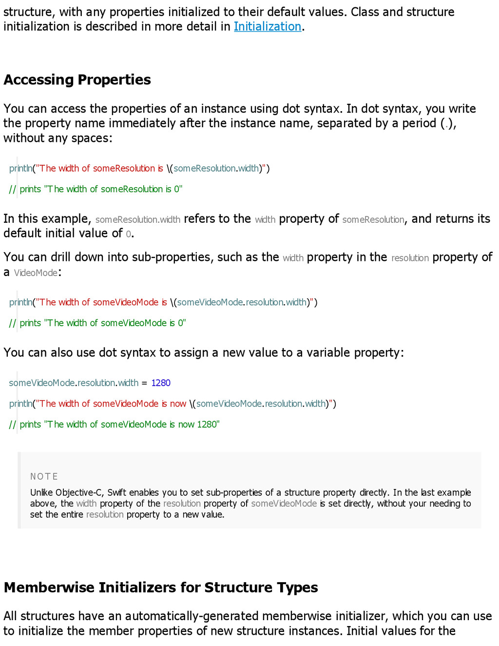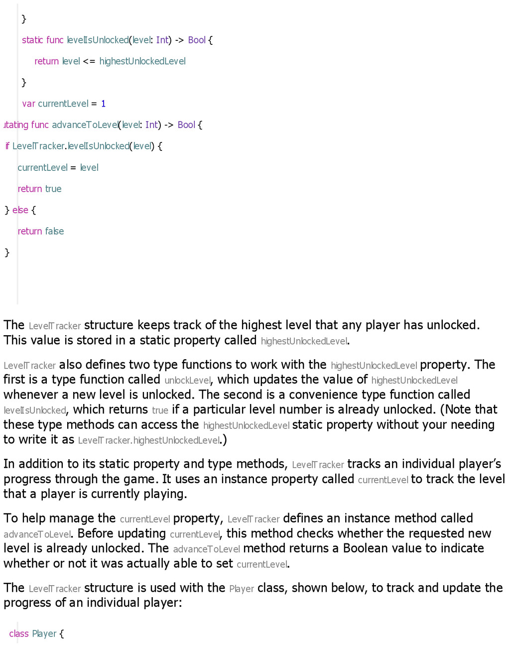 it will return a value must always do so. A function with a defined return type cannot allow control to fall out of the bottom of the function without returning a value, and attempting to do so will result in a compile-time error. Functions with Multiple Return Values You can use a tuple type as the return type for a function to return multiple values as part of one compound return value. The example below defines a function called count, which counts the number of vowels, consonants, and other characters in a string, based on the standard set of vowels and consonants used in American English: func count(string: String) -> (vowels: Int, consonants: Int, others: Int) { var vowels = 0, consonants = 0, others = 0 for character in string { switch String(character).lowercaseString { case "a", "e", "i", "o", "u": ++vowels case "b", "c", "d", "f", "g", "h", "j", "k", "l", "m", "n", "p", "q", "r", "s", "t", "v", "w", "x", "y", "z": ++consonants default: ++others } eturn (vowels, consonants, others) You can use this count function to count the characters in an arbitrary string, and to retrieve the counted totals as a tuple of three named Int values: let total = count("some arbitrary string!") println("\(total.vowels) vowels and \(total.consonants) consonants")