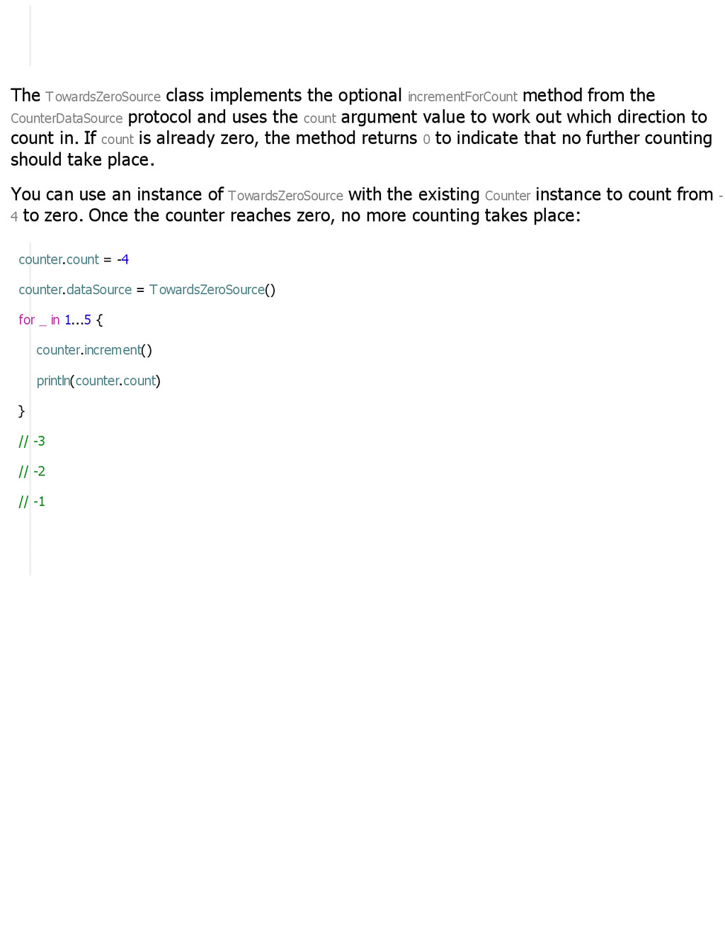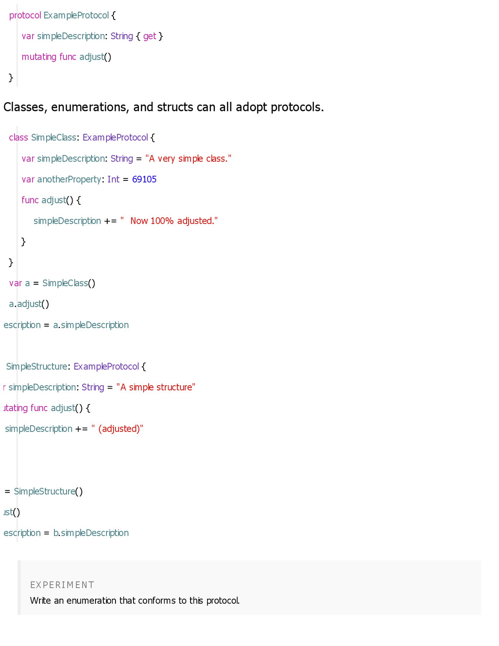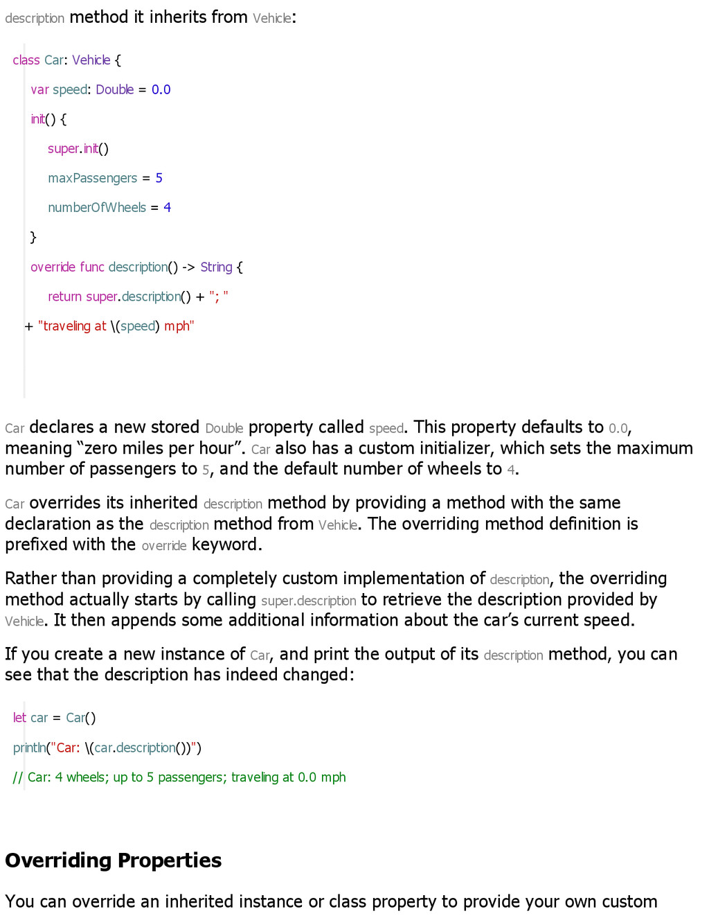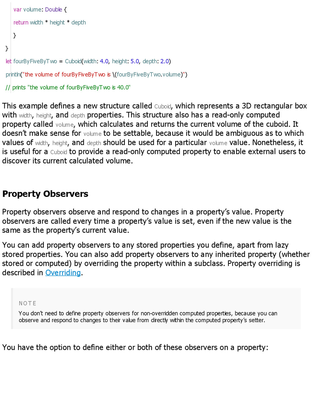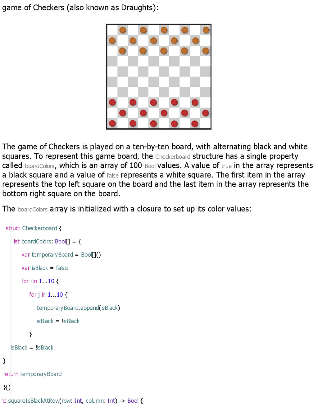 it will return a value must always do so. A function with a defined return type cannot allow control to fall out of the bottom of the function without returning a value, and attempting to do so will result in a compile-time error. Functions with Multiple Return Values You can use a tuple type as the return type for a function to return multiple values as part of one compound return value. The example below defines a function called count, which counts the number of vowels, consonants, and other characters in a string, based on the standard set of vowels and consonants used in American English: func count(string: String) -> (vowels: Int, consonants: Int, others: Int) { var vowels = 0, consonants = 0, others = 0 for character in string { switch String(character).lowercaseString { case "a", "e", "i", "o", "u": ++vowels case "b", "c", "d", "f", "g", "h", "j", "k", "l", "m", "n", "p", "q", "r", "s", "t", "v", "w", "x", "y", "z": ++consonants default: ++others } eturn (vowels, consonants, others) You can use this count function to count the characters in an arbitrary string, and to retrieve the counted totals as a tuple of three named Int values: let total = count("some arbitrary string!") println("\(total.vowels) vowels and \(total.consonants) consonants")