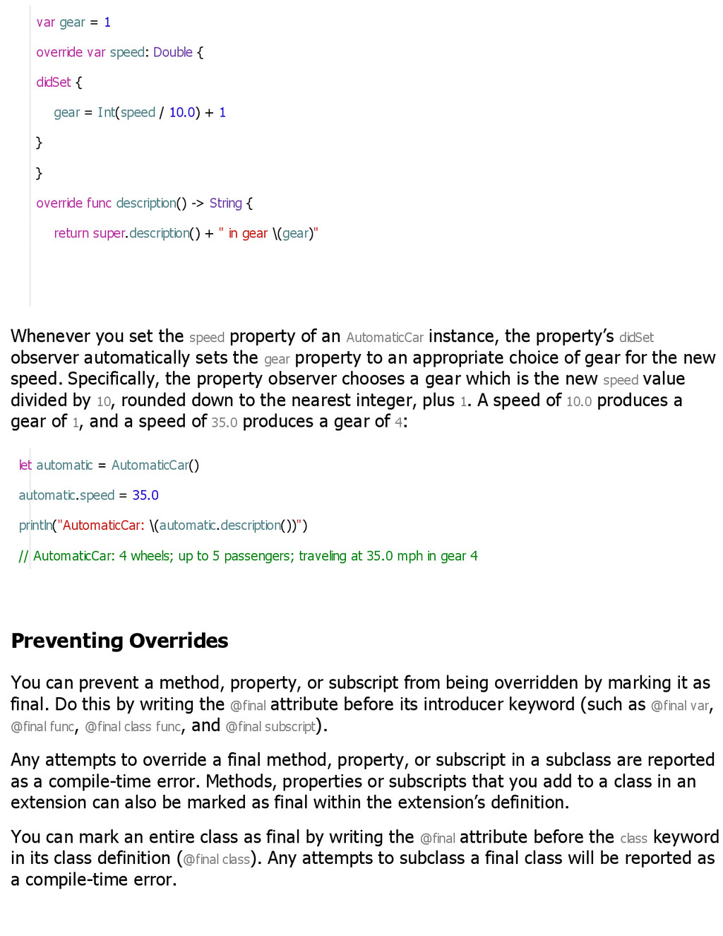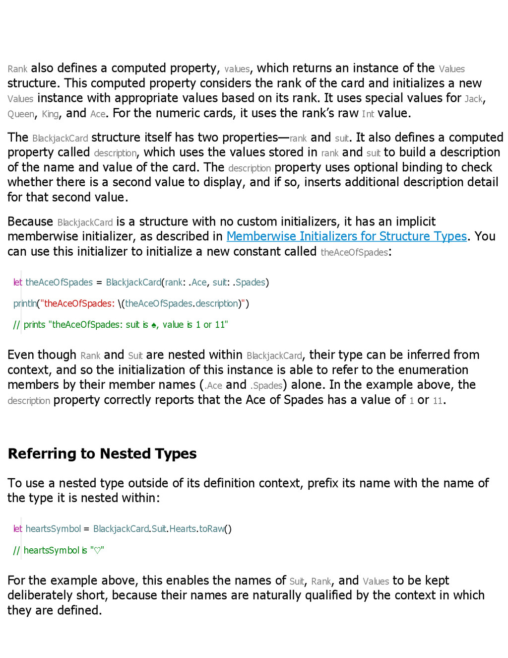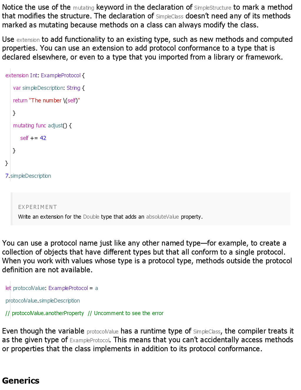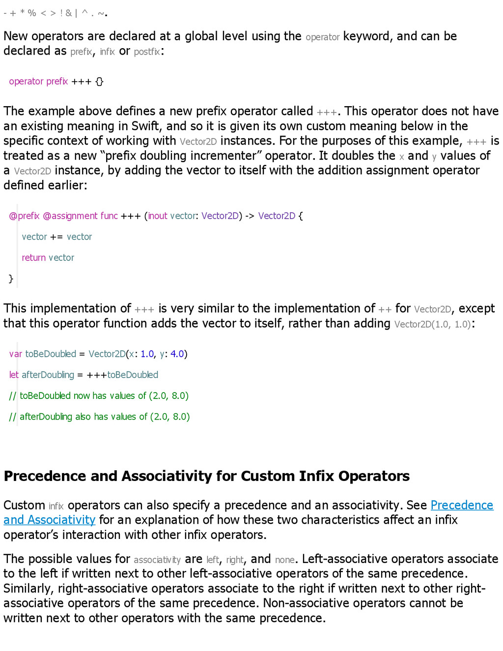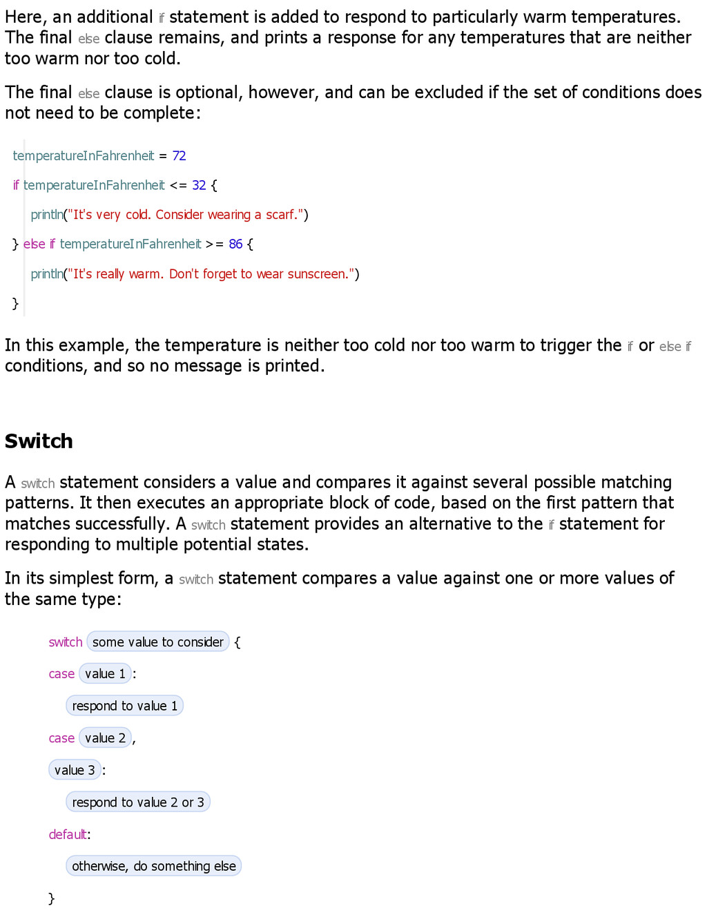 it will return a value must always do so. A function with a defined return type cannot allow control to fall out of the bottom of the function without returning a value, and attempting to do so will result in a compile-time error. Functions with Multiple Return Values You can use a tuple type as the return type for a function to return multiple values as part of one compound return value. The example below defines a function called count, which counts the number of vowels, consonants, and other characters in a string, based on the standard set of vowels and consonants used in American English: func count(string: String) -> (vowels: Int, consonants: Int, others: Int) { var vowels = 0, consonants = 0, others = 0 for character in string { switch String(character).lowercaseString { case "a", "e", "i", "o", "u": ++vowels case "b", "c", "d", "f", "g", "h", "j", "k", "l", "m", "n", "p", "q", "r", "s", "t", "v", "w", "x", "y", "z": ++consonants default: ++others } eturn (vowels, consonants, others) You can use this count function to count the characters in an arbitrary string, and to retrieve the counted totals as a tuple of three named Int values: let total = count("some arbitrary string!") println("\(total.vowels) vowels and \(total.consonants) consonants")