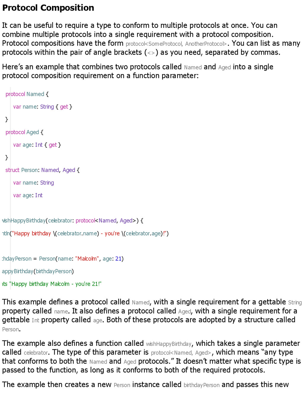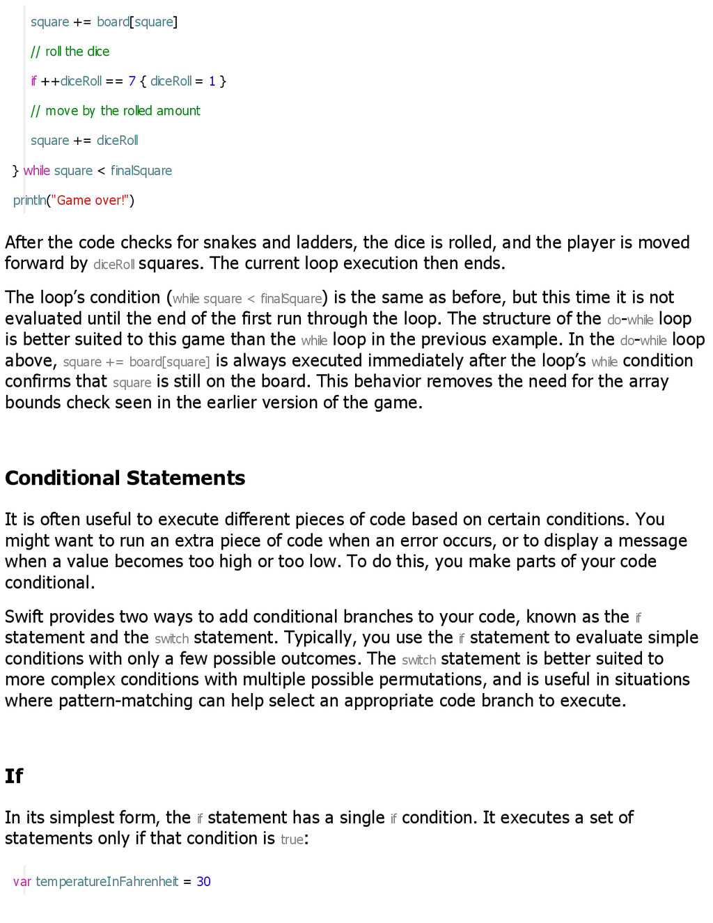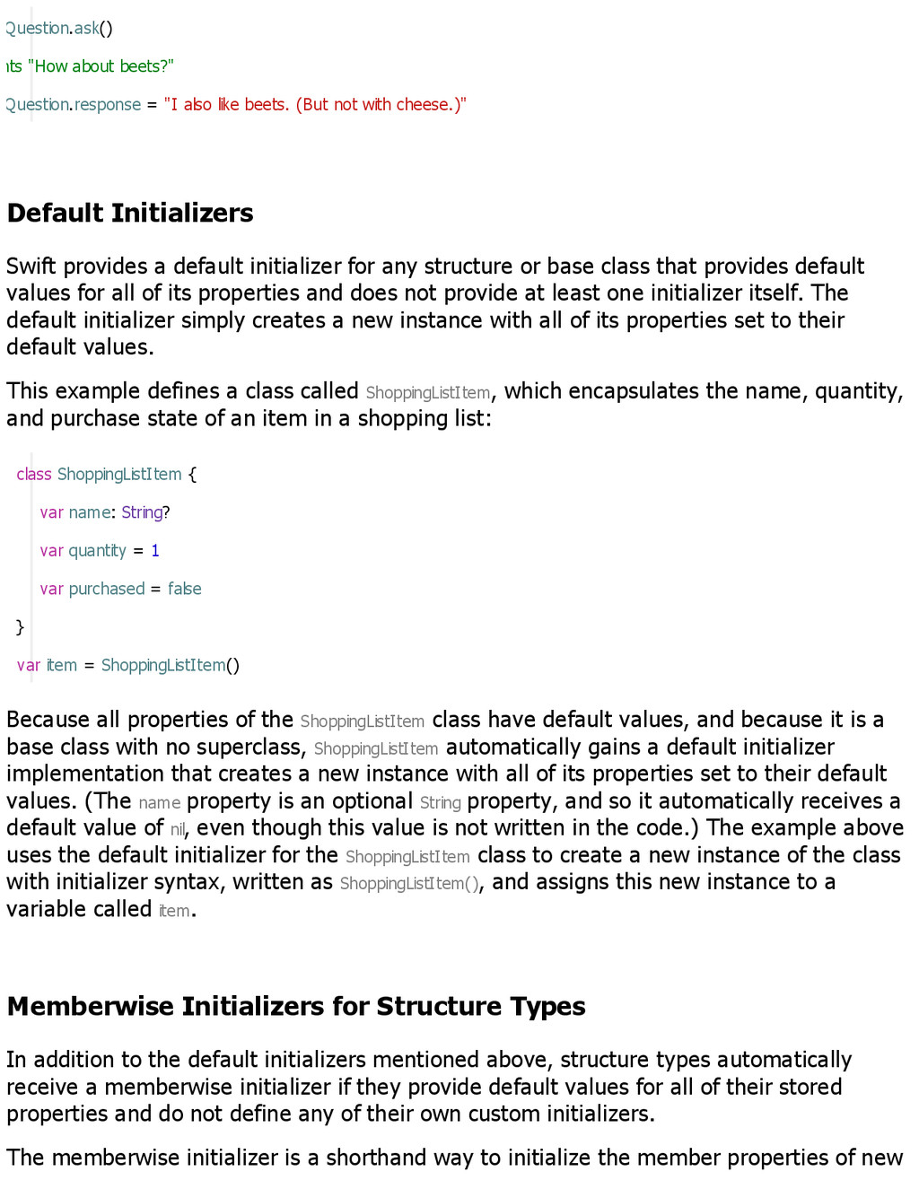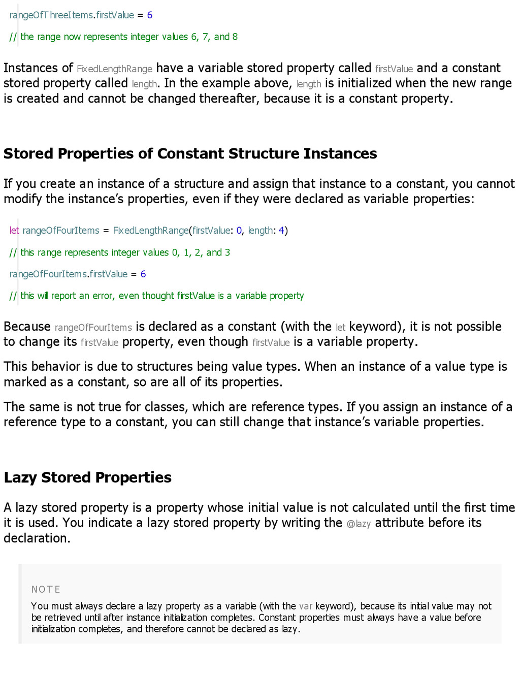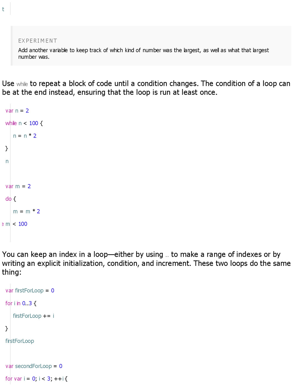 it will return a value must always do so. A function with a defined return type cannot allow control to fall out of the bottom of the function without returning a value, and attempting to do so will result in a compile-time error. Functions with Multiple Return Values You can use a tuple type as the return type for a function to return multiple values as part of one compound return value. The example below defines a function called count, which counts the number of vowels, consonants, and other characters in a string, based on the standard set of vowels and consonants used in American English: func count(string: String) -> (vowels: Int, consonants: Int, others: Int) { var vowels = 0, consonants = 0, others = 0 for character in string { switch String(character).lowercaseString { case "a", "e", "i", "o", "u": ++vowels case "b", "c", "d", "f", "g", "h", "j", "k", "l", "m", "n", "p", "q", "r", "s", "t", "v", "w", "x", "y", "z": ++consonants default: ++others } eturn (vowels, consonants, others) You can use this count function to count the characters in an arbitrary string, and to retrieve the counted totals as a tuple of three named Int values: let total = count("some arbitrary string!") println("\(total.vowels) vowels and \(total.consonants) consonants")