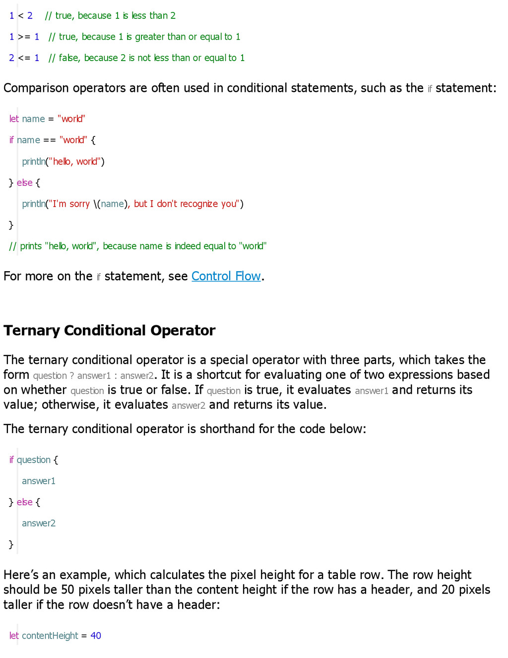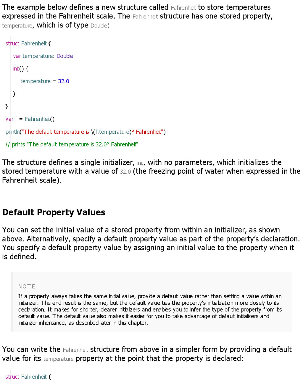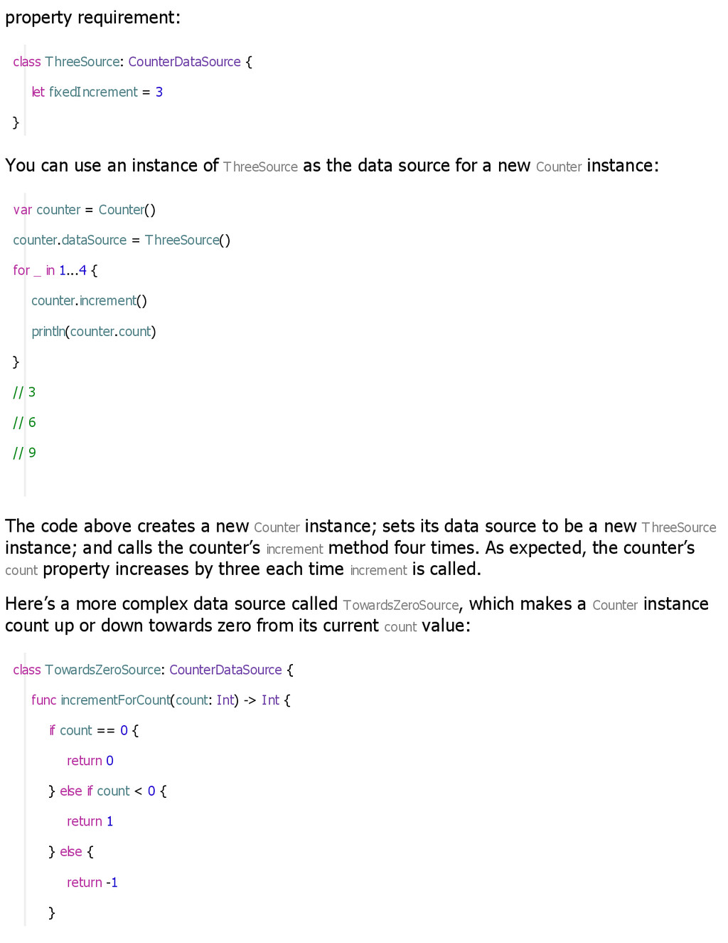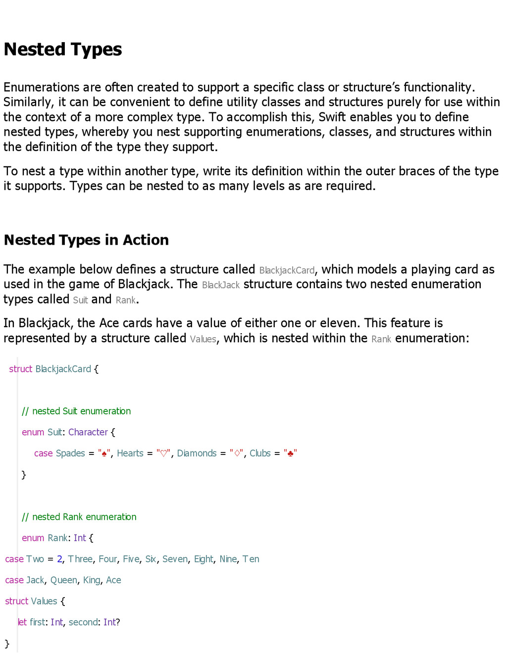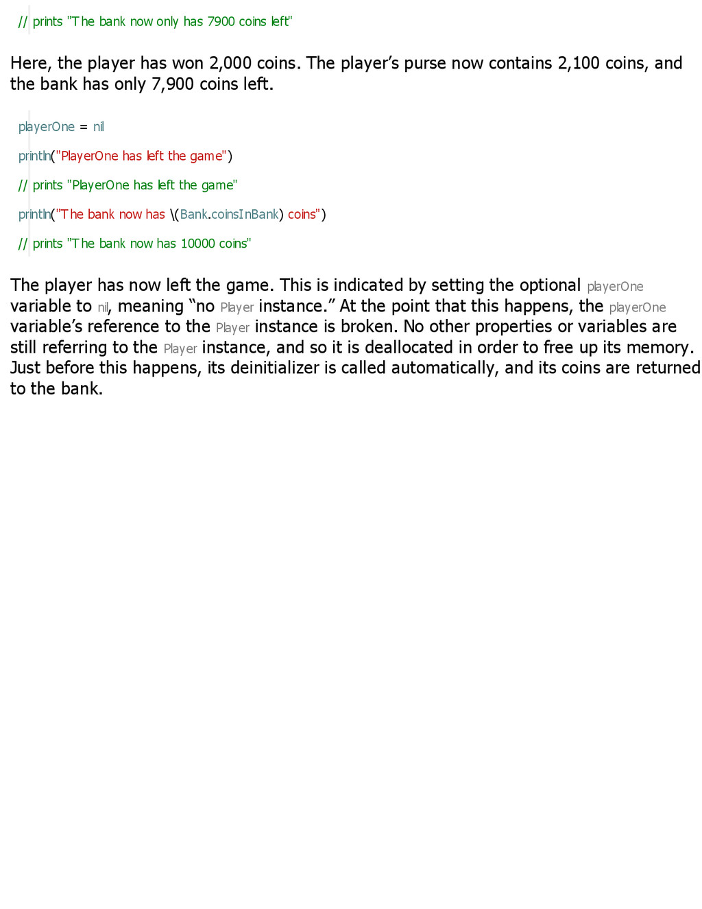 it will return a value must always do so. A function with a defined return type cannot allow control to fall out of the bottom of the function without returning a value, and attempting to do so will result in a compile-time error. Functions with Multiple Return Values You can use a tuple type as the return type for a function to return multiple values as part of one compound return value. The example below defines a function called count, which counts the number of vowels, consonants, and other characters in a string, based on the standard set of vowels and consonants used in American English: func count(string: String) -> (vowels: Int, consonants: Int, others: Int) { var vowels = 0, consonants = 0, others = 0 for character in string { switch String(character).lowercaseString { case "a", "e", "i", "o", "u": ++vowels case "b", "c", "d", "f", "g", "h", "j", "k", "l", "m", "n", "p", "q", "r", "s", "t", "v", "w", "x", "y", "z": ++consonants default: ++others } eturn (vowels, consonants, others) You can use this count function to count the characters in an arbitrary string, and to retrieve the counted totals as a tuple of three named Int values: let total = count("some arbitrary string!") println("\(total.vowels) vowels and \(total.consonants) consonants")