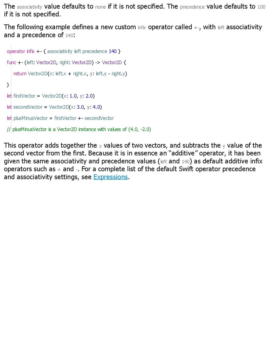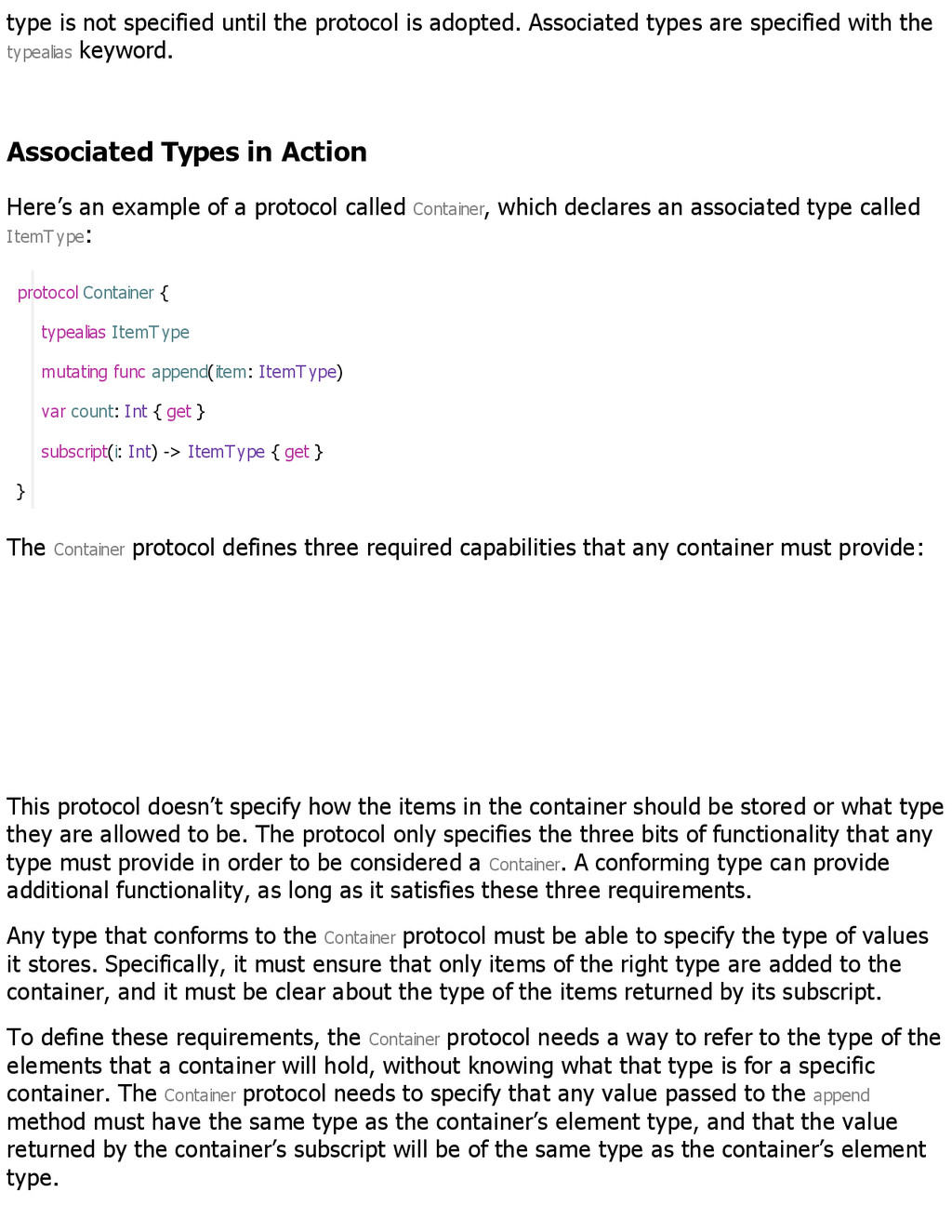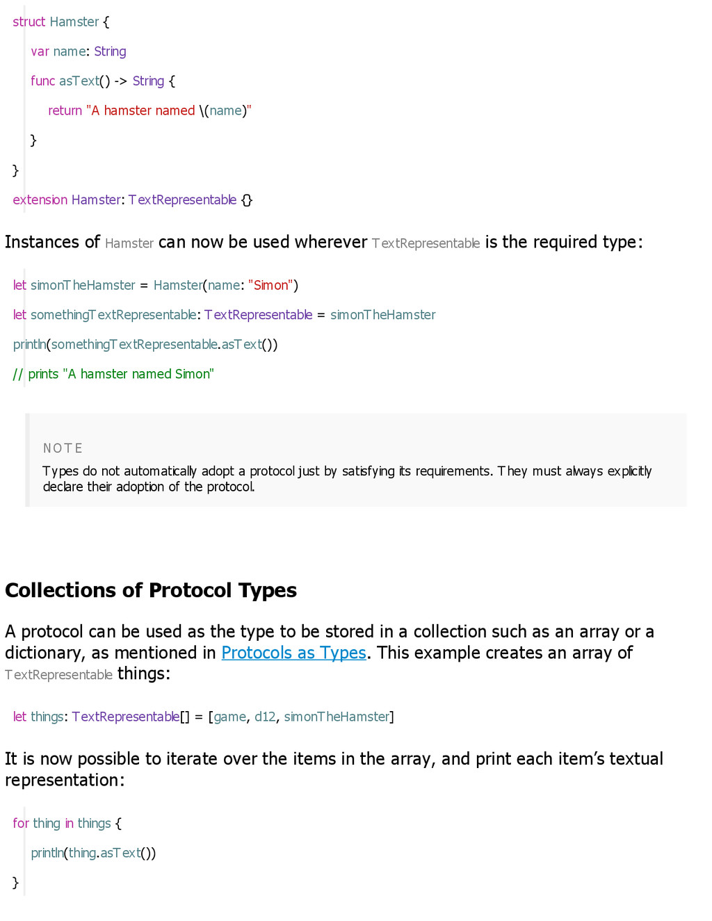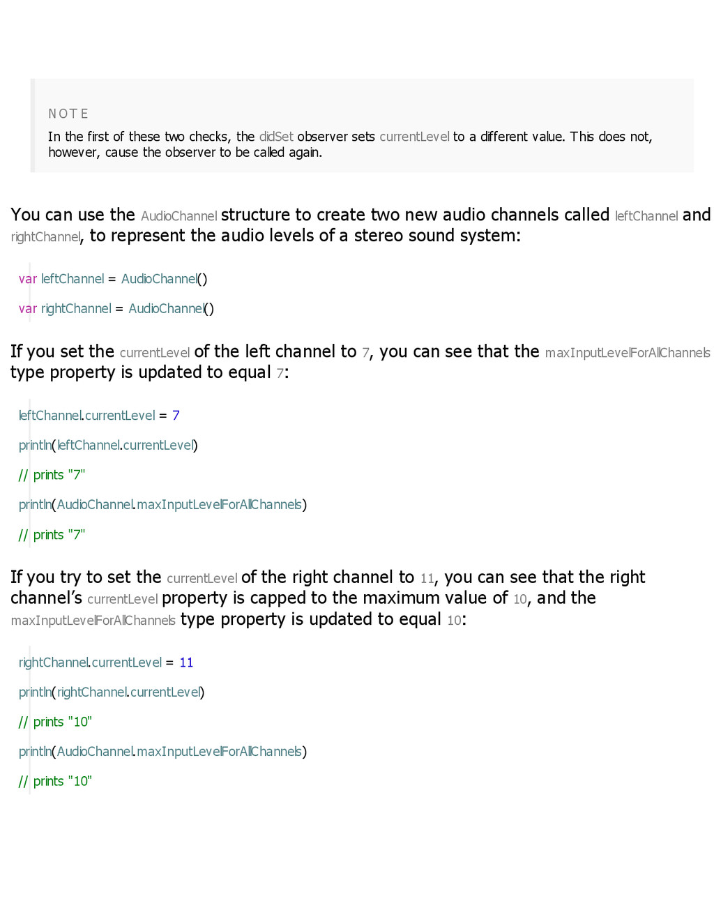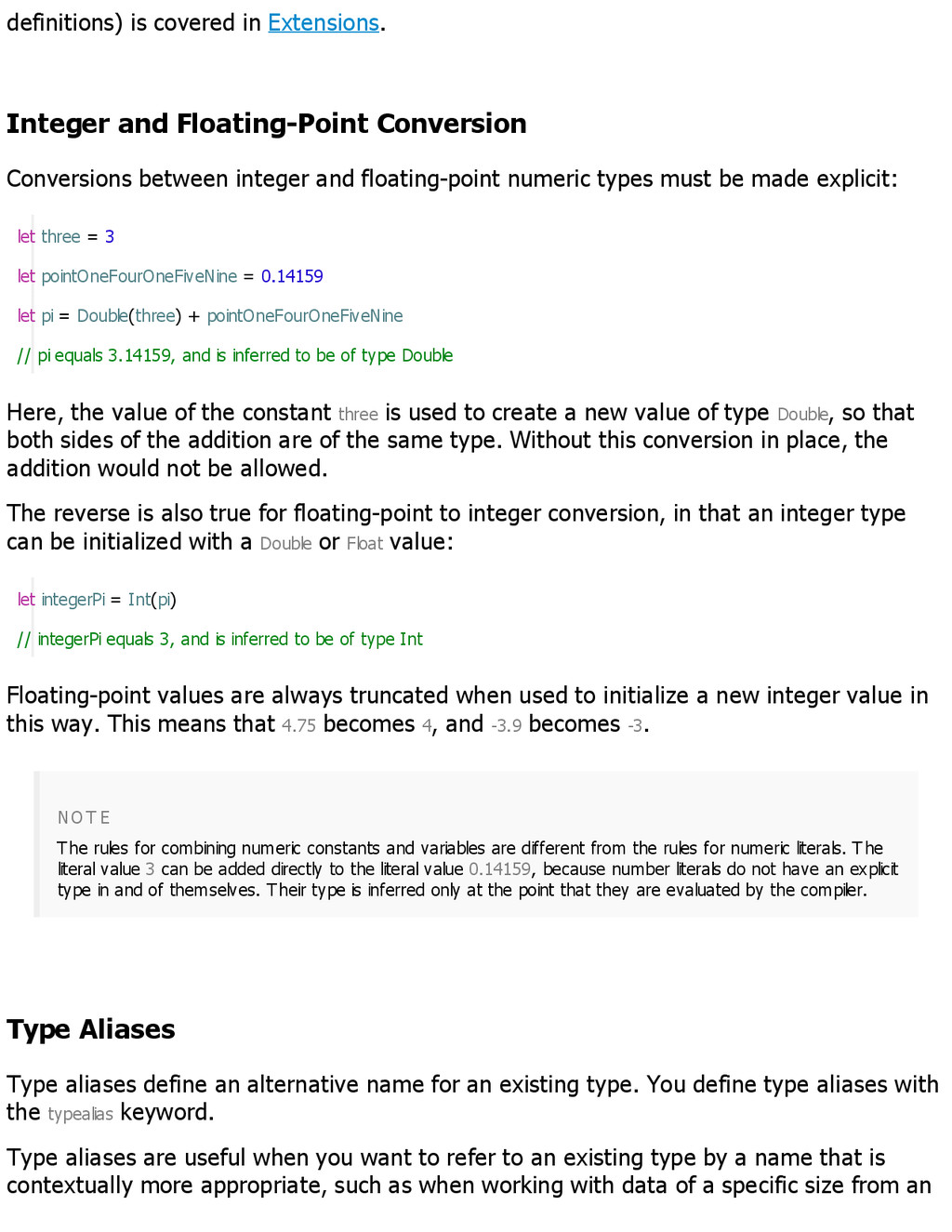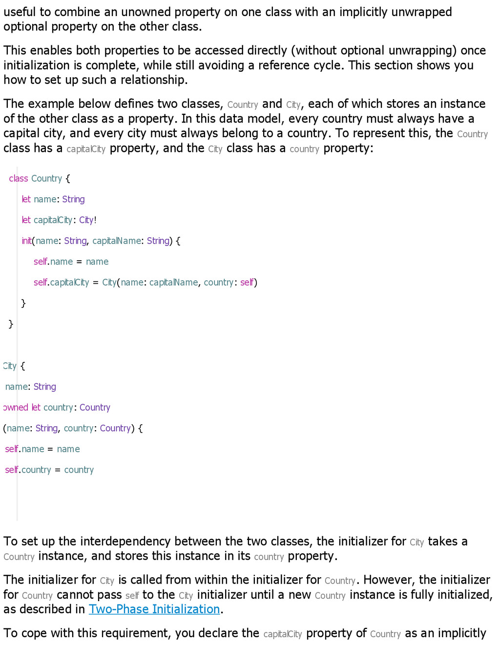 it will return a value must always do so. A function with a defined return type cannot allow control to fall out of the bottom of the function without returning a value, and attempting to do so will result in a compile-time error. Functions with Multiple Return Values You can use a tuple type as the return type for a function to return multiple values as part of one compound return value. The example below defines a function called count, which counts the number of vowels, consonants, and other characters in a string, based on the standard set of vowels and consonants used in American English: func count(string: String) -> (vowels: Int, consonants: Int, others: Int) { var vowels = 0, consonants = 0, others = 0 for character in string { switch String(character).lowercaseString { case "a", "e", "i", "o", "u": ++vowels case "b", "c", "d", "f", "g", "h", "j", "k", "l", "m", "n", "p", "q", "r", "s", "t", "v", "w", "x", "y", "z": ++consonants default: ++others } eturn (vowels, consonants, others) You can use this count function to count the characters in an arbitrary string, and to retrieve the counted totals as a tuple of three named Int values: let total = count("some arbitrary string!") println("\(total.vowels) vowels and \(total.consonants) consonants")
