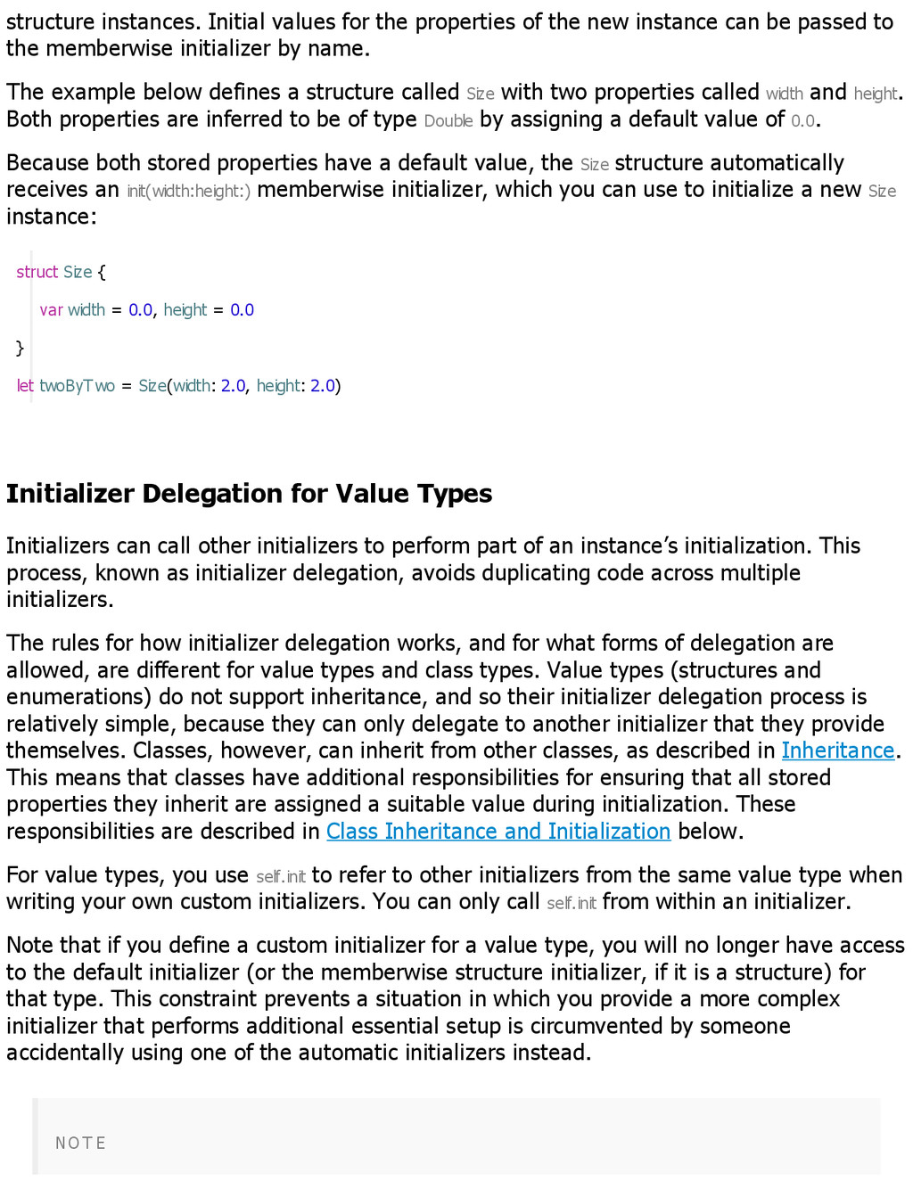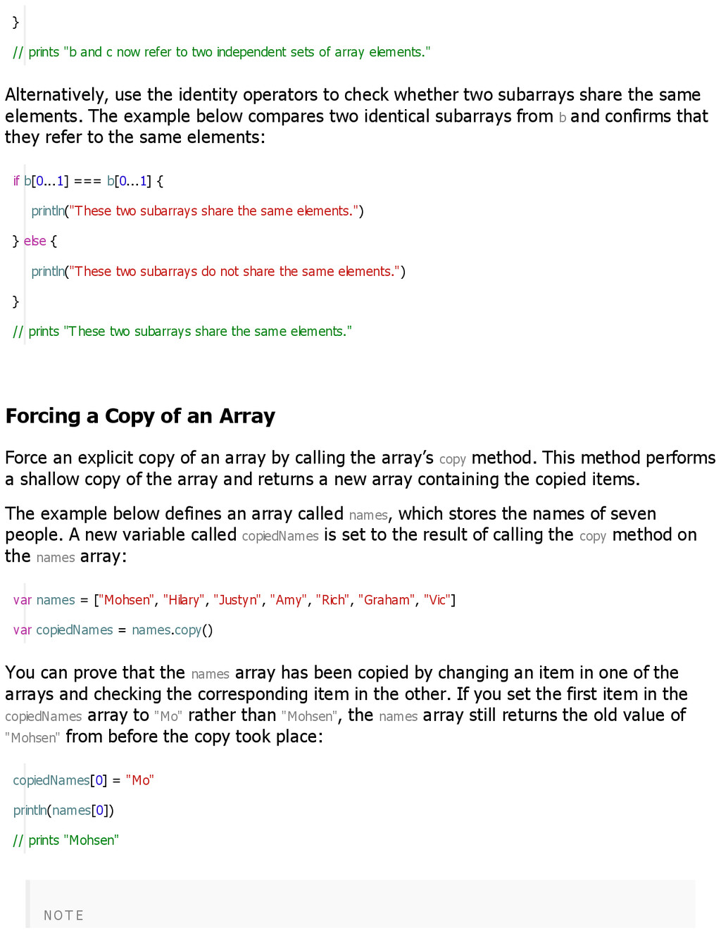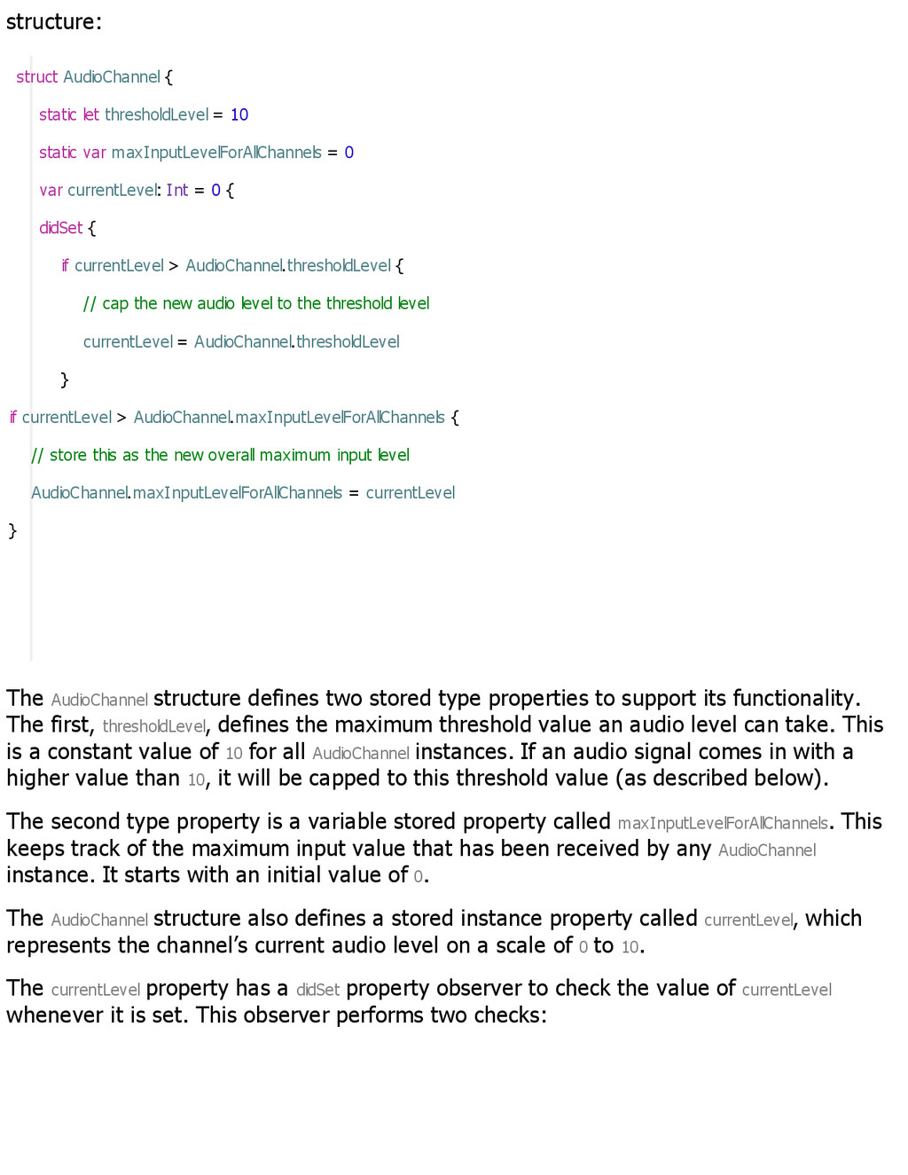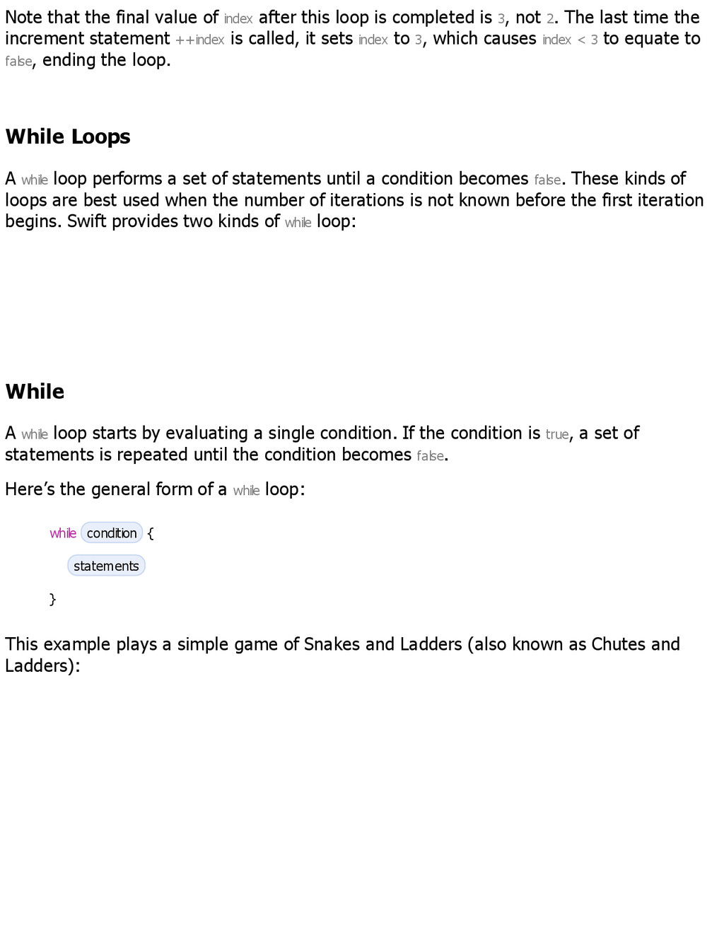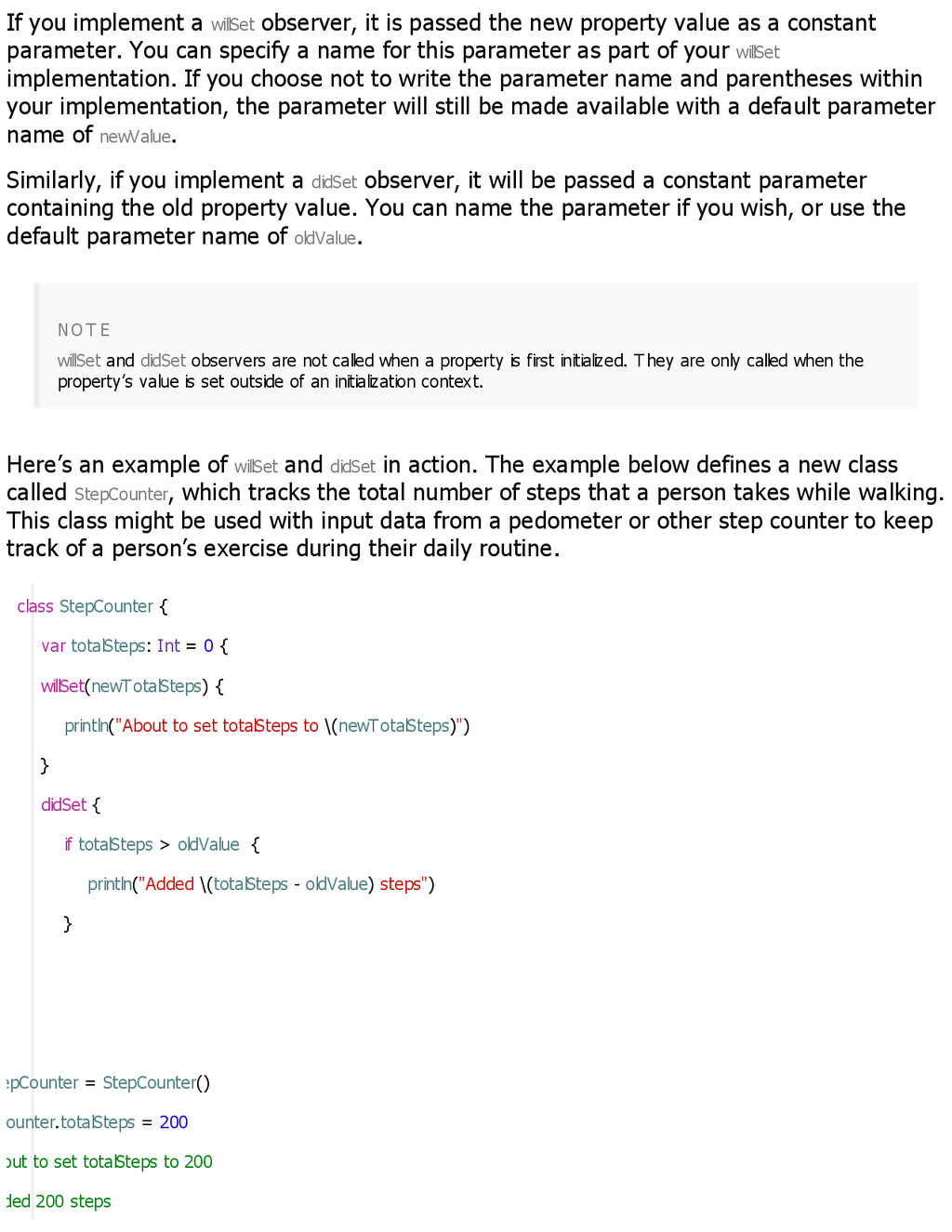 it will return a value must always do so. A function with a defined return type cannot allow control to fall out of the bottom of the function without returning a value, and attempting to do so will result in a compile-time error. Functions with Multiple Return Values You can use a tuple type as the return type for a function to return multiple values as part of one compound return value. The example below defines a function called count, which counts the number of vowels, consonants, and other characters in a string, based on the standard set of vowels and consonants used in American English: func count(string: String) -> (vowels: Int, consonants: Int, others: Int) { var vowels = 0, consonants = 0, others = 0 for character in string { switch String(character).lowercaseString { case "a", "e", "i", "o", "u": ++vowels case "b", "c", "d", "f", "g", "h", "j", "k", "l", "m", "n", "p", "q", "r", "s", "t", "v", "w", "x", "y", "z": ++consonants default: ++others } eturn (vowels, consonants, others) You can use this count function to count the characters in an arbitrary string, and to retrieve the counted totals as a tuple of three named Int values: let total = count("some arbitrary string!") println("\(total.vowels) vowels and \(total.consonants) consonants")